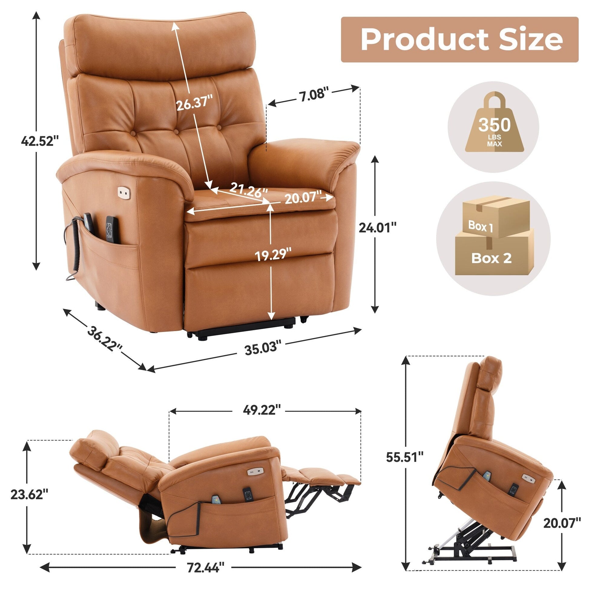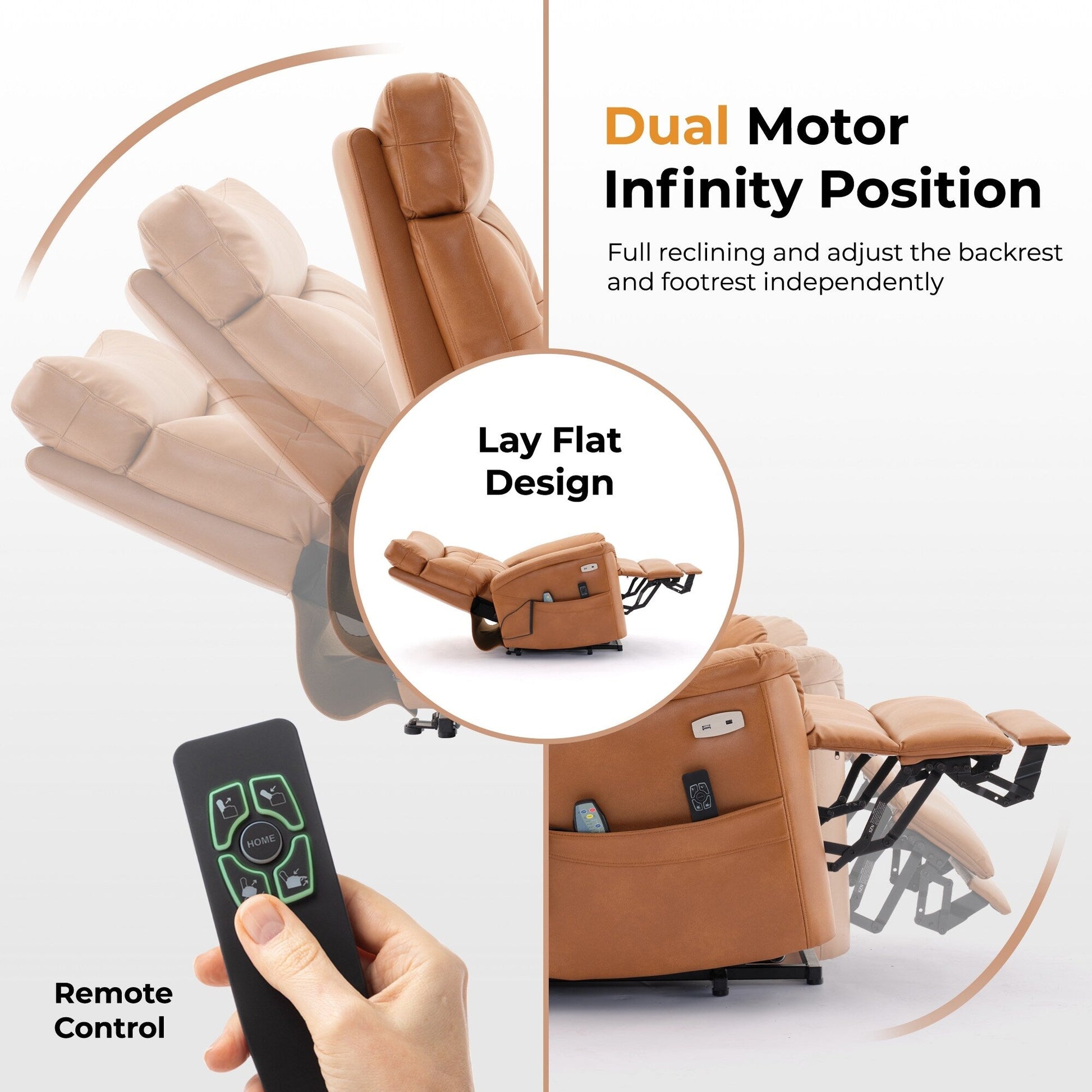 Poltrona reclinabile elettrica in pelle color caramello con...