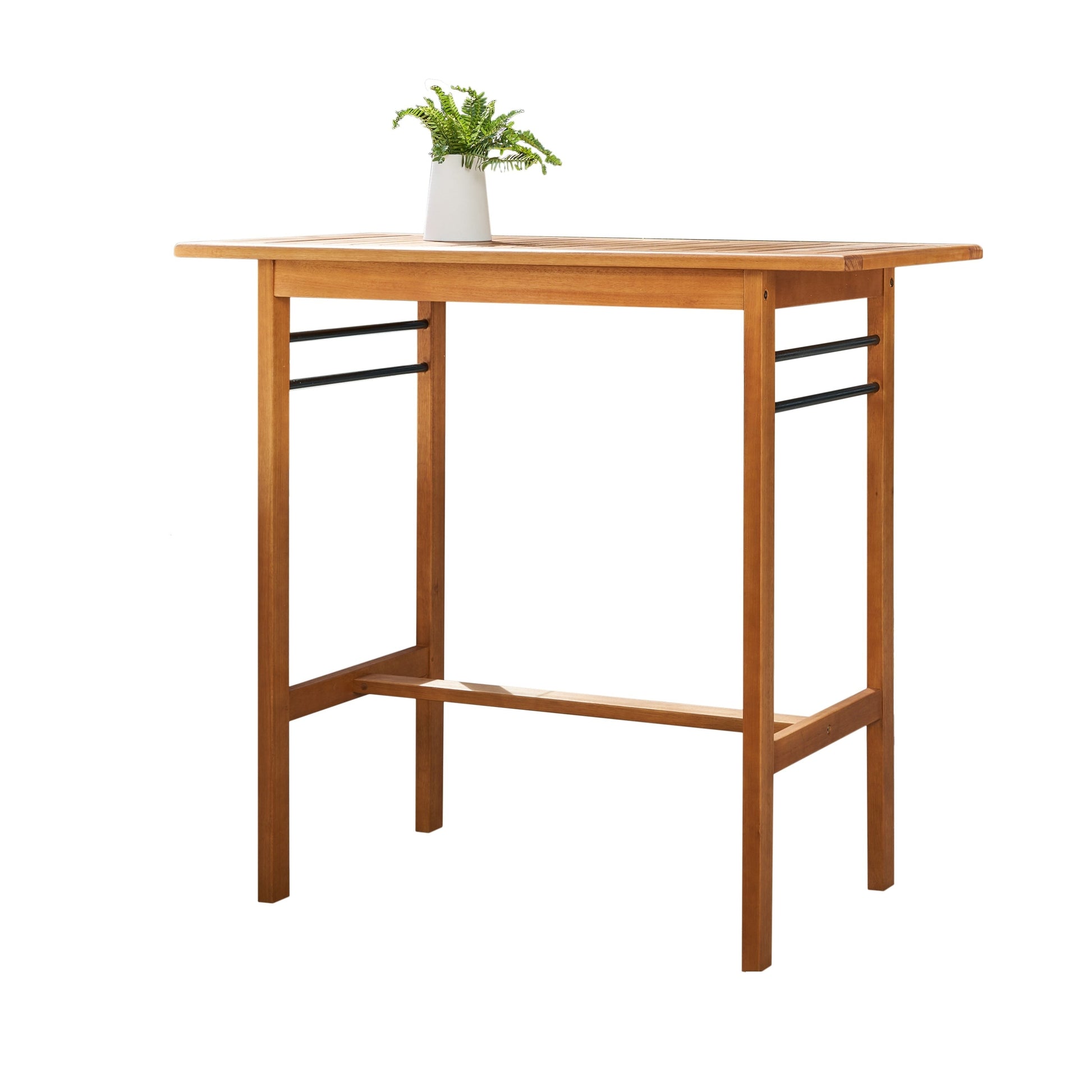 Realizzato in legno massello di eucalipto, questo set da pranzo alto da bar in legno naturale è la soluzione perfetta e resistente alle intemperie per il tuo spazio esterno. La struttura semplice e robusta si adatta a tutti gli stili di terrazza, dal tradizionale al contemporaneo.