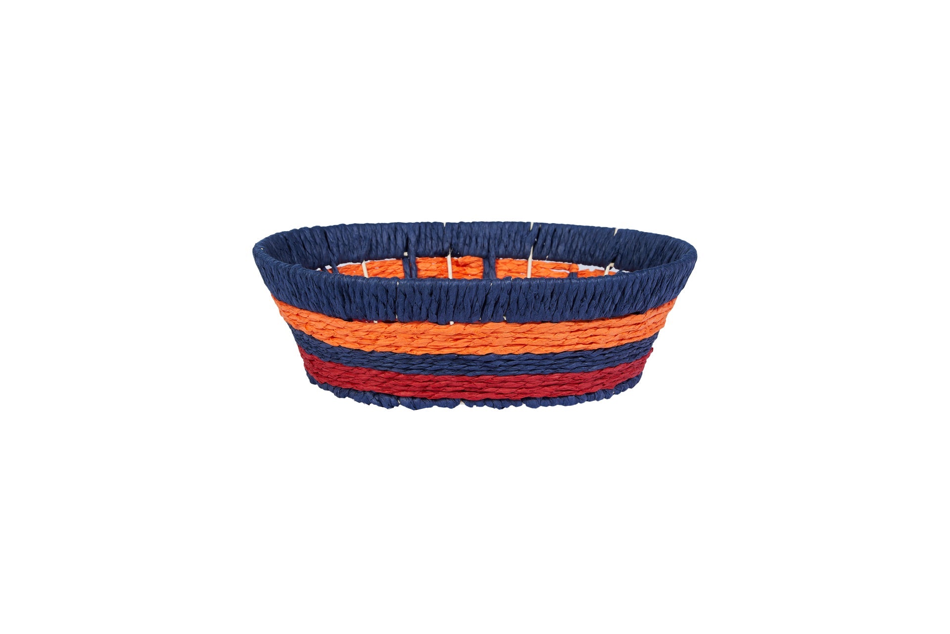 Cestino rotondo intrecciato strisce - blu, arancione, rosso