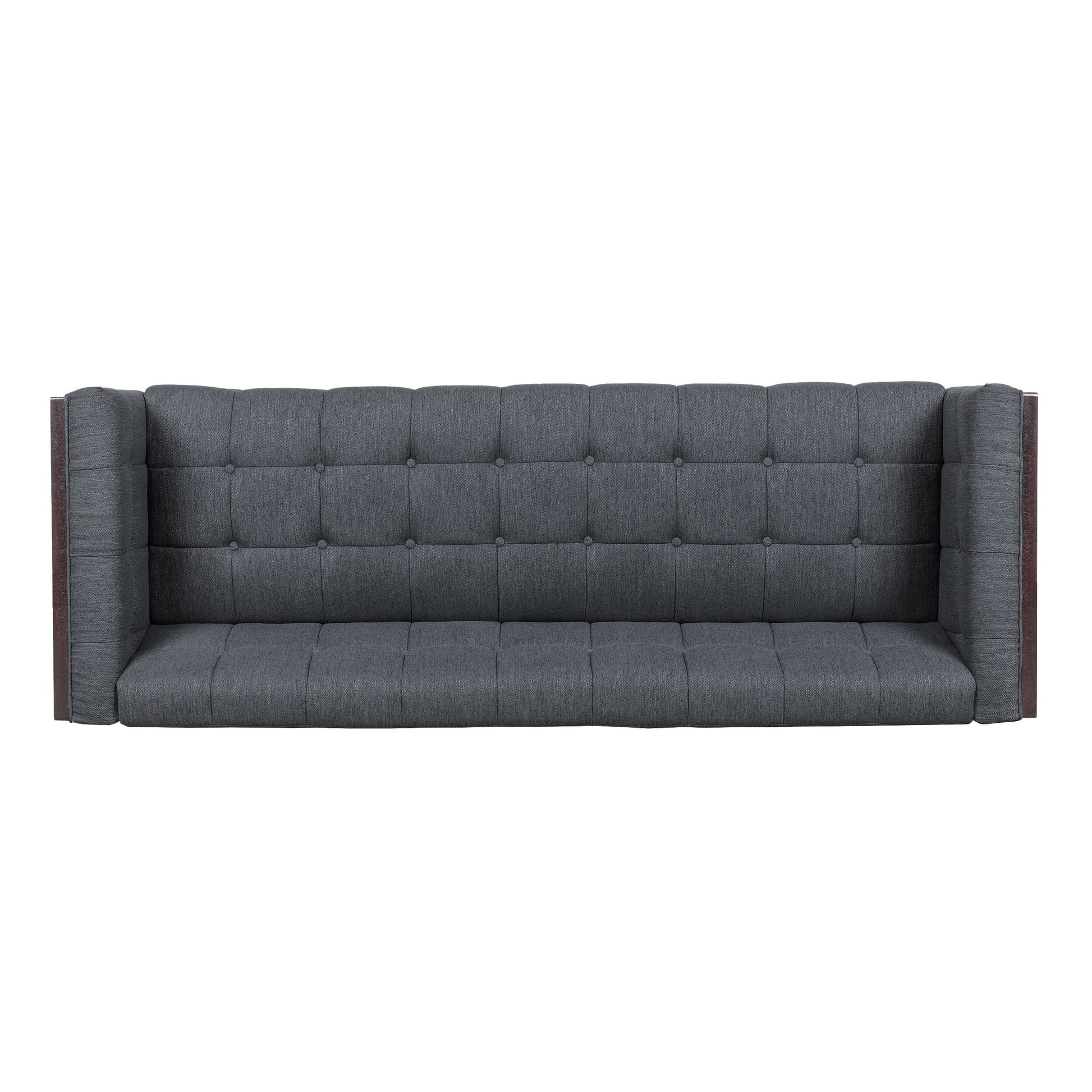 Divano a 3 posti capitonné con bottoni color carbone e gambe in legno