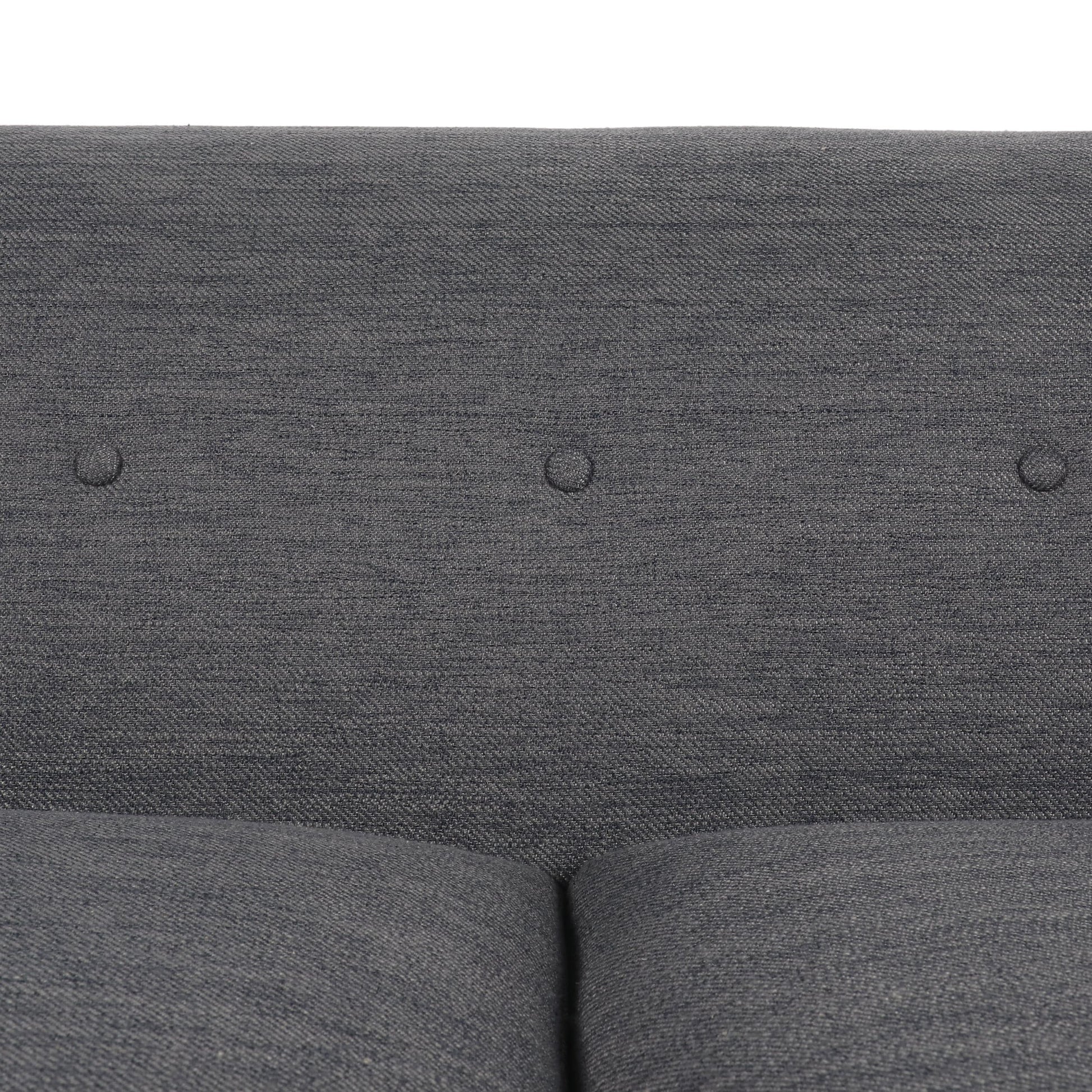 Divano a 3 posti capitonné con bottoni color carbone, gambe in legno e cuscini