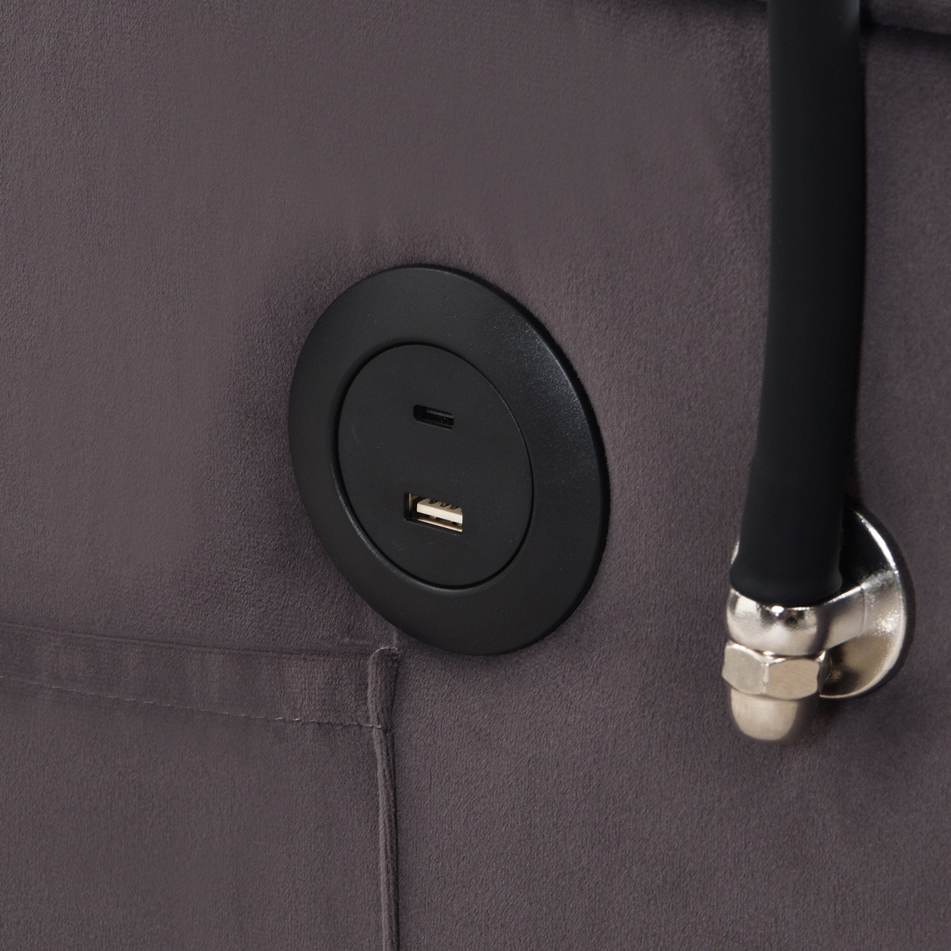 Divano letto in velluto grigio antracite con letto estraibile, schienale regolabile, convertibile, ricarica USB, facile da montare.