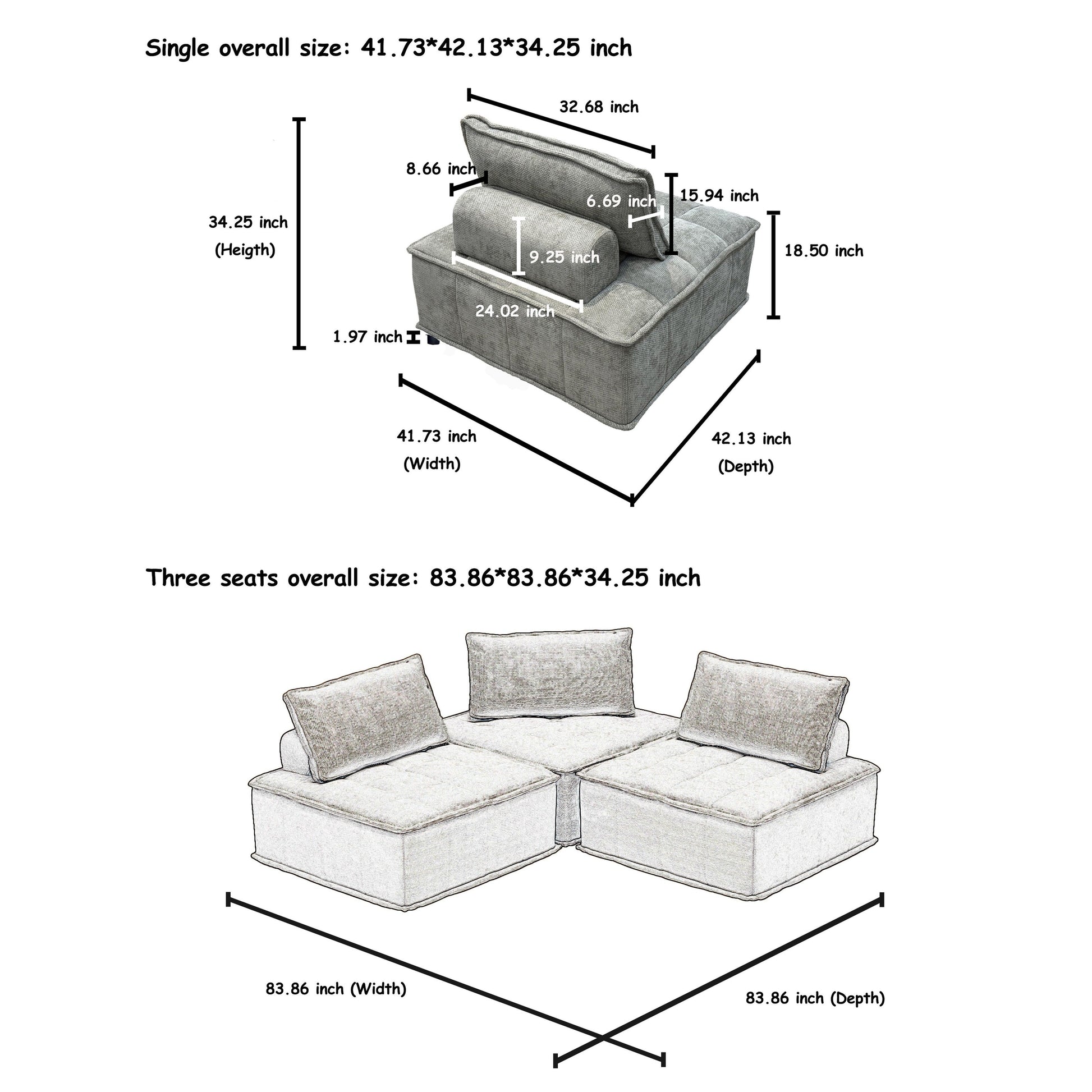 Set di divani modulari Chenille da 3 pezzi