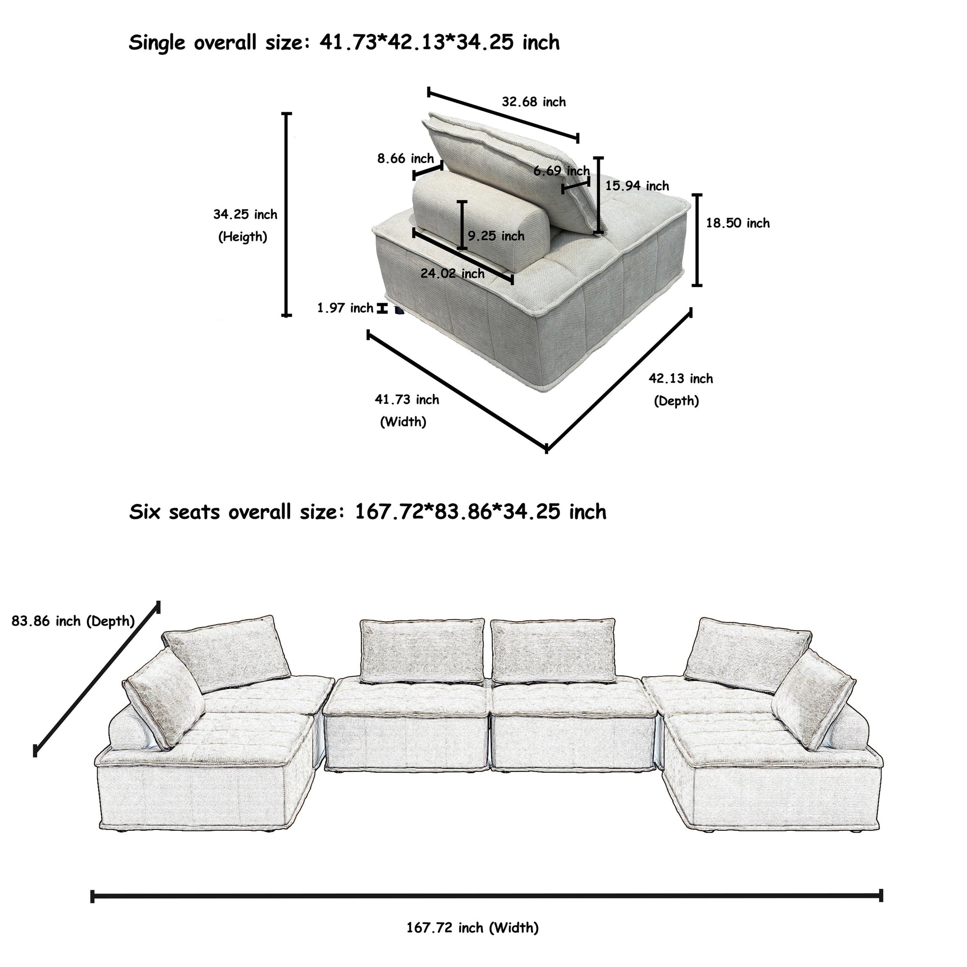 • Divano modulare oversize a 6 pezzi: con una disposizione personalizzabile, questo divano modulare oversize a 6 pezzi è perfetto per soggiorni, sale intrattenimento e spazi aperti. I cuscini mobili e il design elegante offrono versatilità e comfort.