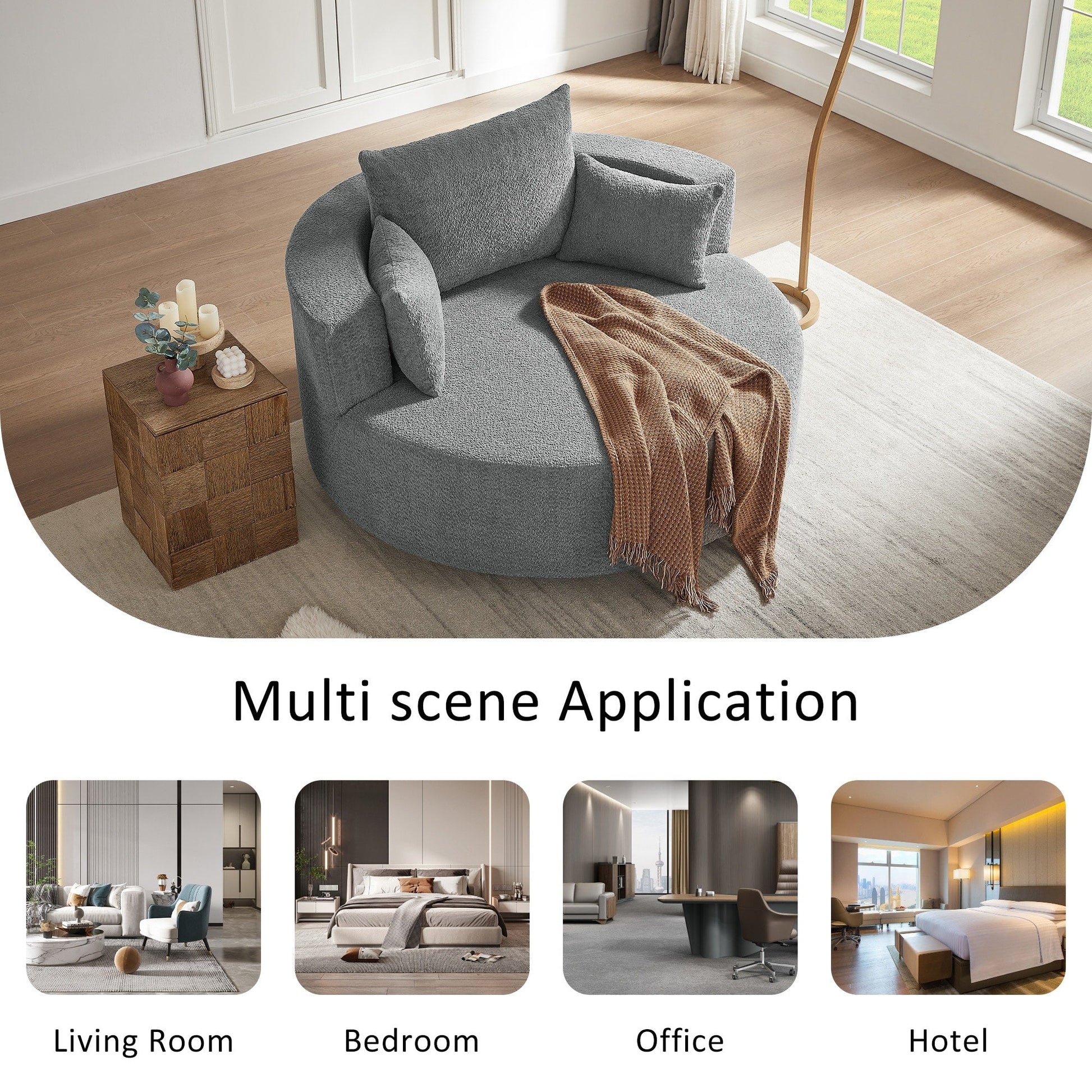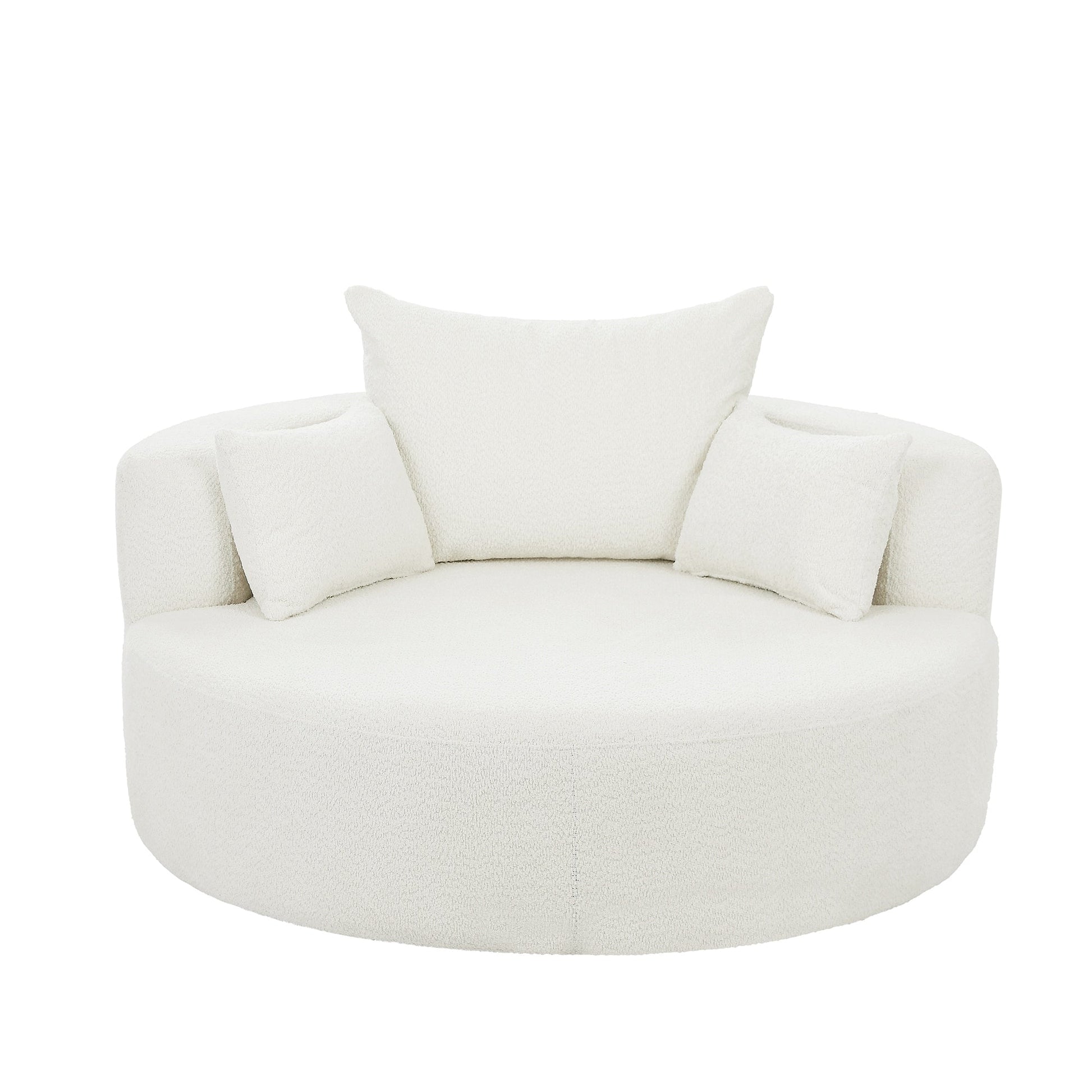 • Rilassati con stile e comodità con questa poltrona girevole a 360°, dotata di una seduta spaziosa profonda 36,5 pollici e tre cuscini rimovibili.