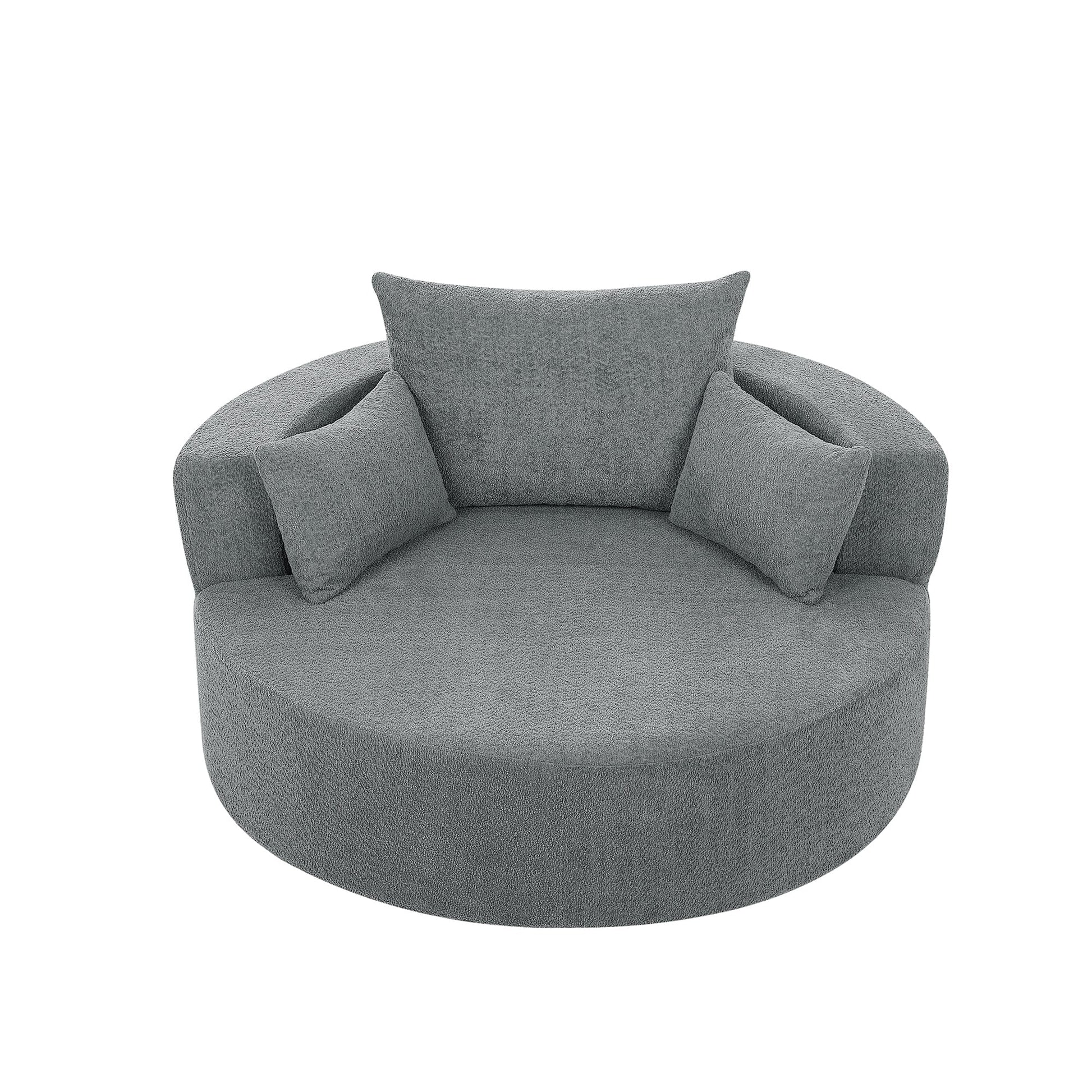 Poltrona lounge con braccioli in ciniglia, poltrona rotonda con base girevole a 360 gradi e 3 cuscini rimovibili