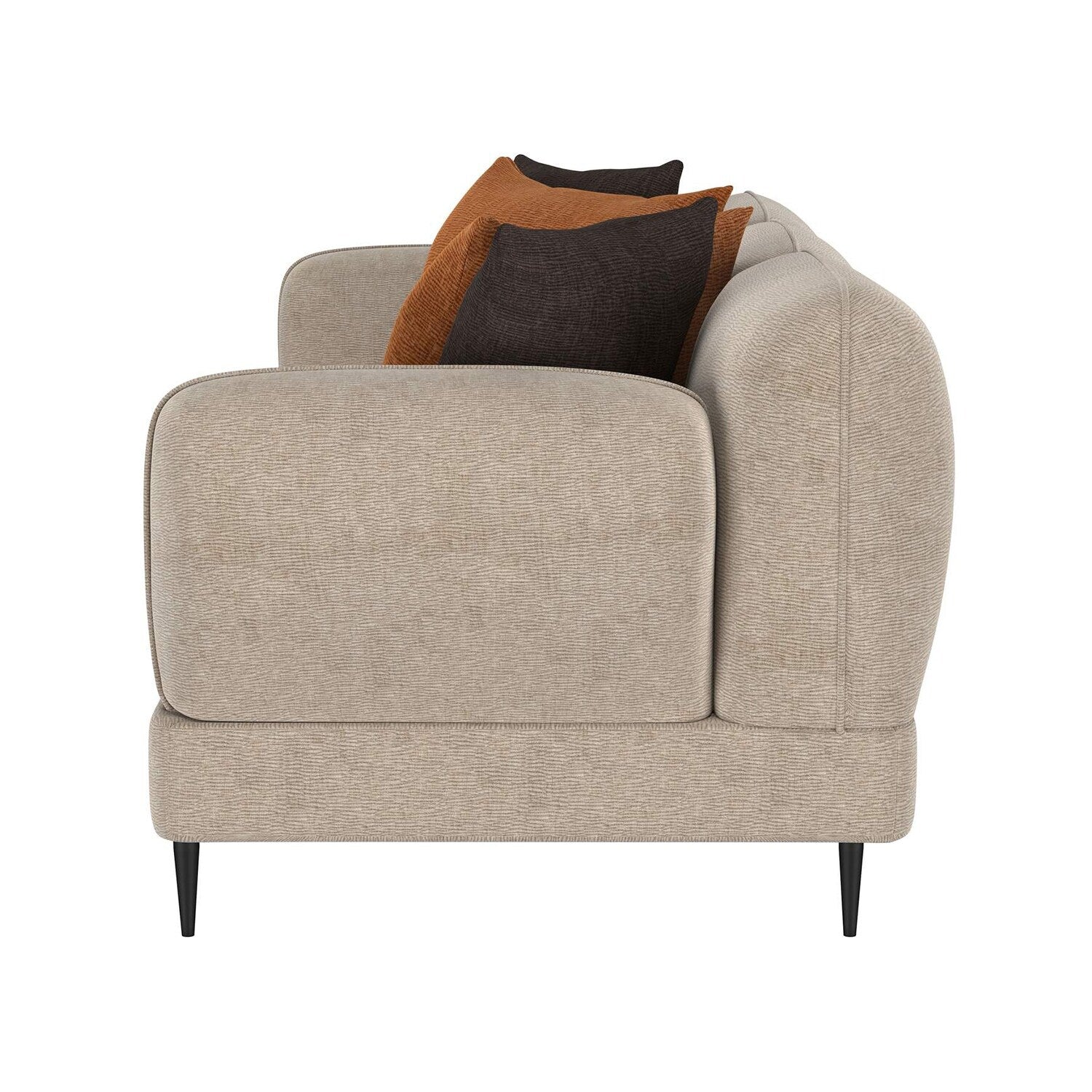 Divano imbottito in ciniglia con bracciolo scolpito color...