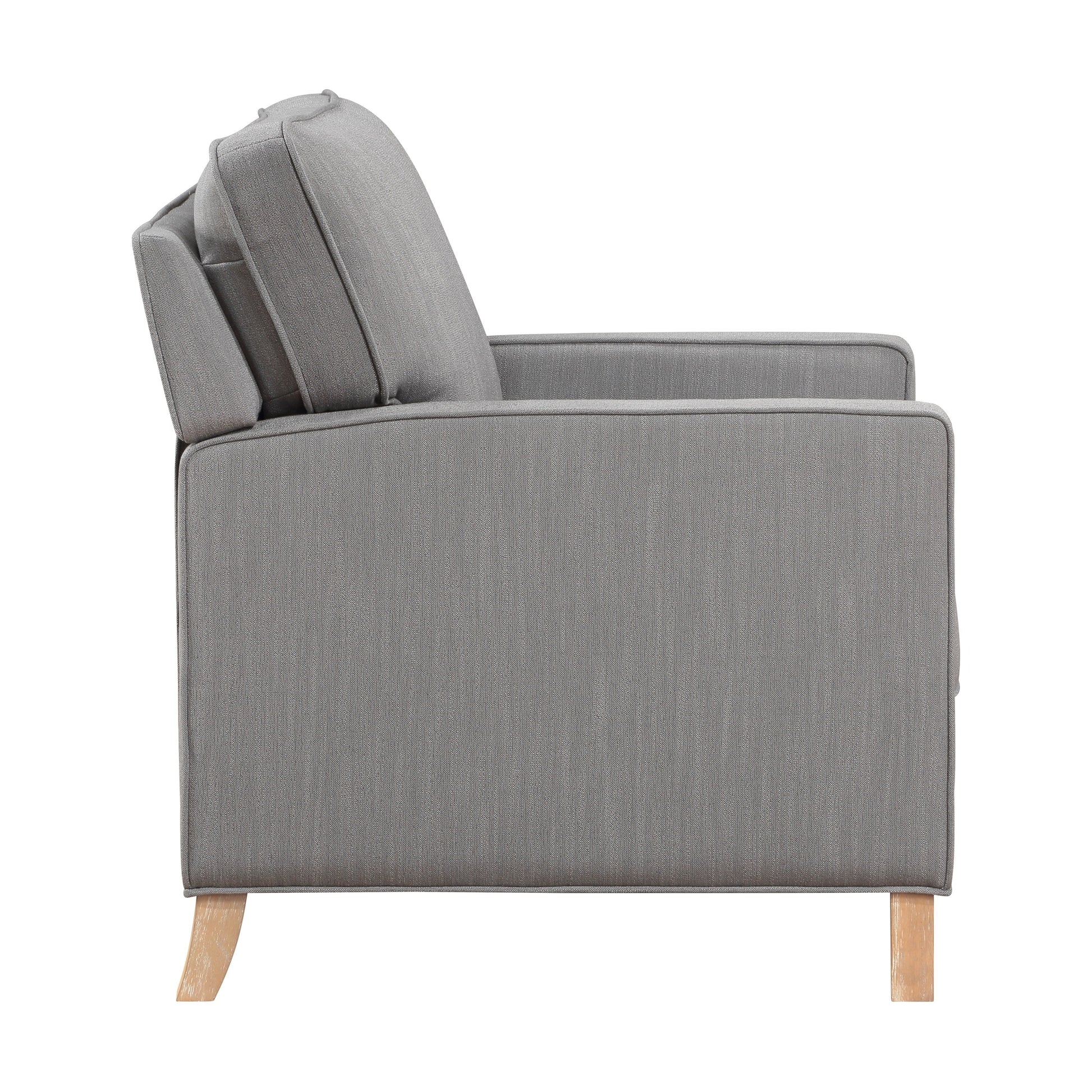 Poltrona reclinabile classica tradizionale con schienale a spinta, rivestimento in tessuto grigio, cuscino per seduta, mobili in legno massello, 1 pezzo