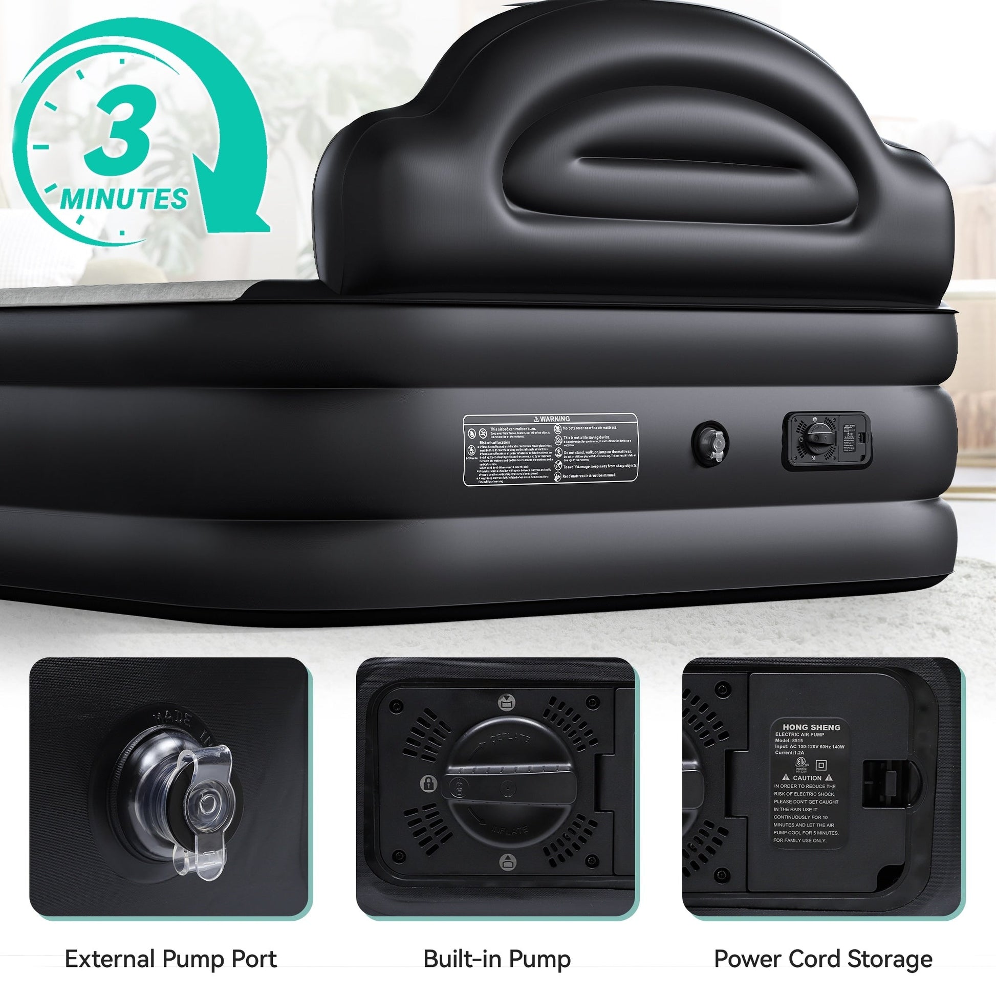 Materasso gonfiabile a forma di nuvola con cavo di alimentazione integrato, pompa fissa e testiera gonfiabile