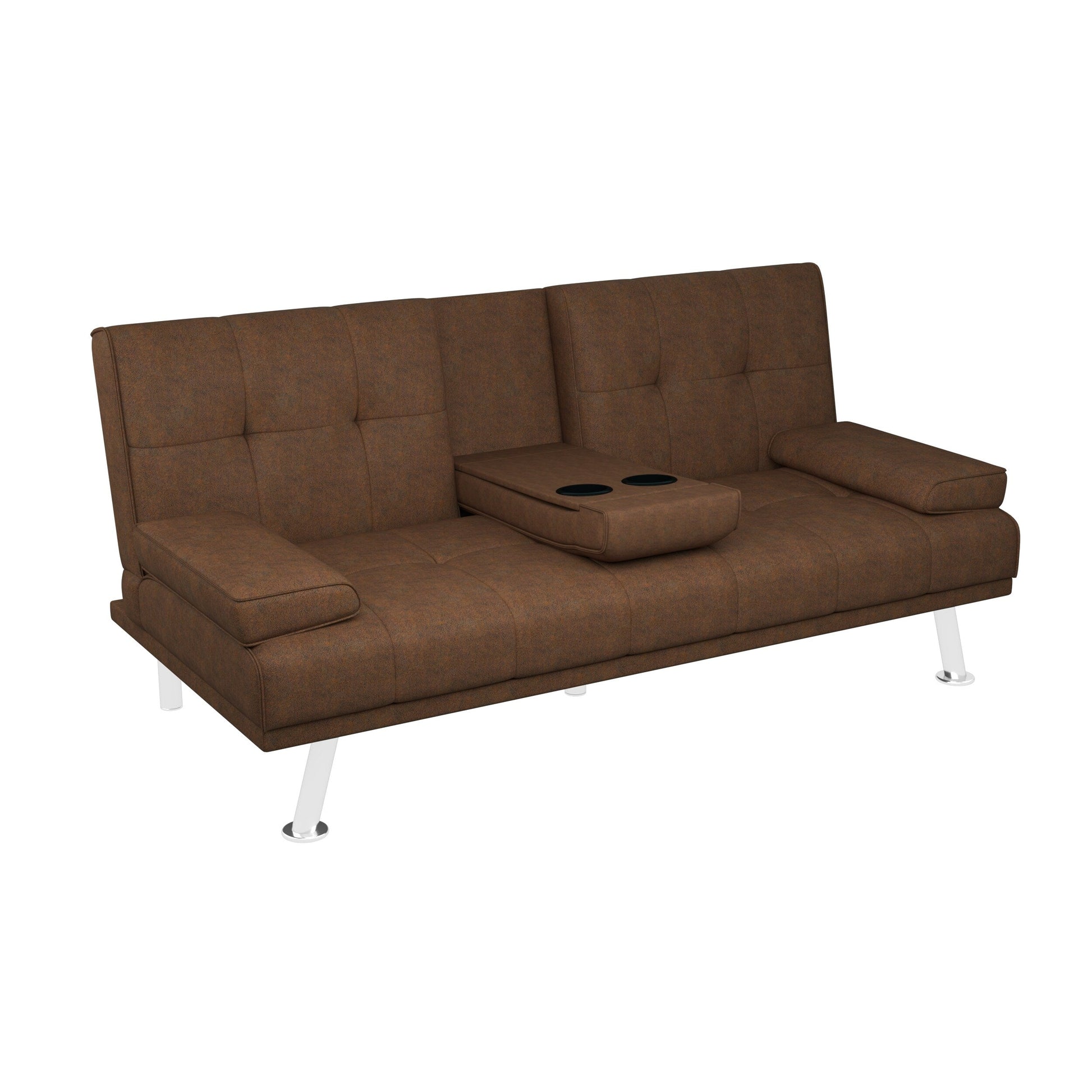 Divano letto pieghevole con gambe in metallo e portabicchieri