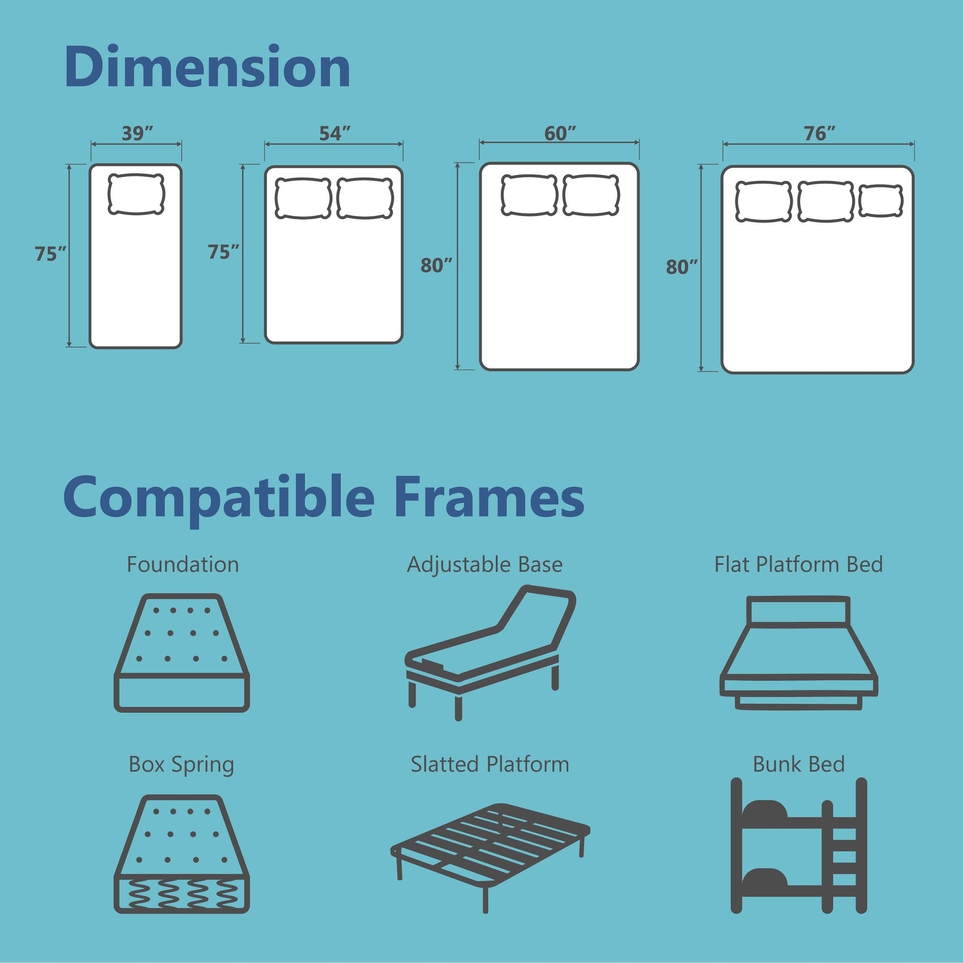• Disponibile in tre (3) opzioni di dimensioni: Twin, Full o Queen