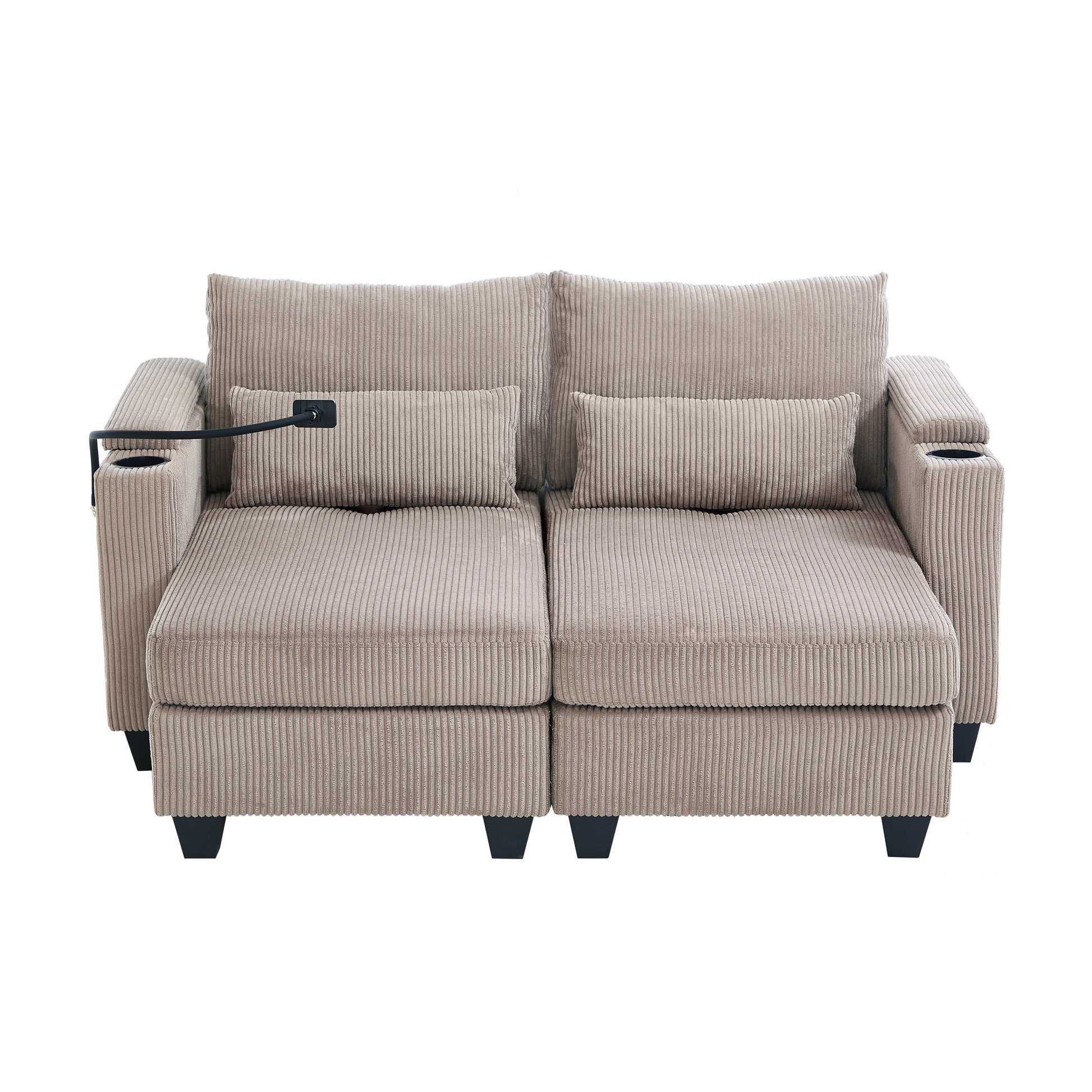 Divano letto trasformabile in chaise longue da 63 posti, divano letto in velluto a coste con porte USB e due portabicchieri