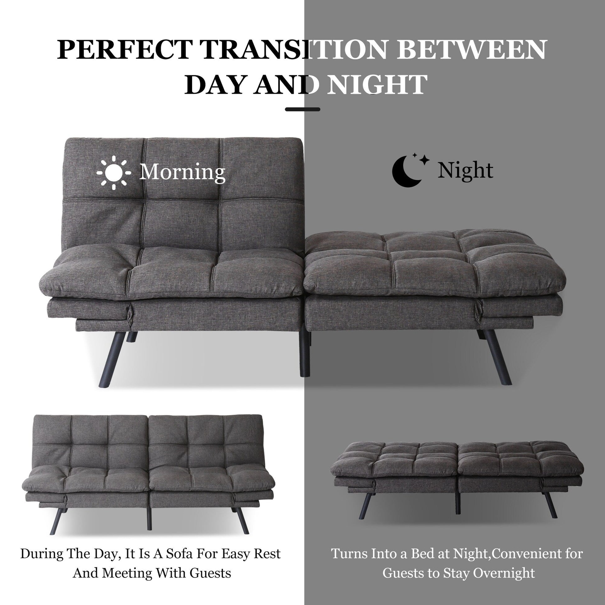 • Questo divano letto si trasforma facilmente da un moderno divano futon a un comodo letto. Perfetto per appartamenti, uffici, camere degli ospiti e camere da letto. Soddisfa diverse esigenze, che si tratti di un posto dove rilassarsi dopo una lunga giornata o di un letto per gli ospiti. Con il suo design elegante e la sua funzionalità, aggiunge fascino e praticità a qualsiasi spazio abitativo.