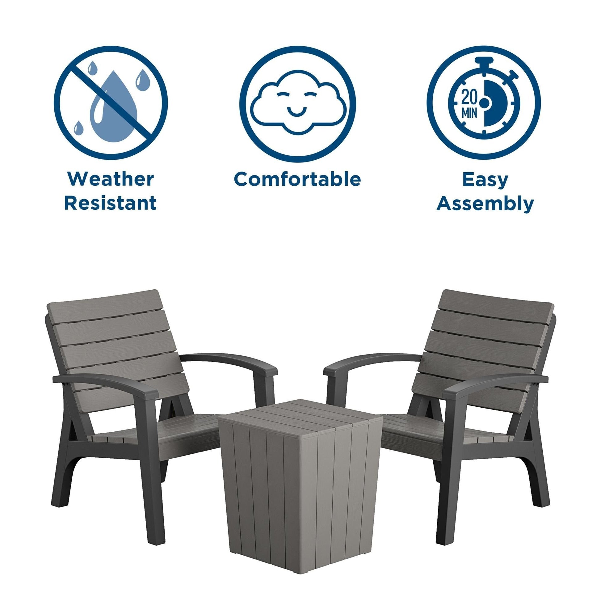 Goditi l'aria aperta con questo set da conversazione in resina da 4 pezzi. Il set include un divano a due posti, due poltrone e un tavolino da caffè, che può ospitare comodamente fino a quattro persone. Realizzato in resistente resina stampata a iniezione, presenta un'intramontabile finitura effetto legno, ma è resistente alle intemperie, allo sbiadimento e alle crepe. Il divano a due posti e le sedie presentano una seduta e uno schienale sagomati che offrono un supporto e un comfort ottimali. Il tavolino da caffè ha un ampio piano e un ripiano che può contenere bevande, snack o decorazioni. Il set è facile da montare in 20 minuti o meno con un solo attrezzo (incluso). Viene fornito in un'unica scatola per una consegna comoda. Questo set da conversazione in resina da 4 pezzi è l'aggiunta perfetta al tuo patio, giardino o cortile.