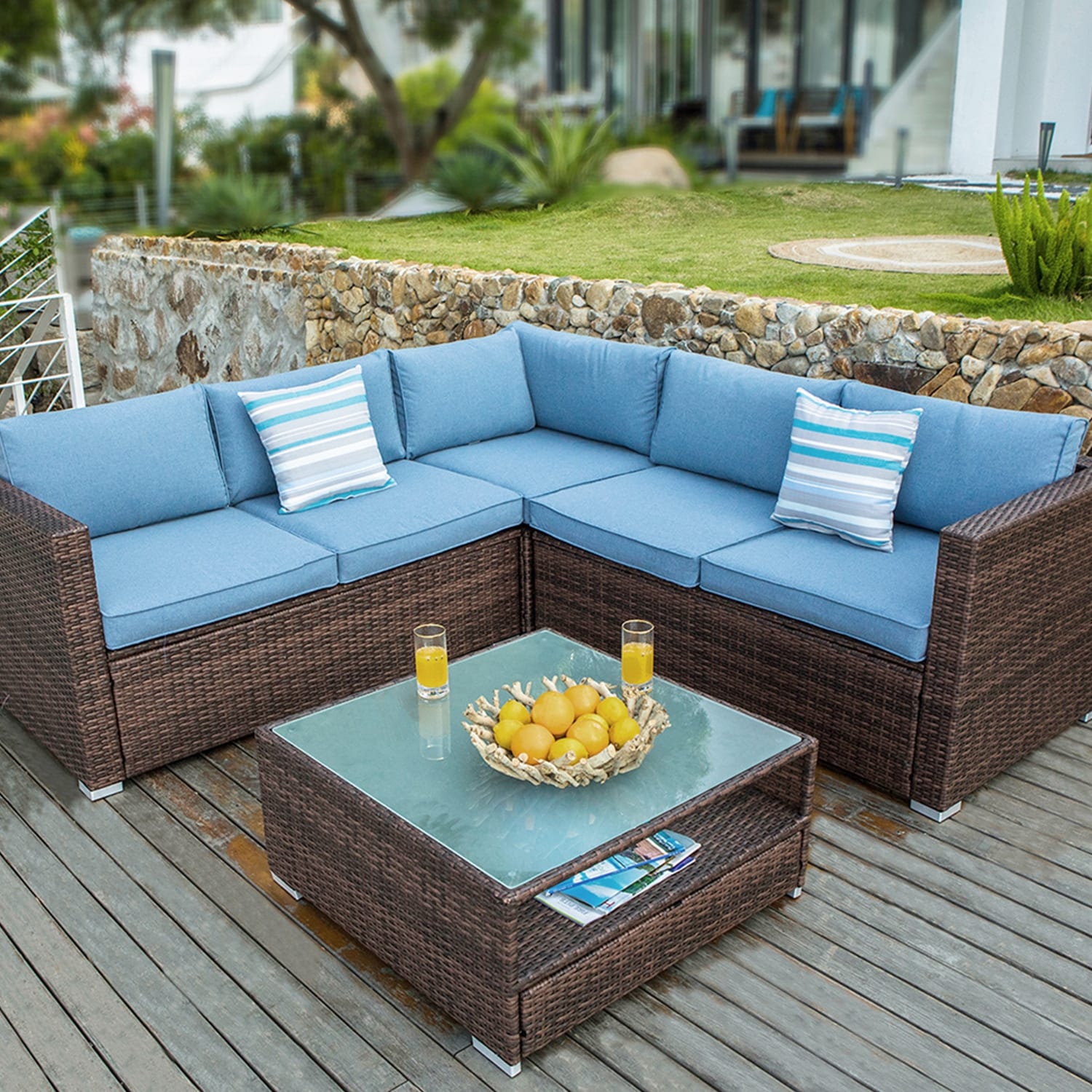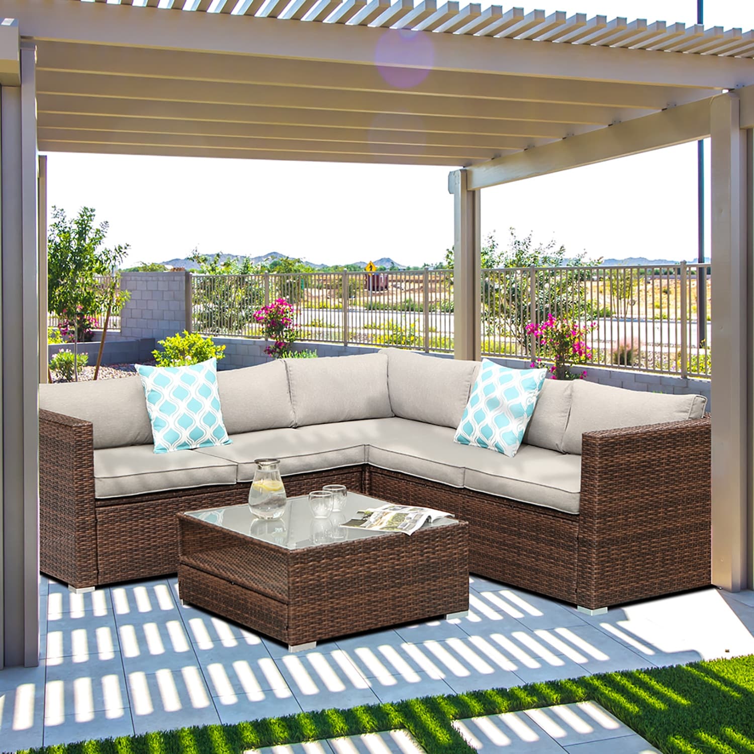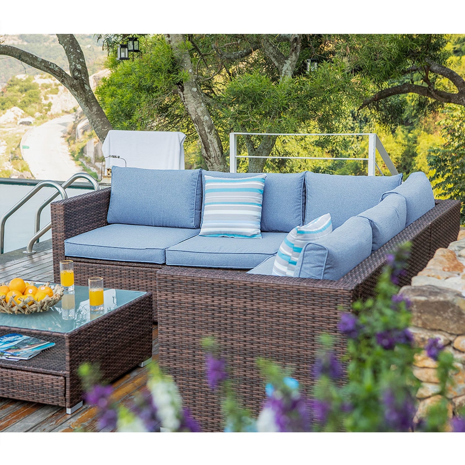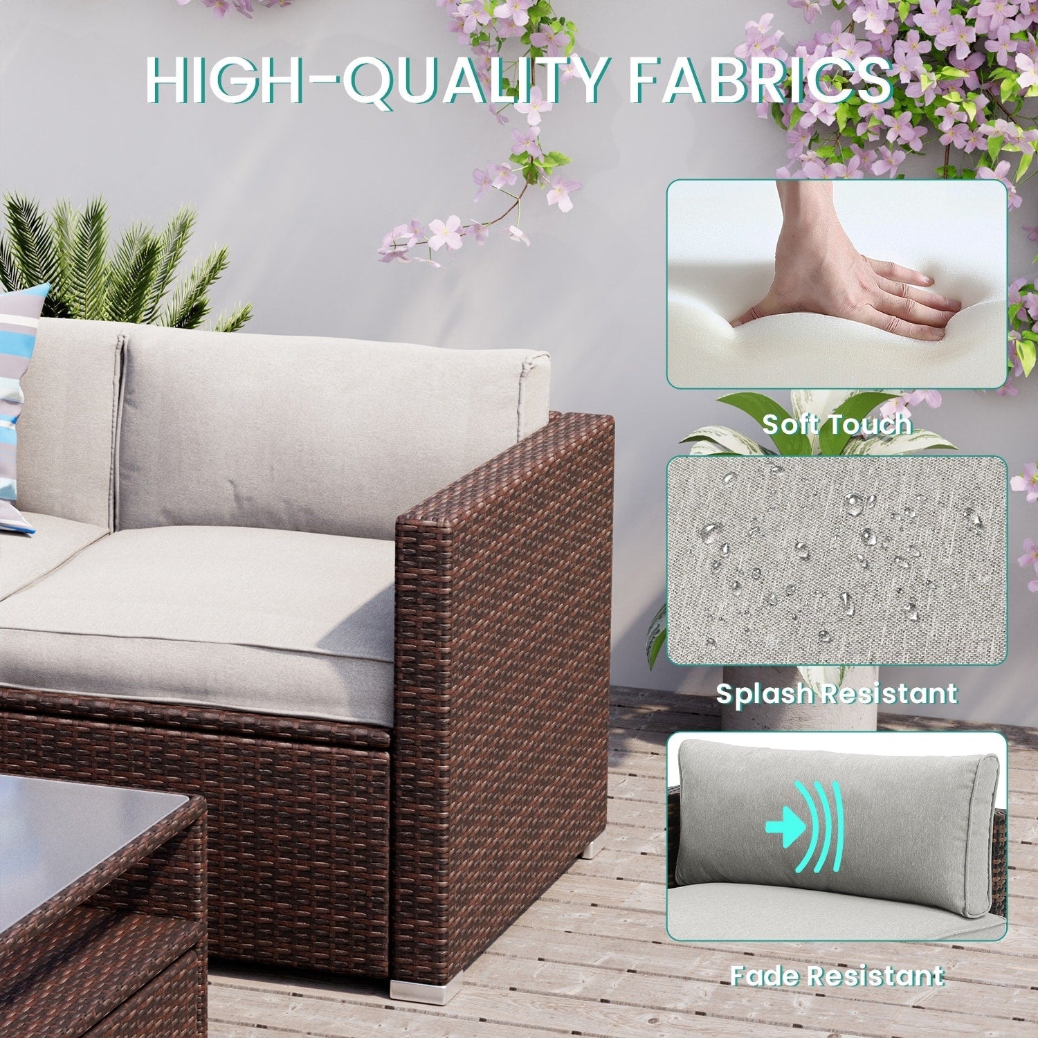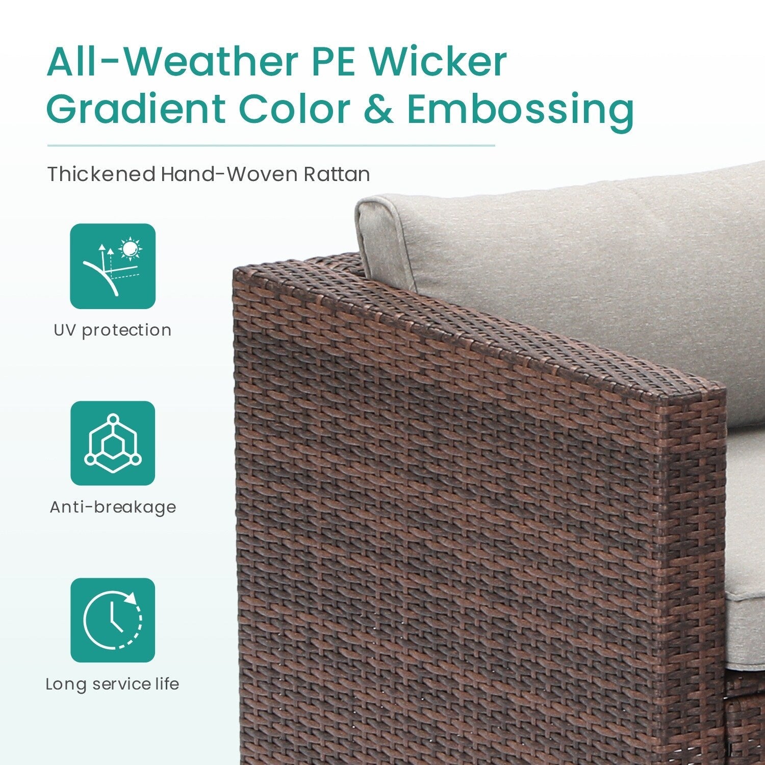 Goditi i grandi spazi aperti con stile con lo spazioso e resistente set di divani componibili da esterno in vimini COSIEST. Intrecciato a mano con vimini in resina PE resistente alle intemperie e una struttura in acciaio antiruggine, questo set da conversazione è perfetto per le riunioni all'aperto. Il set include un divano a L a 3 sezioni, un tavolino in vetro temperato con ripiano portaoggetti e cuscini extra. Dotato di cuscini rimovibili e impermeabili per la protezione, questo set è perfetto per tutte le stagioni.