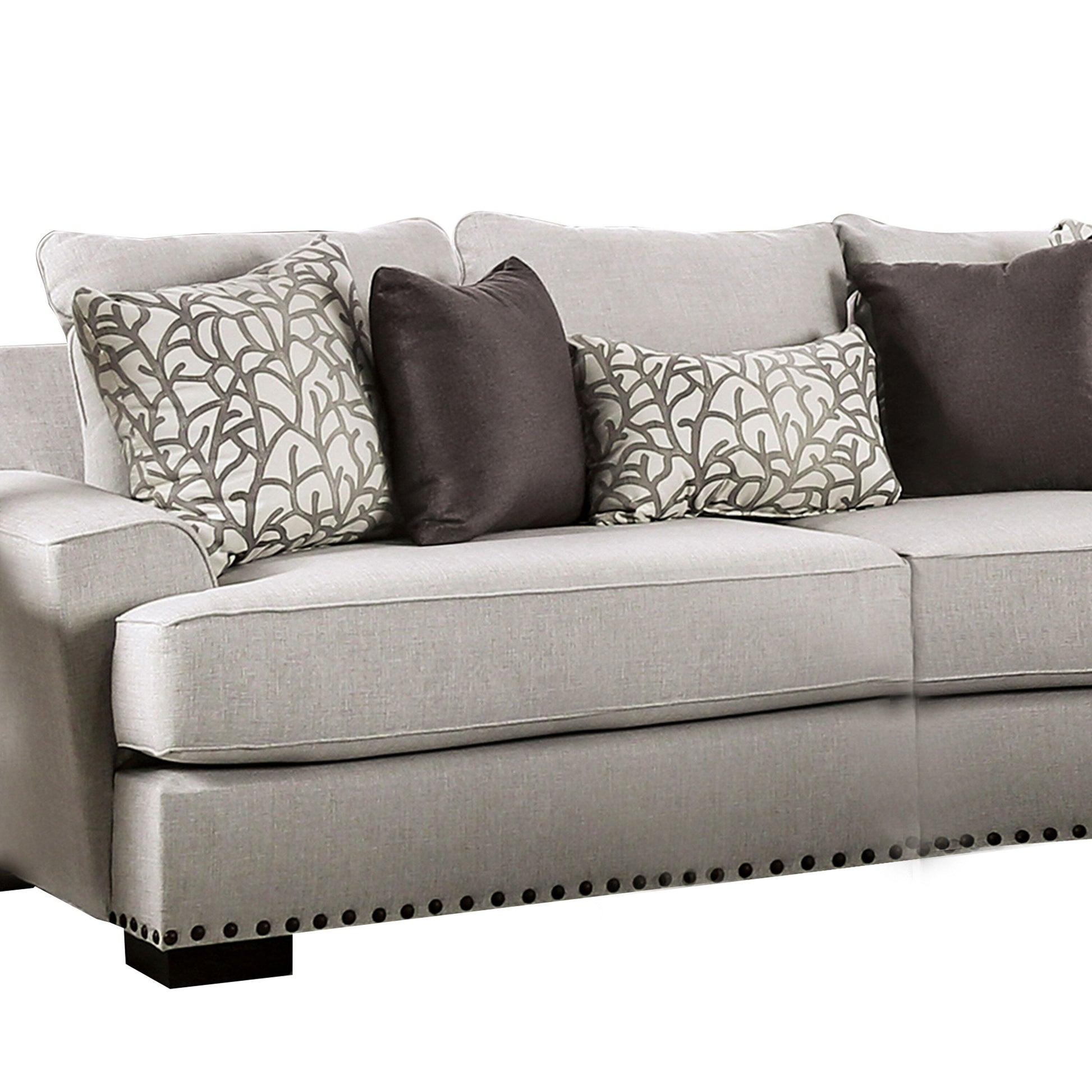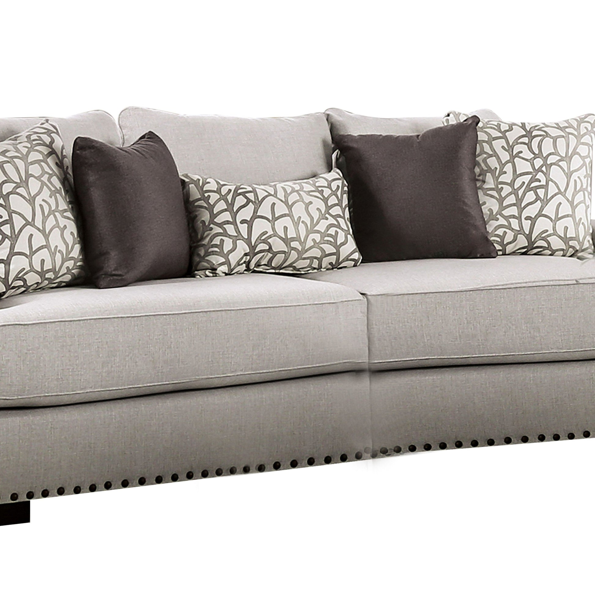 Divano Coty, 101 pollici grigio chiaro, 5 cuscini decorativi, cuscino del sedile a forma di T