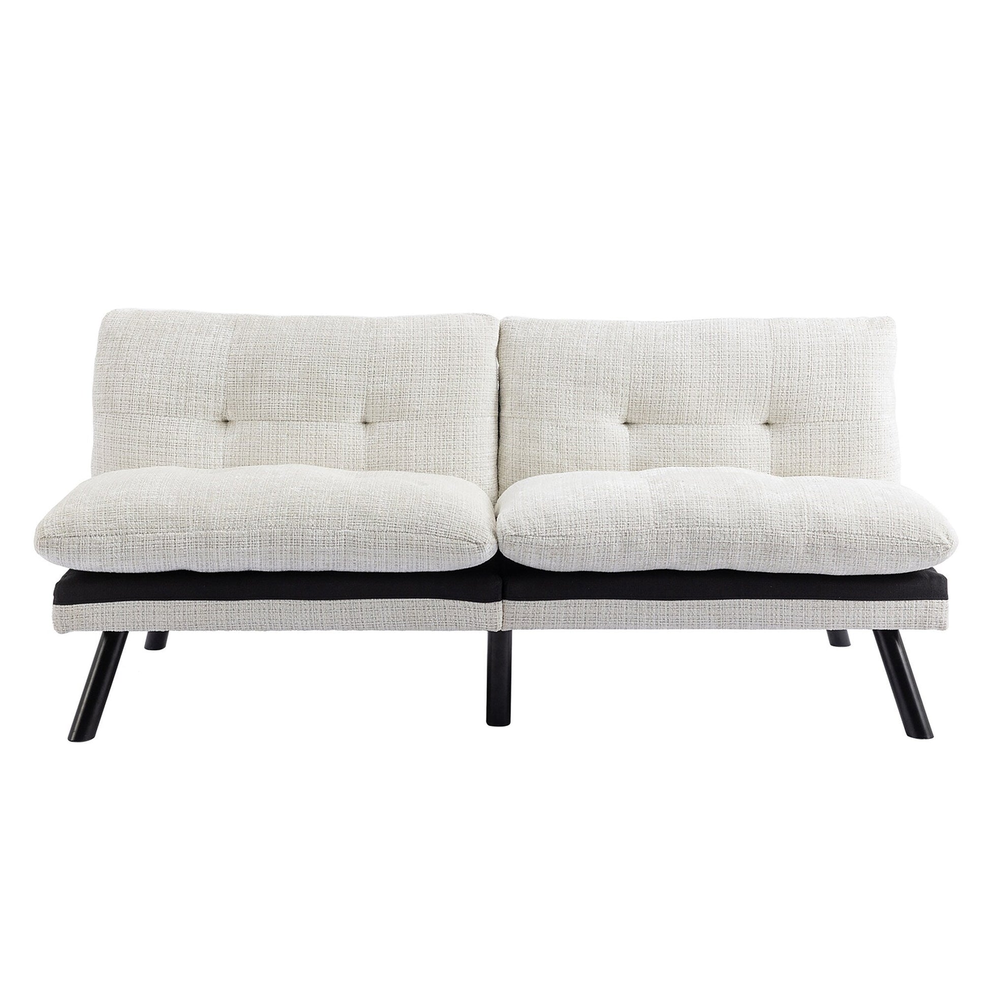 Divano letto futon convertibile in ciniglia bianco crema da 75,6 pollici con gambe in metallo per soggiorno