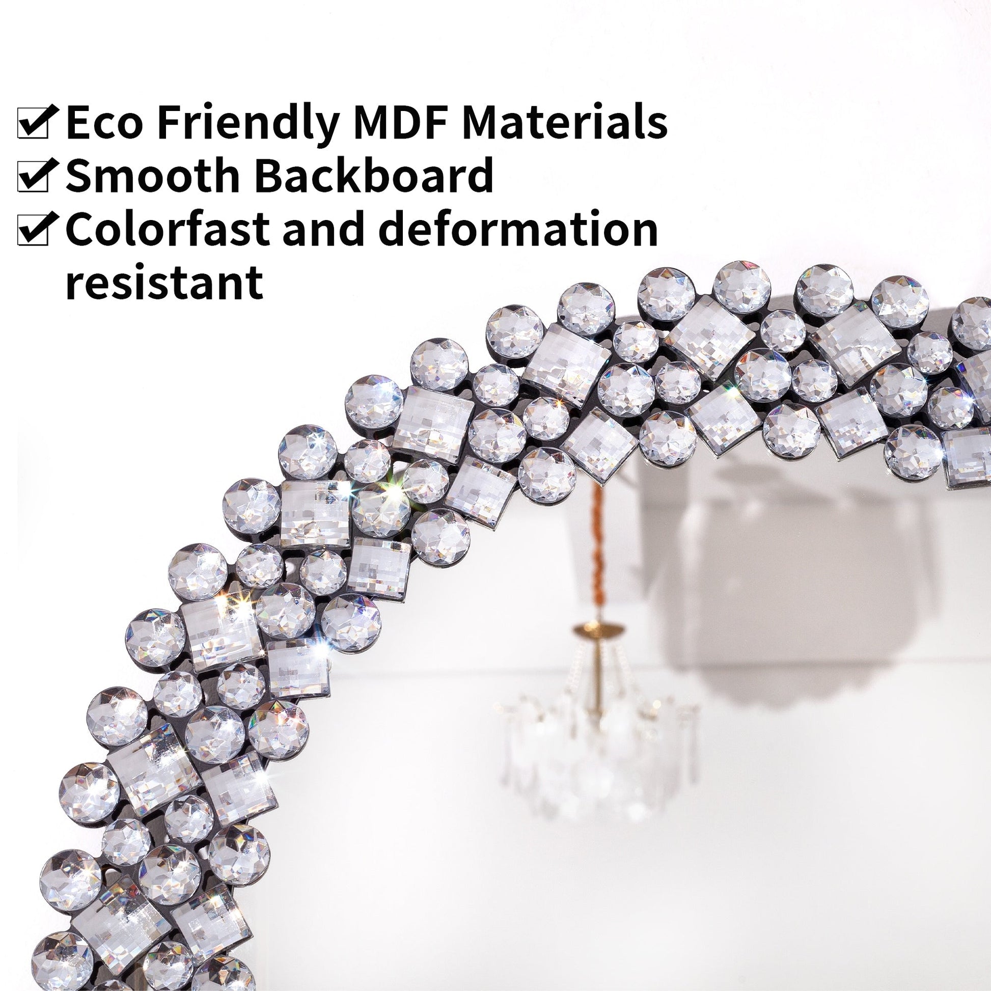 • Design sofisticato 】Lo specchio da parete rotondo è decorato con diversi strati di cristalli grandi, lucidi e lussuosi sul bordo esterno, creando un effetto scintillante che cattura l'attenzione e funge da punto focale nell'arredamento della casa.
