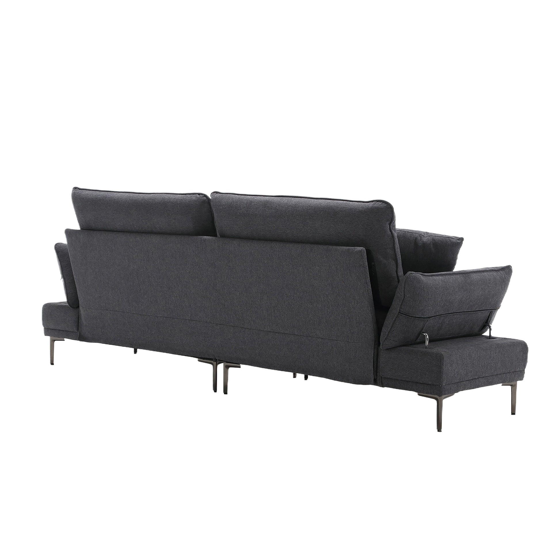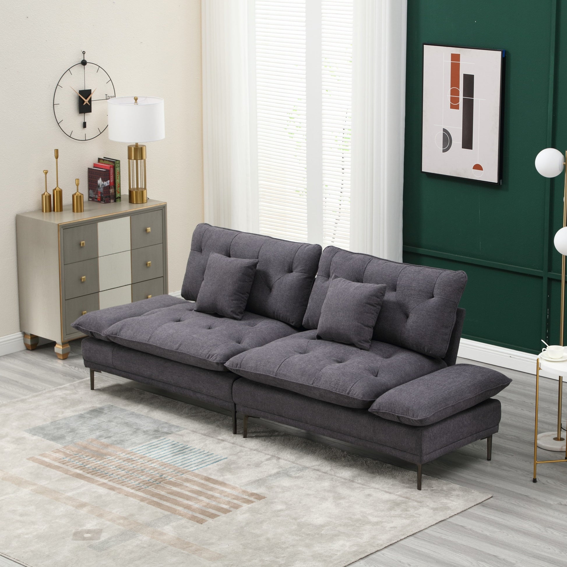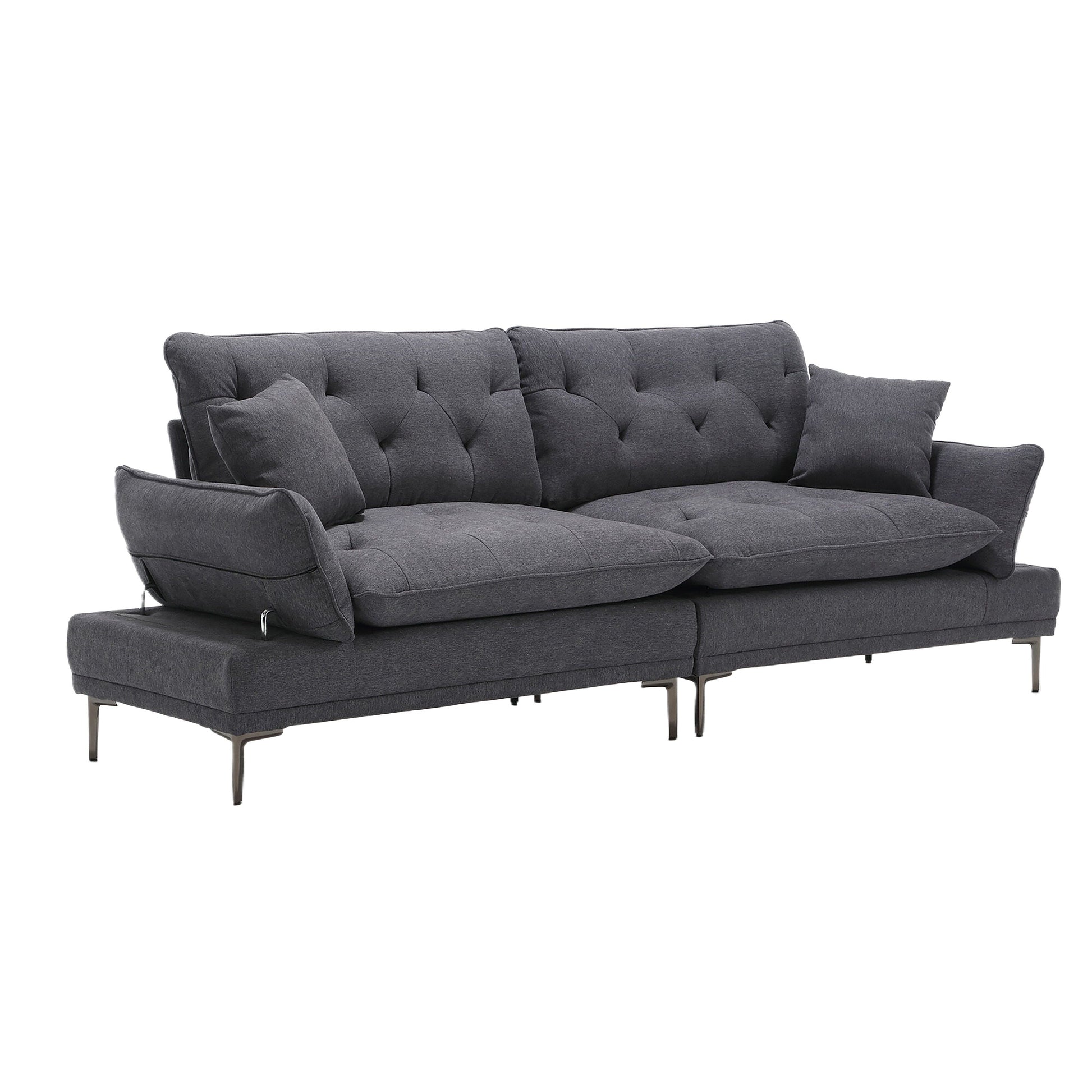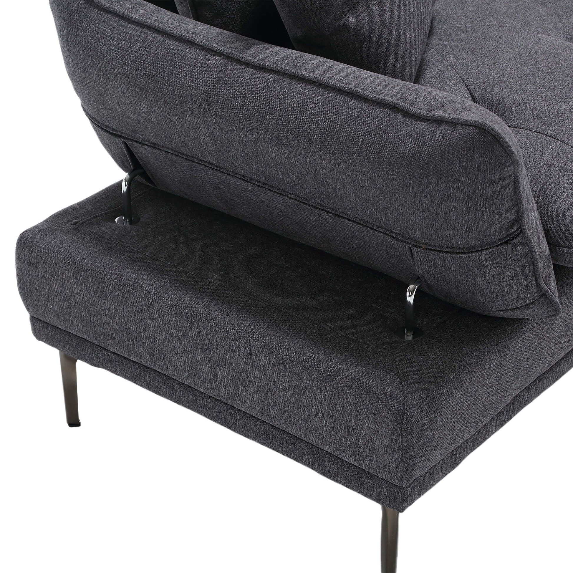 Divano a due posti in lino grigio scuro con braccioli regolabili