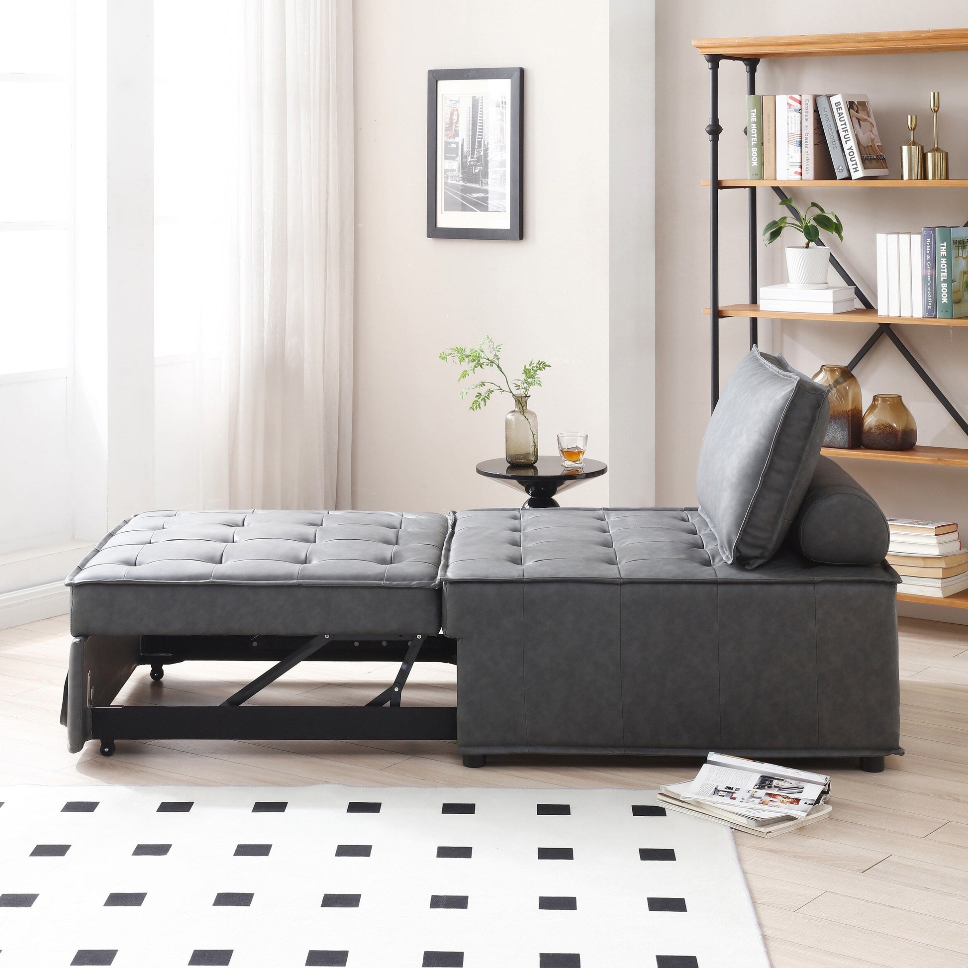Divano letto singolo multiuso in similpelle grigio scuro...