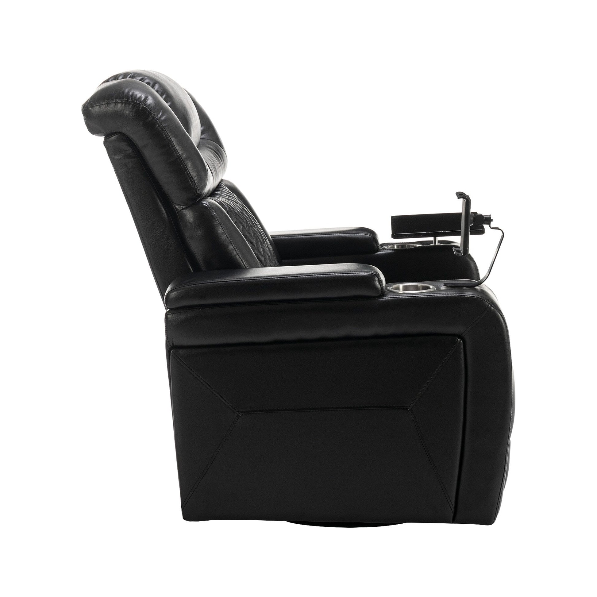 Poltrona reclinabile elettrica girevole in similpelle con sedile singolo, per home theater, con tavolino, portabicchieri e bracciolo nascosto