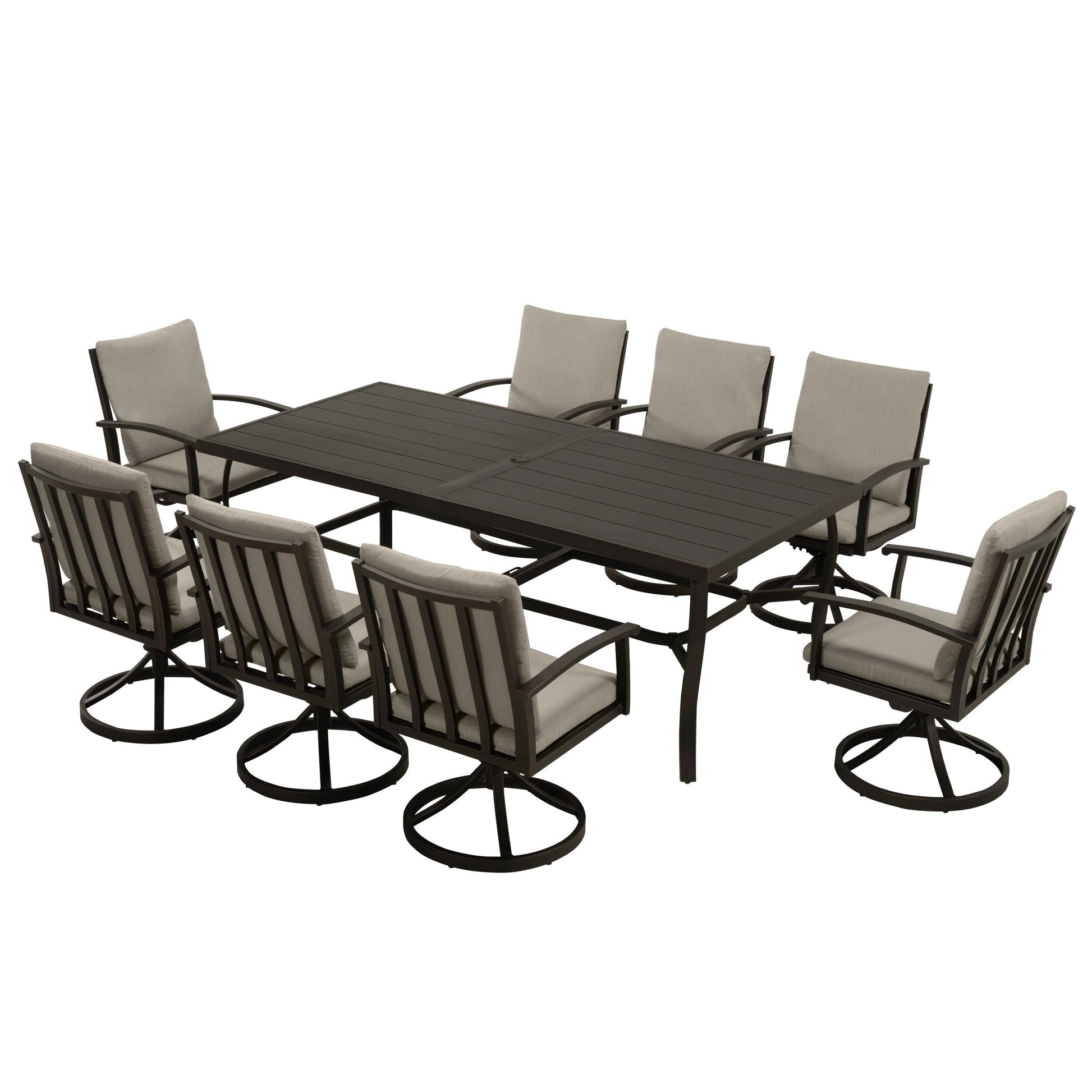 Set da pranzo per patio in alluminio EGEIROS LIFE AluLux da 9 pezzi con 8 sedie da pranzo girevoli e cuscini lavabili