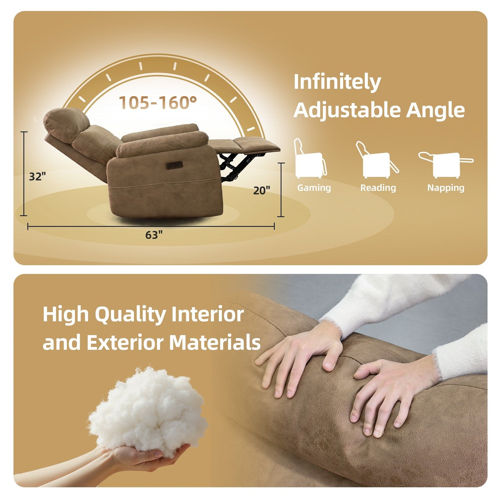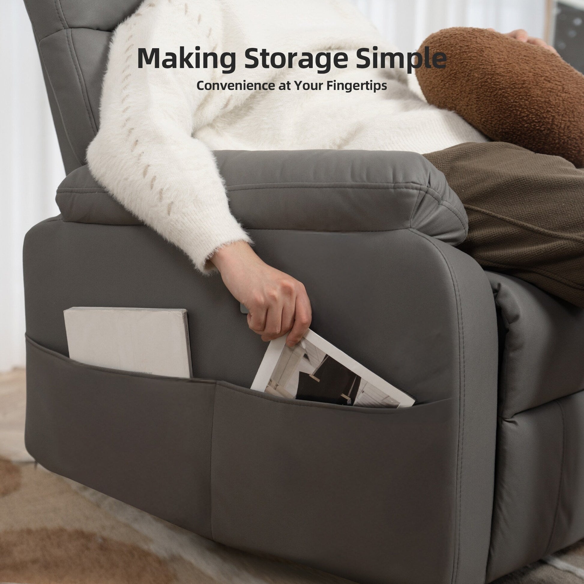 Prova il massimo del relax e del comfort con questa poltrona reclinabile elettrica a gravità zero. Progettata per sollevare delicatamente le gambe all'altezza del cuore, offre un effetto di distribuzione del peso che culla il corpo, alleviando la pressione sulla colonna vertebrale e il mal di schiena. Il morbido tessuto in velluto a coste offre una sensazione di lusso e comfort, rendendola perfetta per rilassarsi, leggere o fare un pisolino. Dotata di porte di ricarica USB e Type-C, puoi tenere i tuoi dispositivi accesi mentre ti rilassi. La tasca laterale è ideale per tenere gli oggetti essenziali a portata di mano e il supporto lombare assicura che la schiena rimanga comoda e sostenuta. Questa moderna poltrona reclinabile grigia non è solo un elemento d'arredo funzionale, ma anche un'aggiunta elegante a qualsiasi soggiorno, camera da letto o ufficio. Che tu abbia bisogno di un posto dove rilassarti dopo una lunga giornata o di un posto comodo per goderti un film, questa poltrona reclinabile è la scelta perfetta.
