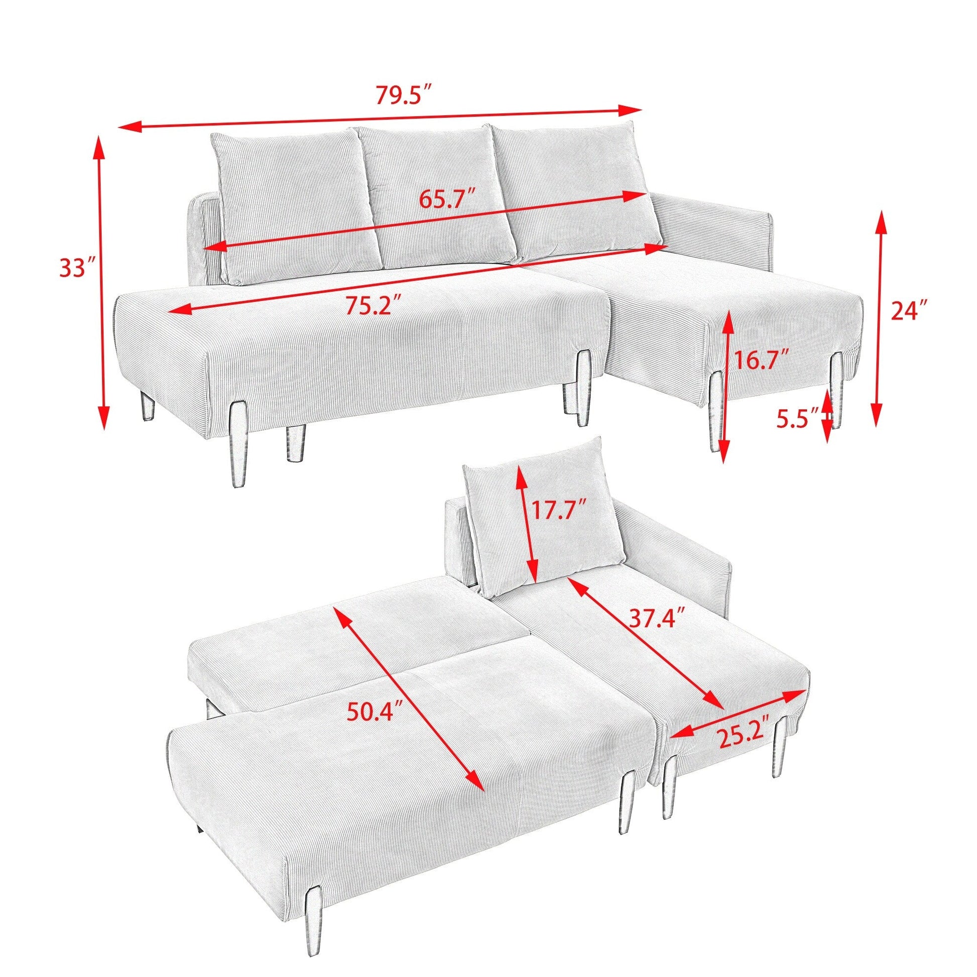 Elegante divano in velluto da 79,50 pollici -...