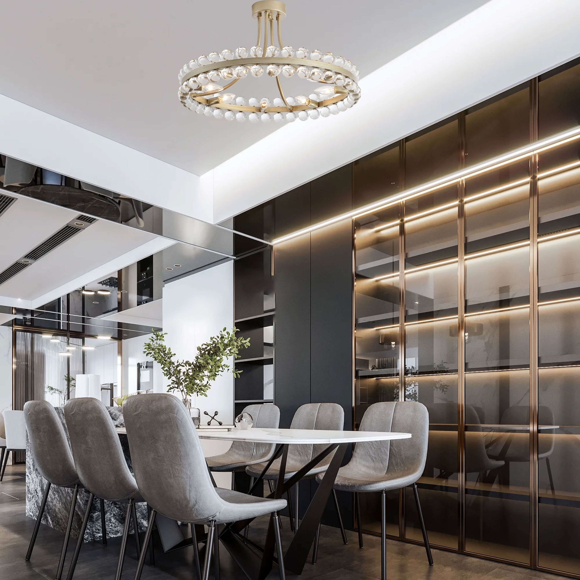 Illumina la tua casa con il lampadario semi-incassato Elvira a 8 luci Wagon Wheel Crystal. Questo splendido lampadario presenta un anello in ferro decorato con cristalli sferici, creando un look accattivante e sofisticato. Progettato per la versatilità, lo stile semi-incassato è perfetto per soffitti bassi ed è compatibile con dimmer. Richiede otto (8) lampadine da 40 watt (E12) (non incluse), adatte per illuminazione a incandescenza, alogena o LED. Valorizza qualsiasi spazio, dalle sale da pranzo agli ingressi, con il lampadario Elvira, una splendida fusione di eleganza senza tempo e stile moderno!