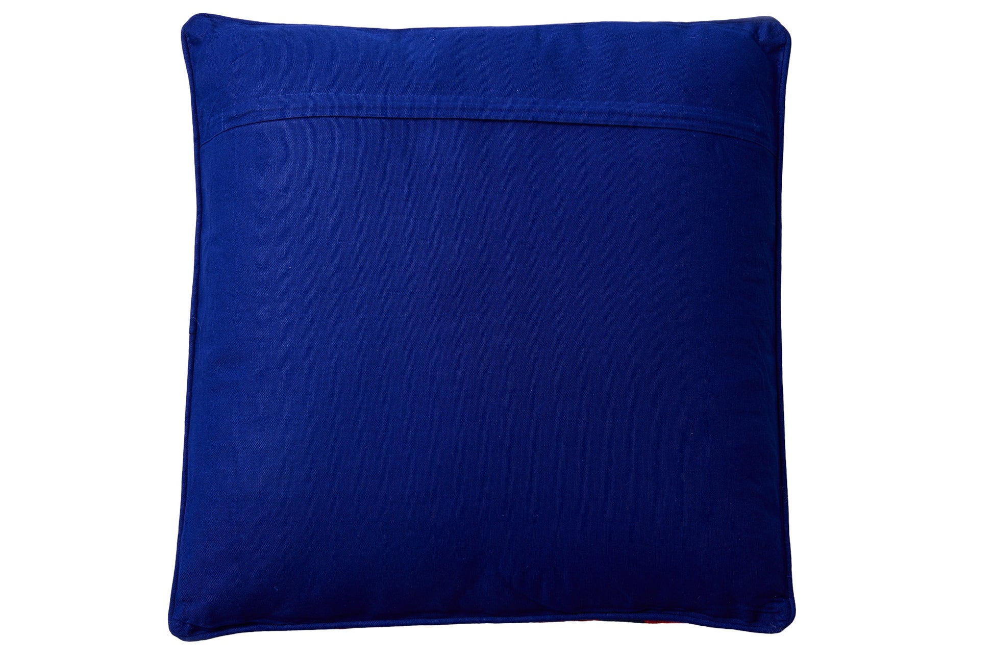 Ricamo - Cuscino Fiori Blu Su Fondo Rosso