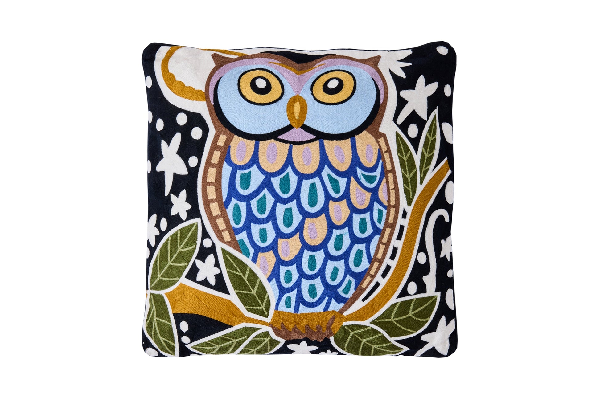 Ricamo - Cuscino Ricamato A Mano Civetta