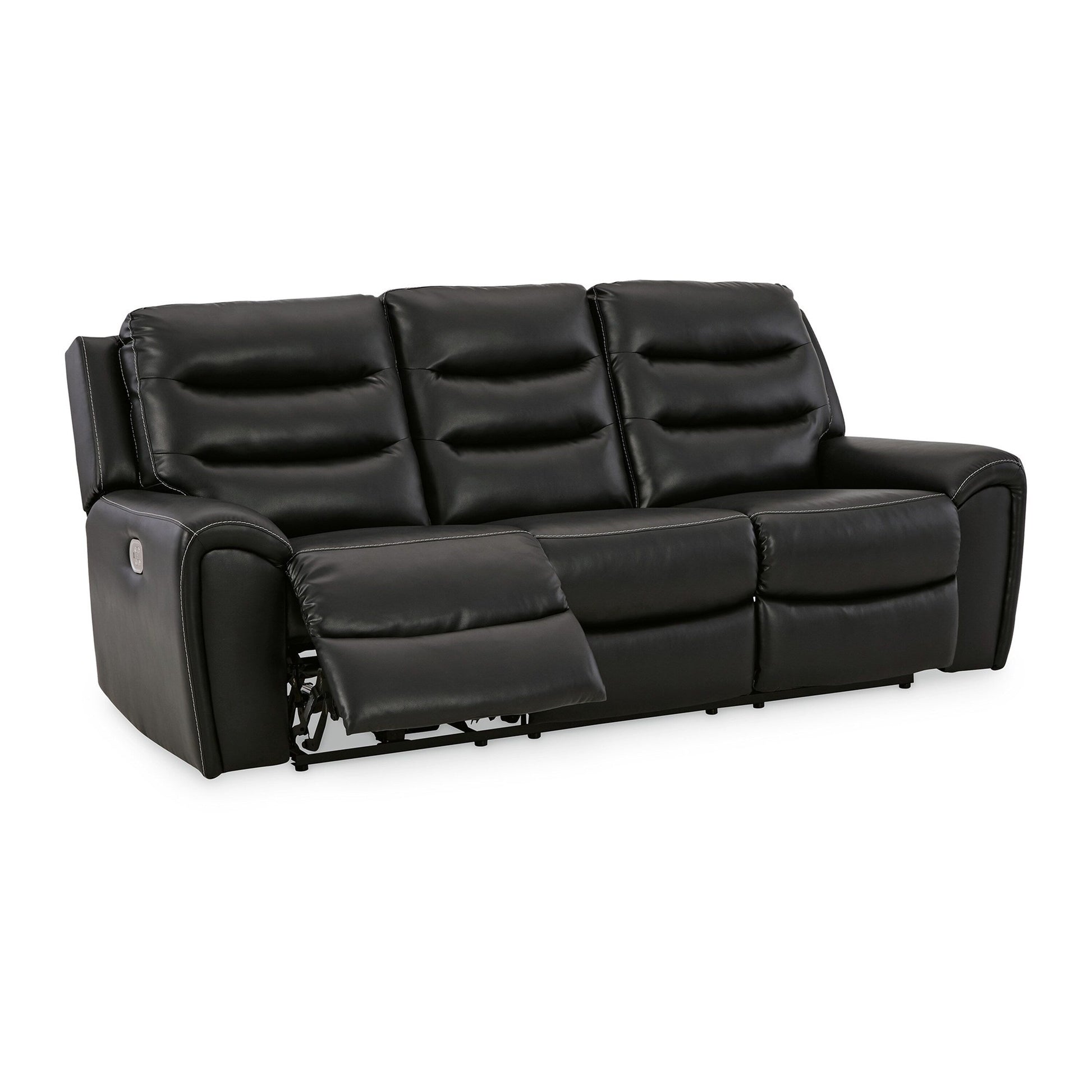 Divano reclinabile elettrico Erine con porte USB, similpelle nera, 90 pollici