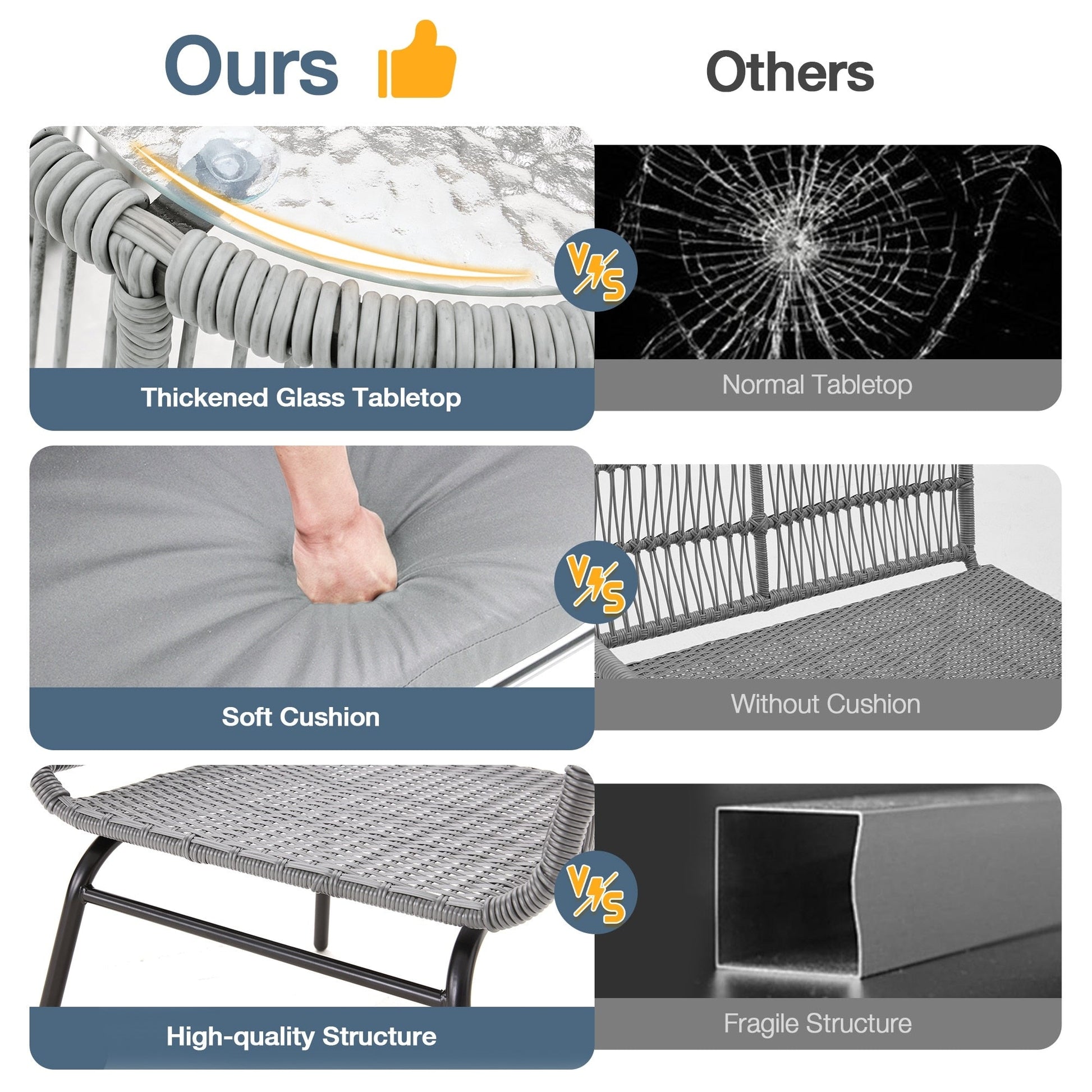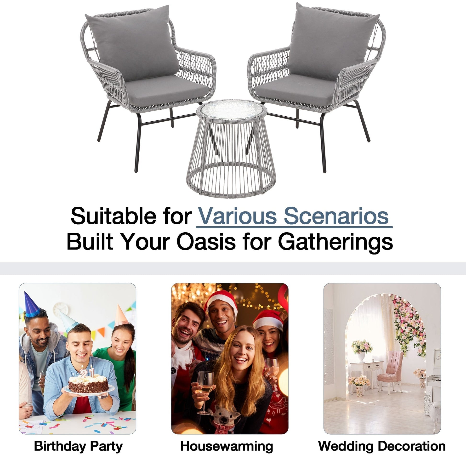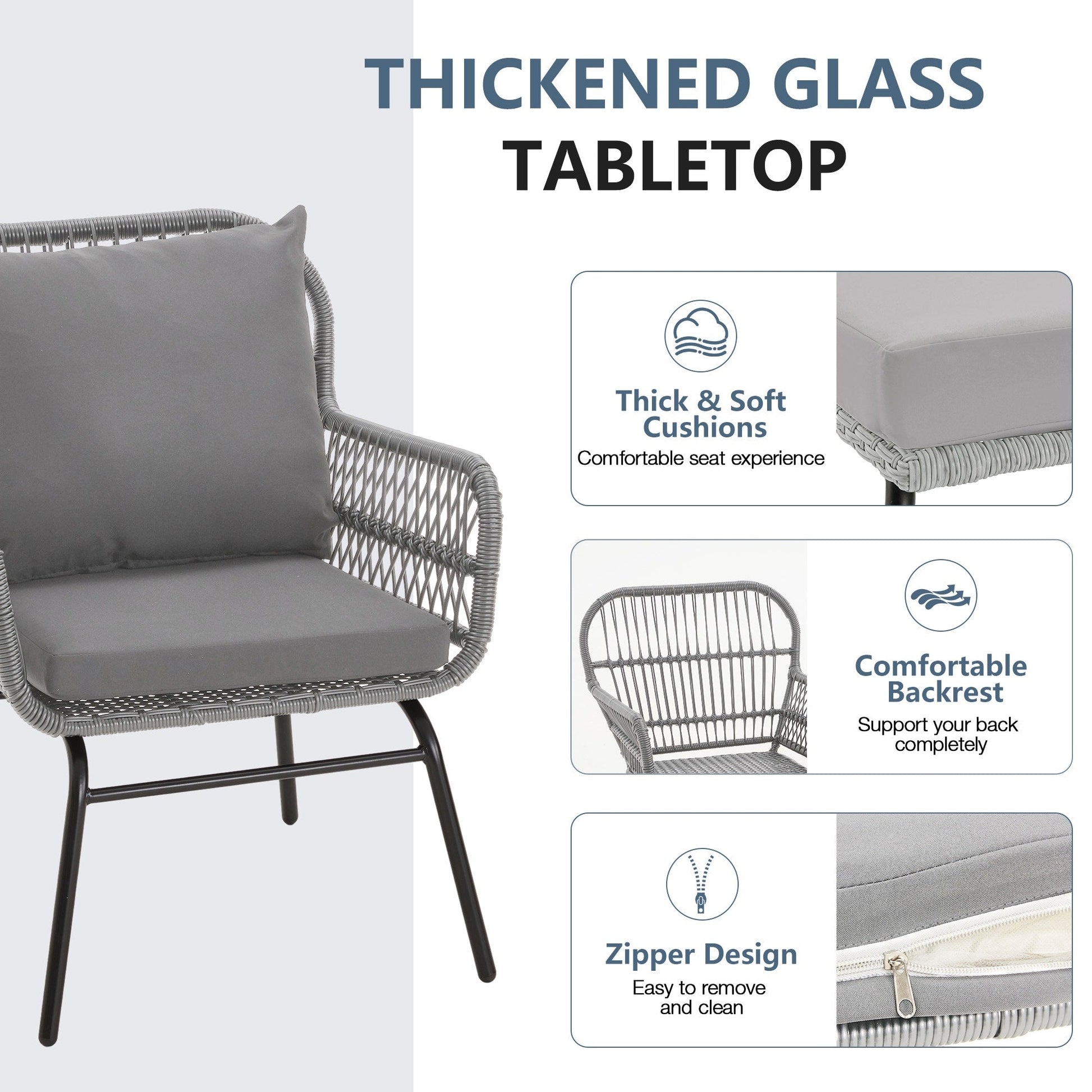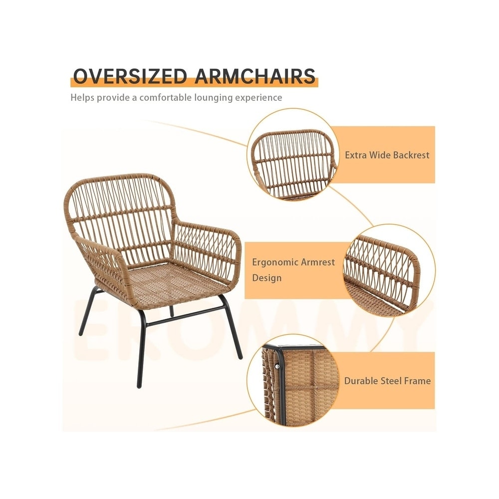 • Queste graziose sedie e il tavolo da esterno sono realizzati in rattan PE di alta qualità, resistente alle intemperie, e telai in acciaio resistenti che resistono facilmente agli agenti atmosferici.
