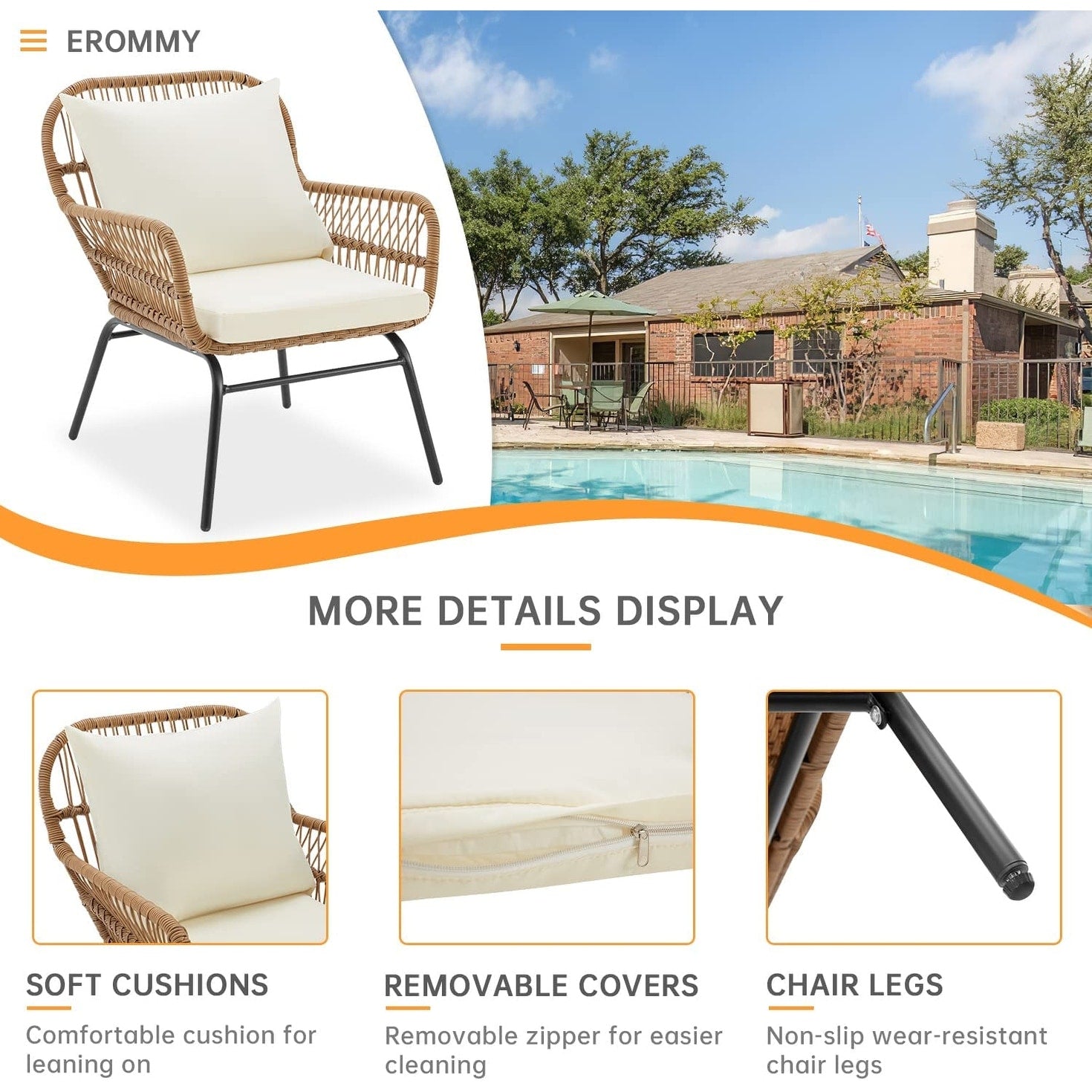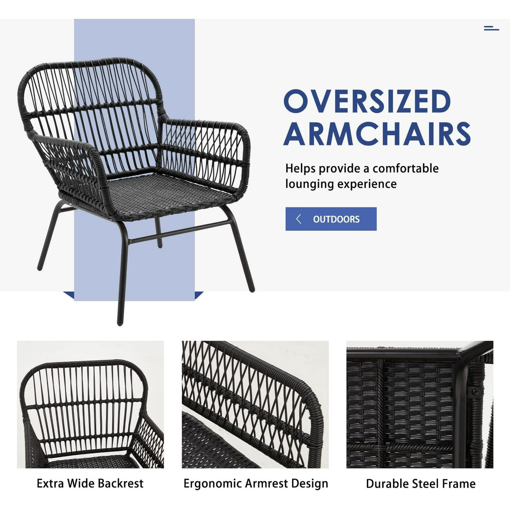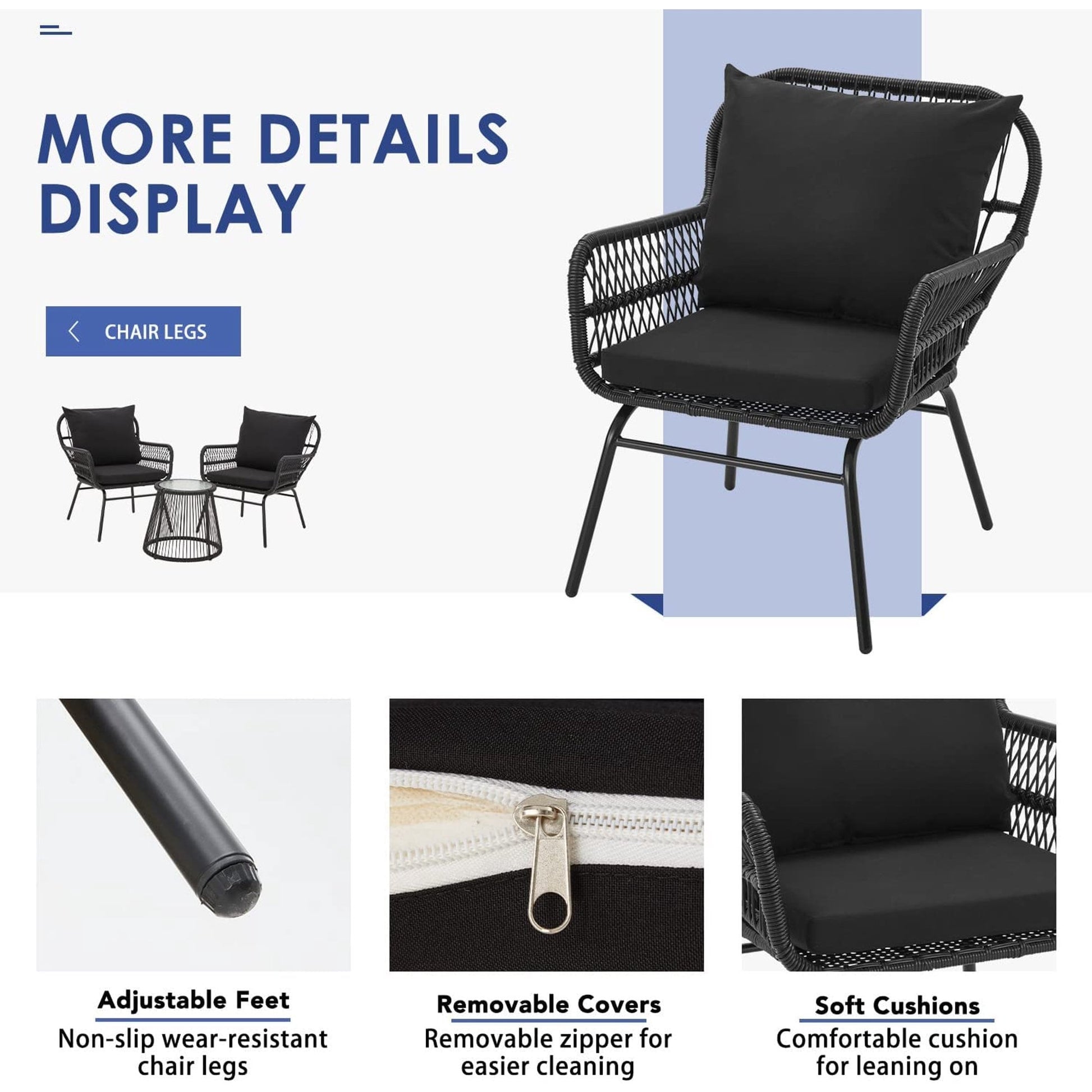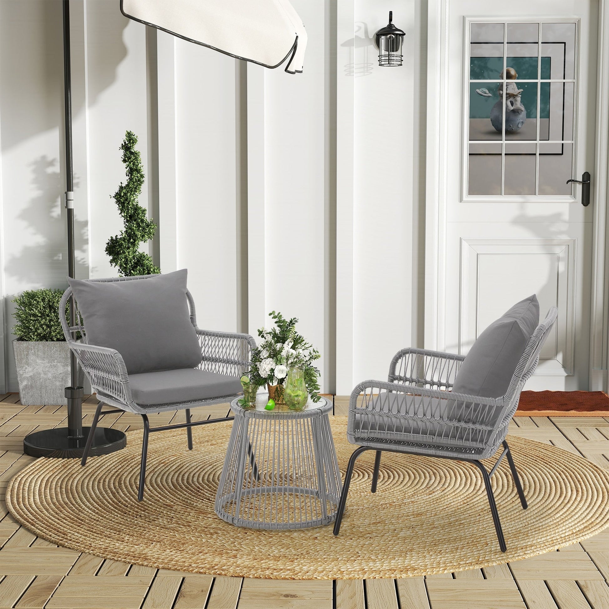 • Queste graziose sedie e il tavolo da esterno sono realizzati in rattan PE di alta qualità, resistente alle intemperie, e telai in acciaio resistenti che resistono facilmente agli agenti atmosferici.