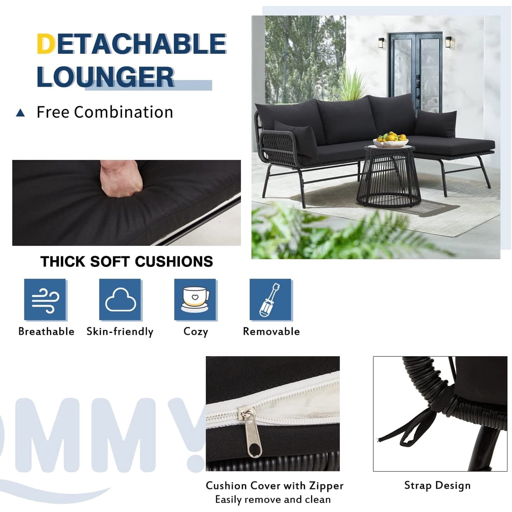 • Dotato di cuscini in spugna altamente elastici. Le ampie sedute e il design dei braccioli vi garantiranno un maggiore relax. Inoltre, la fodera del cuscino sfoderabile con cerniera scorrevole è facile da sostituire e pulire.