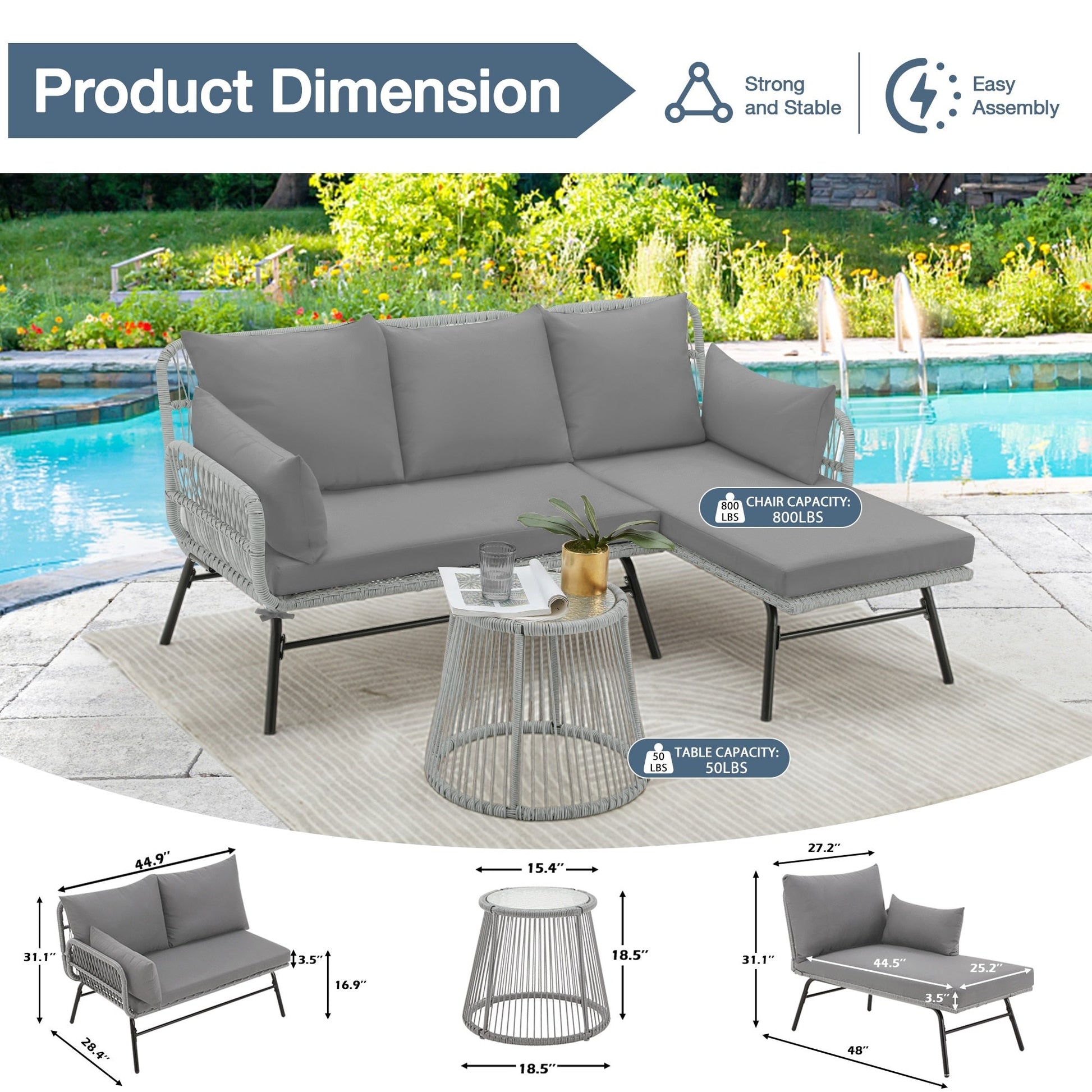 • Fornito con istruzioni chiare e con l'attrezzatura necessaria, questo mobile da esterno è facile da montare.