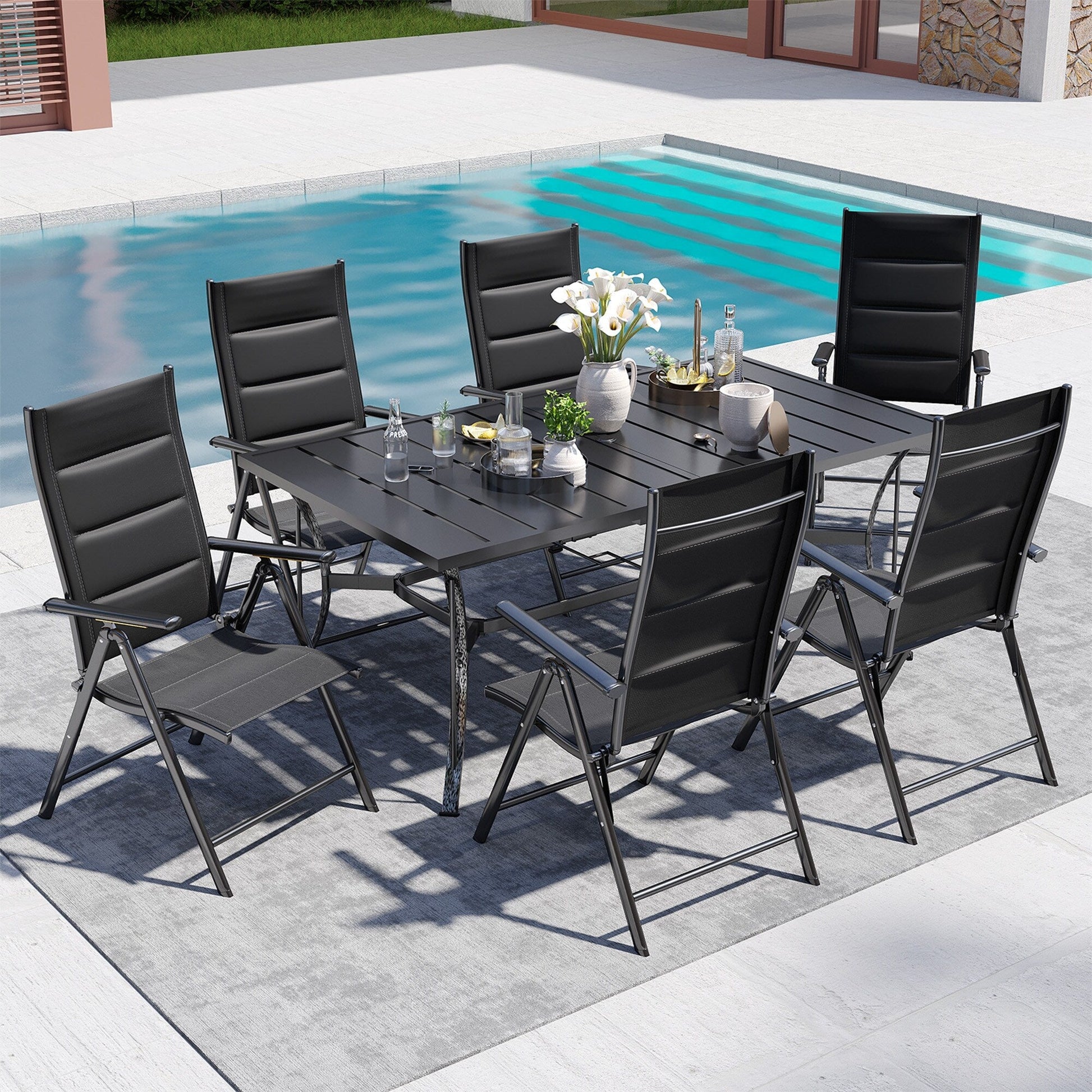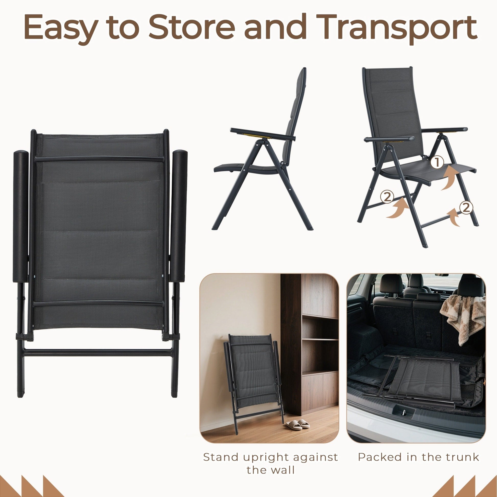 Le sedie da esterno incluse sono dotate di schienali regolabili in altezza per alleviare la pressione e migliorare la postura durante le lunghe sedute. Ogni sedia pieghevole è dotata di morbida imbottitura in cotone per un maggiore comfort, trasformando i mobili da giardino in uno spazio rilassante ed ergonomico per il relax.