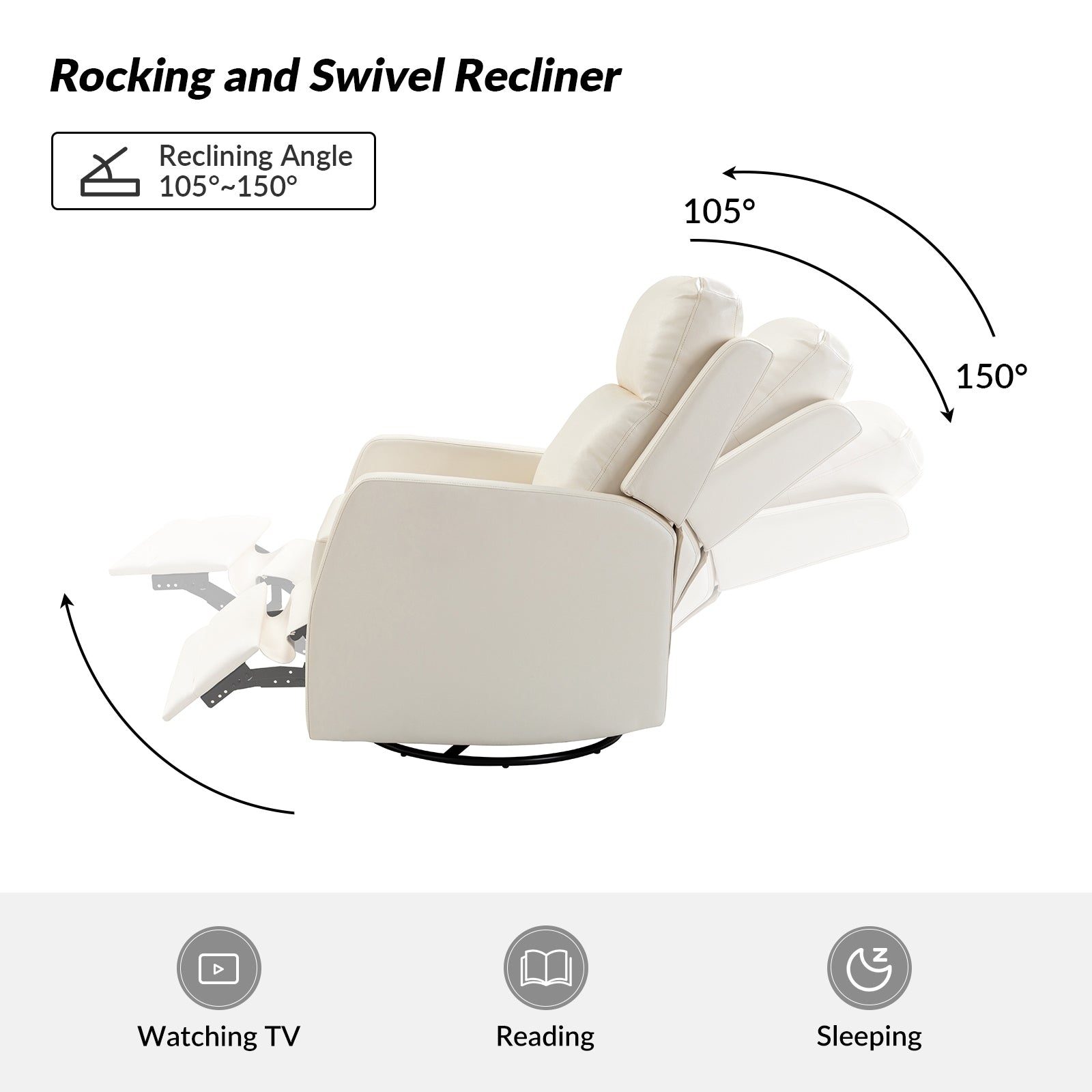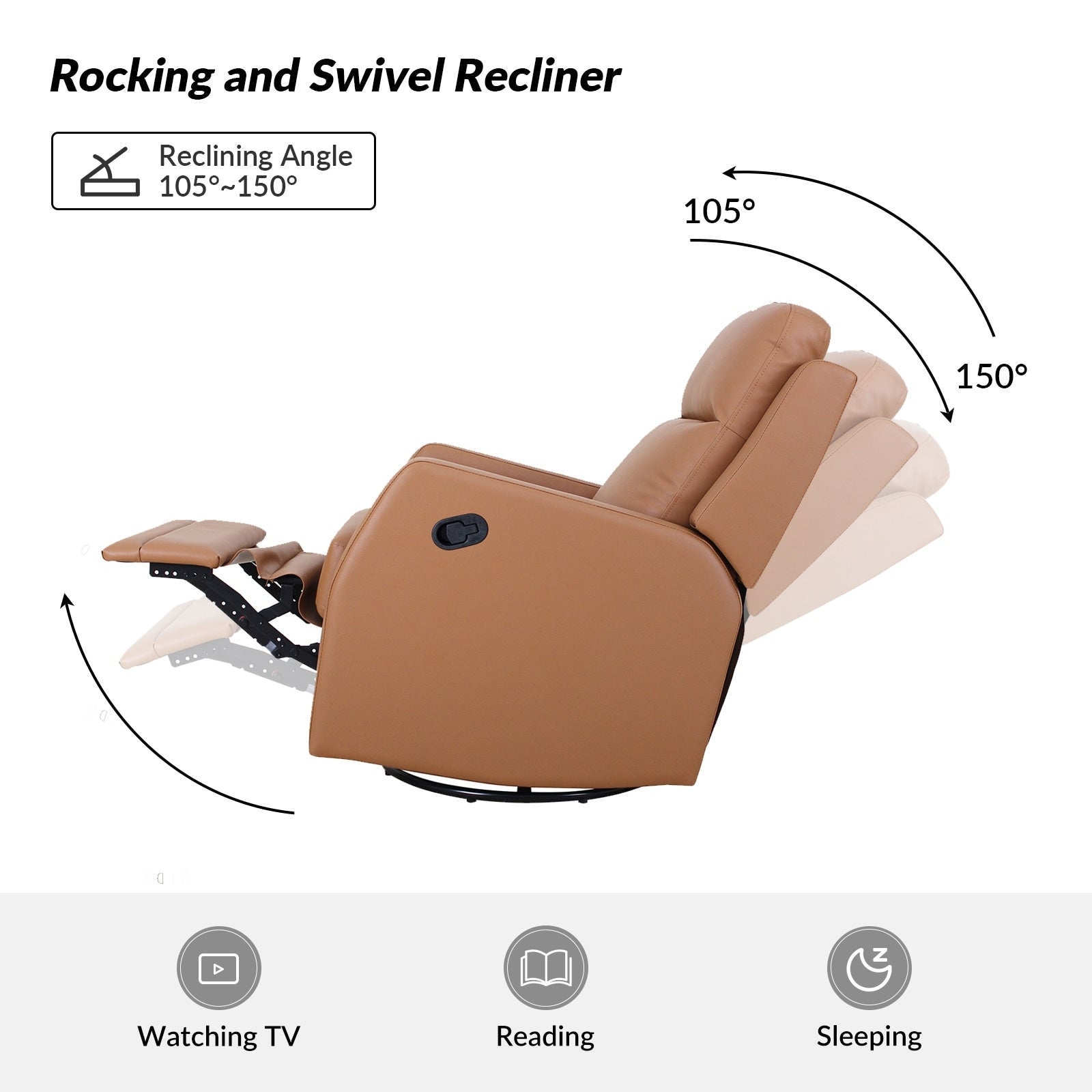 Poltrona reclinabile girevole a dondolo manuale in similpelle...