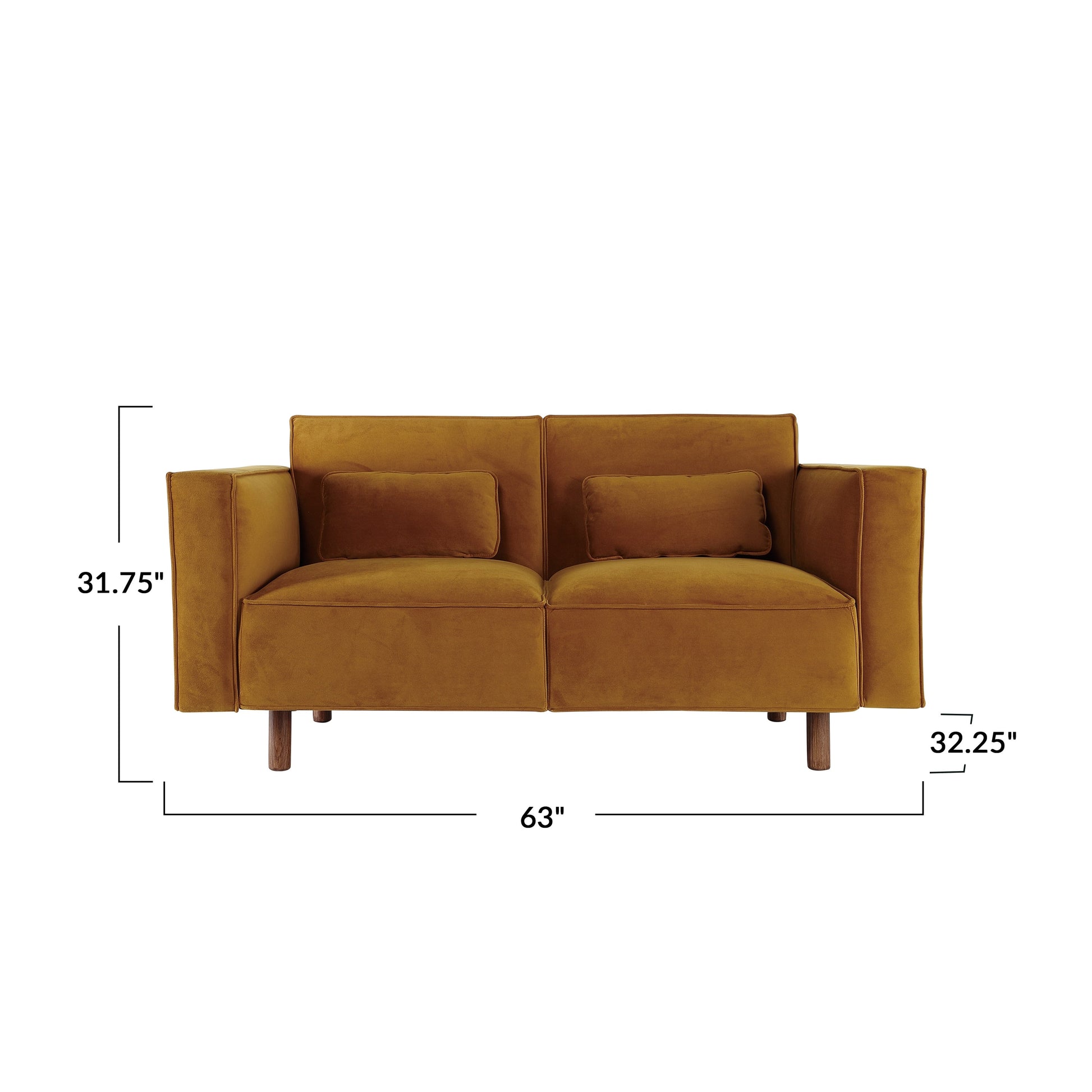 Divano rivestito in tessuto con gambe in legno, Chartreuse - 63,0 L x 32,3 W x 31,9 H