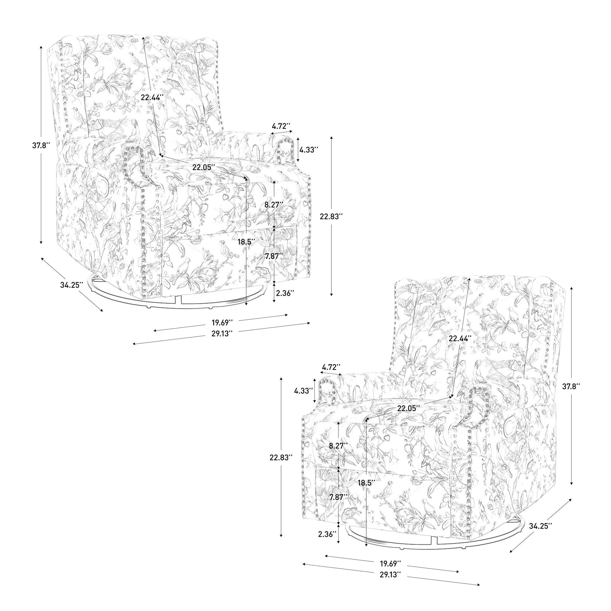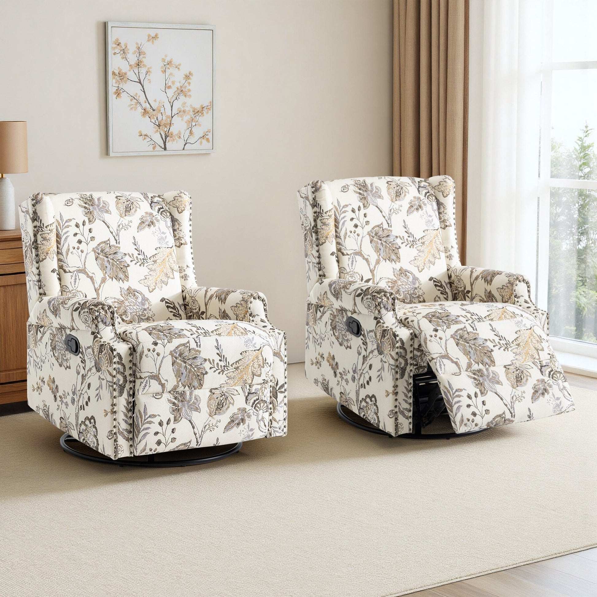 Trasforma il tuo spazio abitativo con questa poltrona reclinabile floreale splendidamente realizzata, disponibile in due versatili modelli: uno con base girevole a 360° per una rotazione fluida e una mobilità ottimale, e l'altro con gambe in legno massello per un look più tradizionale e sobrio. Che tu preferisca la flessibilità moderna o l'eleganza senza tempo, entrambe le versioni offrono comfort duraturo e fascino visivo. Rivestita in pregiato tessuto di cotone e lino, questa poltrona è morbida, traspirante e ideale per rilassarsi a lungo. Il motivo floreale e botanico aggiunge un tocco vivace e ispirato alla natura al tuo spazio, perfetto per illuminare un soggiorno, un angolo lettura o un angolo della camera da letto. Reclinati facilmente con una comoda leva laterale per trovare la posizione di relax ideale. Il poggiapiedi integrato si estende automaticamente quando ti abbassi, offrendo un supporto completo per le gambe durante i pisolini, la lettura o la TV.