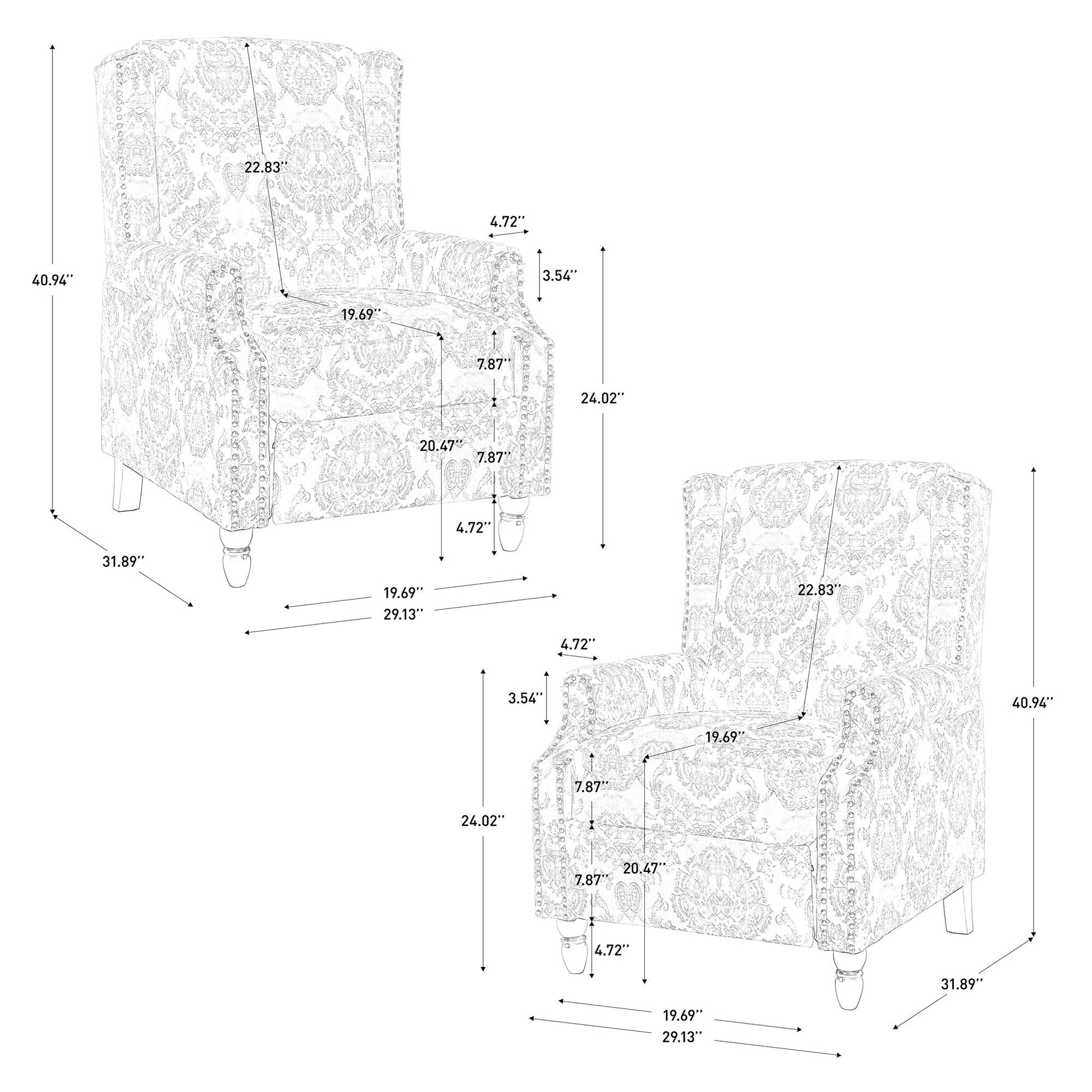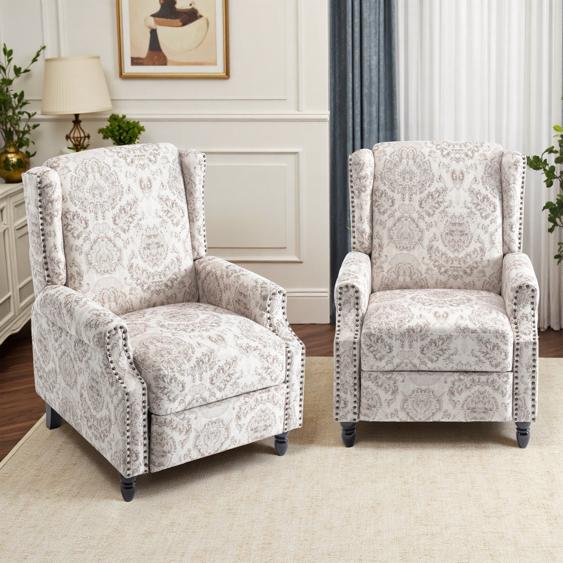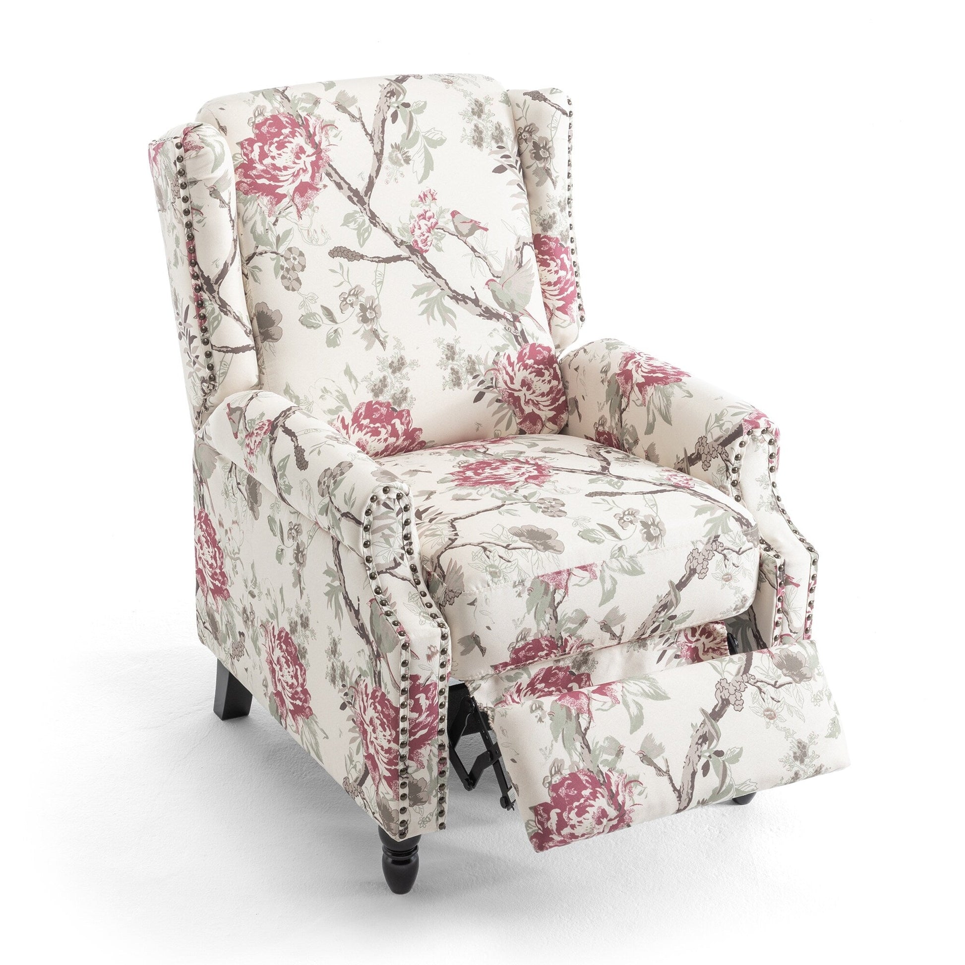 Poltrona reclinabile manuale in lino floreale con poggiapiedi, set da 2