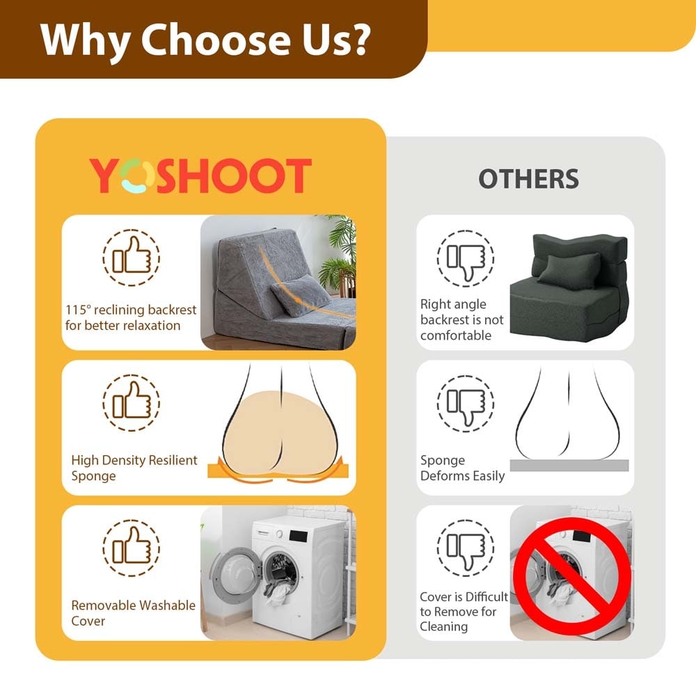 • Design ergonomico : questo divano è dotato di uno schienale ergonomico a 115° e di cuscini rimovibili per il relax di tutto il corpo, rendendolo perfetto per rilassarsi o per stare seduti a lungo.