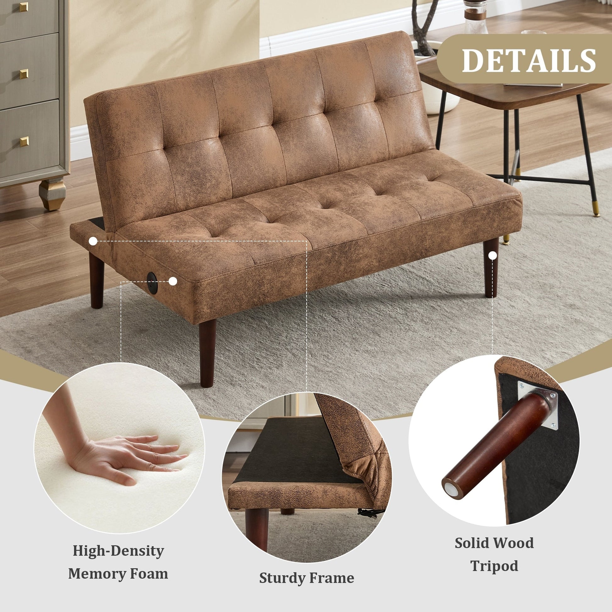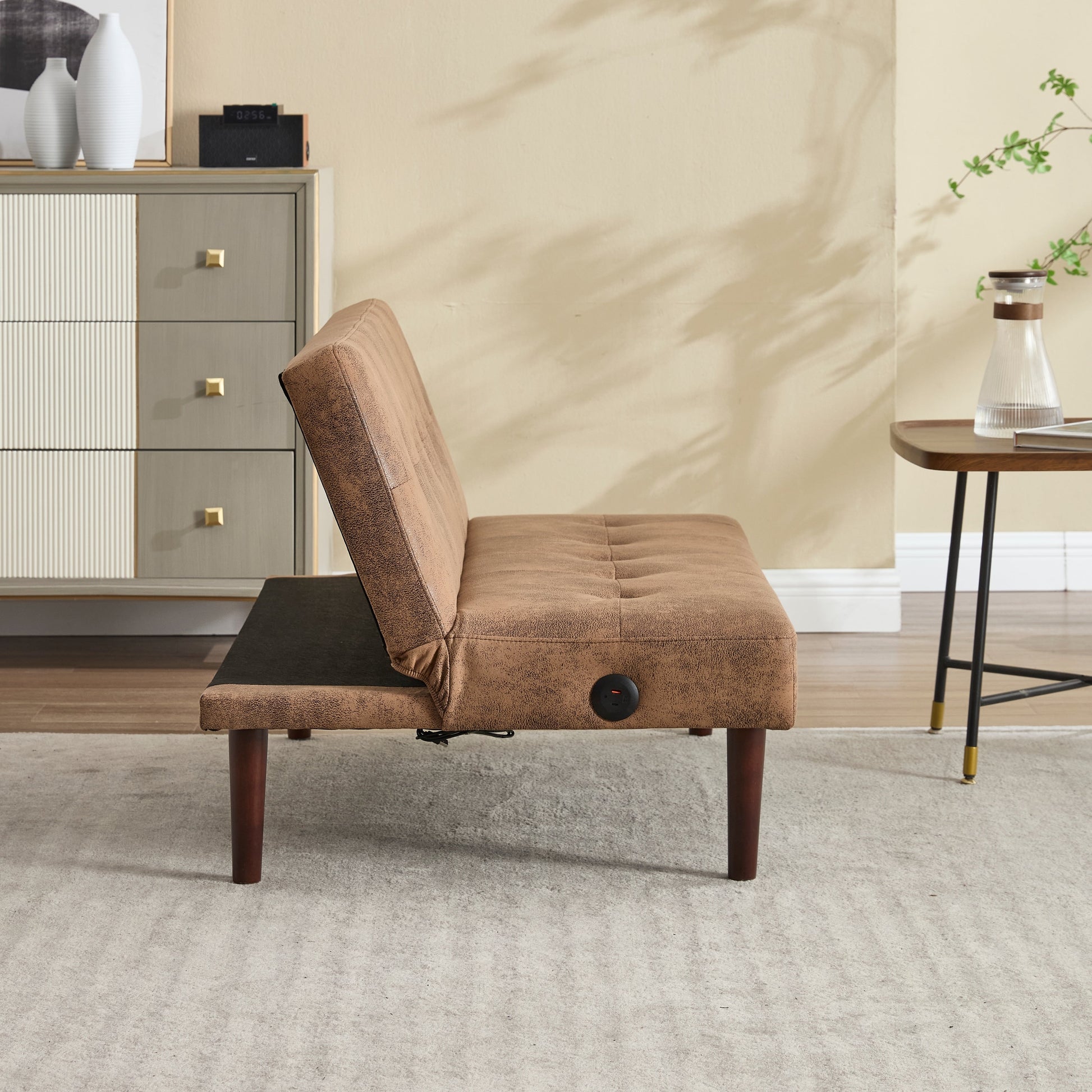 Divano letto pieghevole alla moda, schienale in tessuto di flanella di alta qualità, divano reclinabile futon regolabile, divano moderno alla moda con porta di ricarica