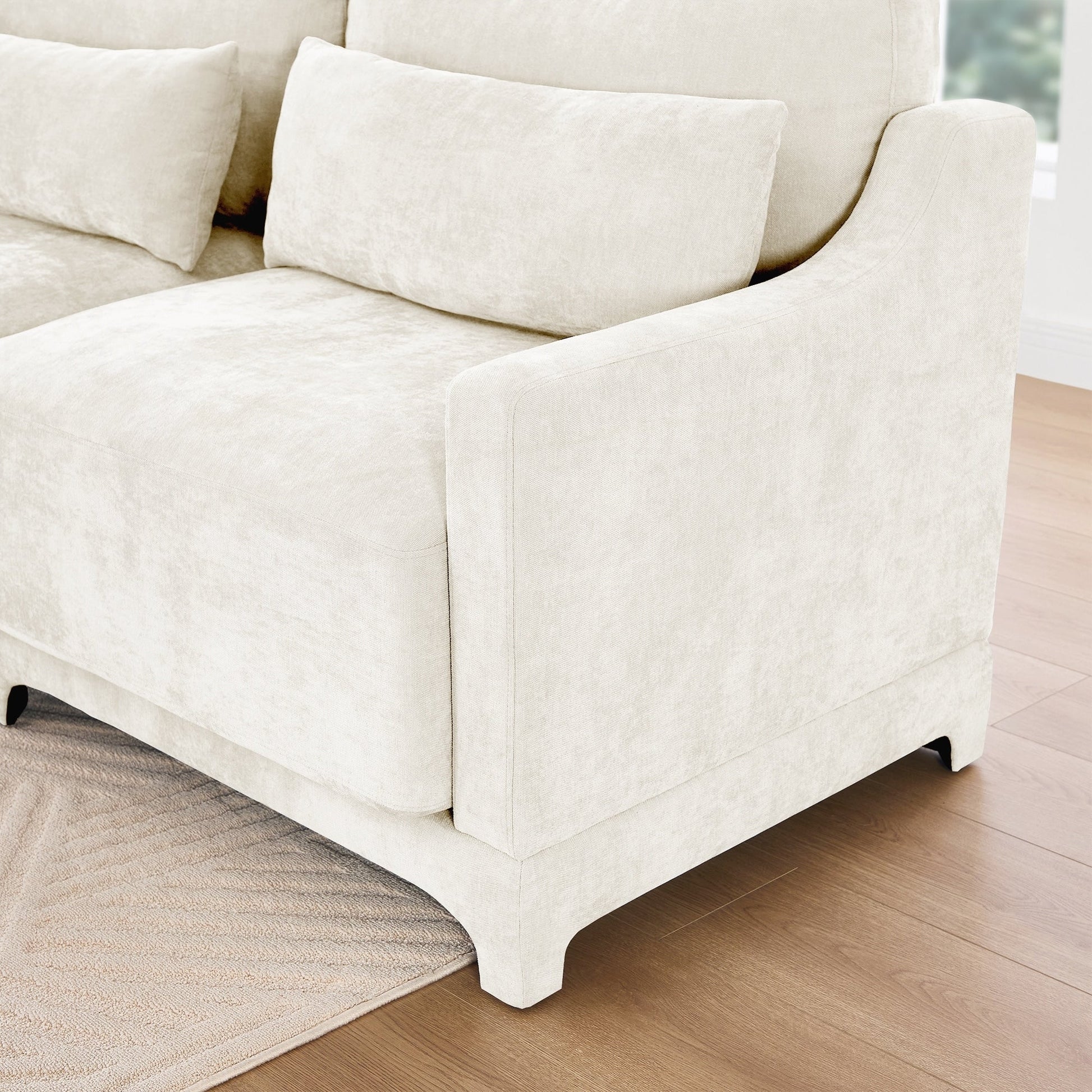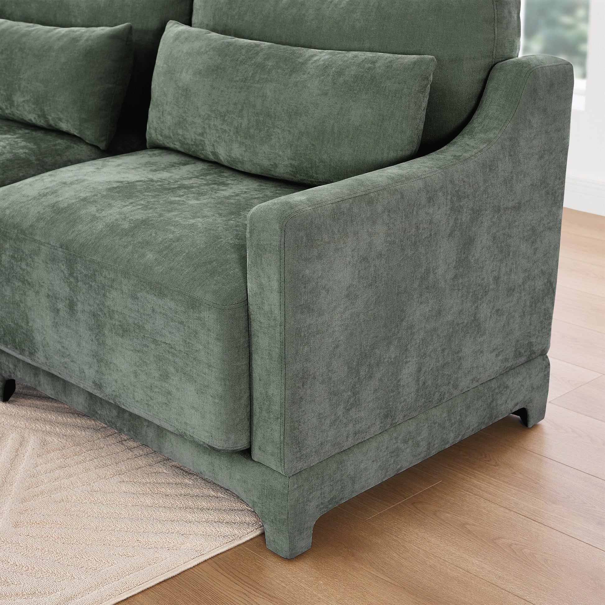 Materiali di alta qualità: rivestito in ciniglia di alta qualità, il divano offre un tocco morbido ed elegante con una texture unica, per una seduta di lusso adatta a tutto l'anno. Il tessuto resistente e antiusura si abbina a cuscini in spugna completamente compressi e a una robusta struttura in legno, garantendo comfort e affidabilità duraturi.
