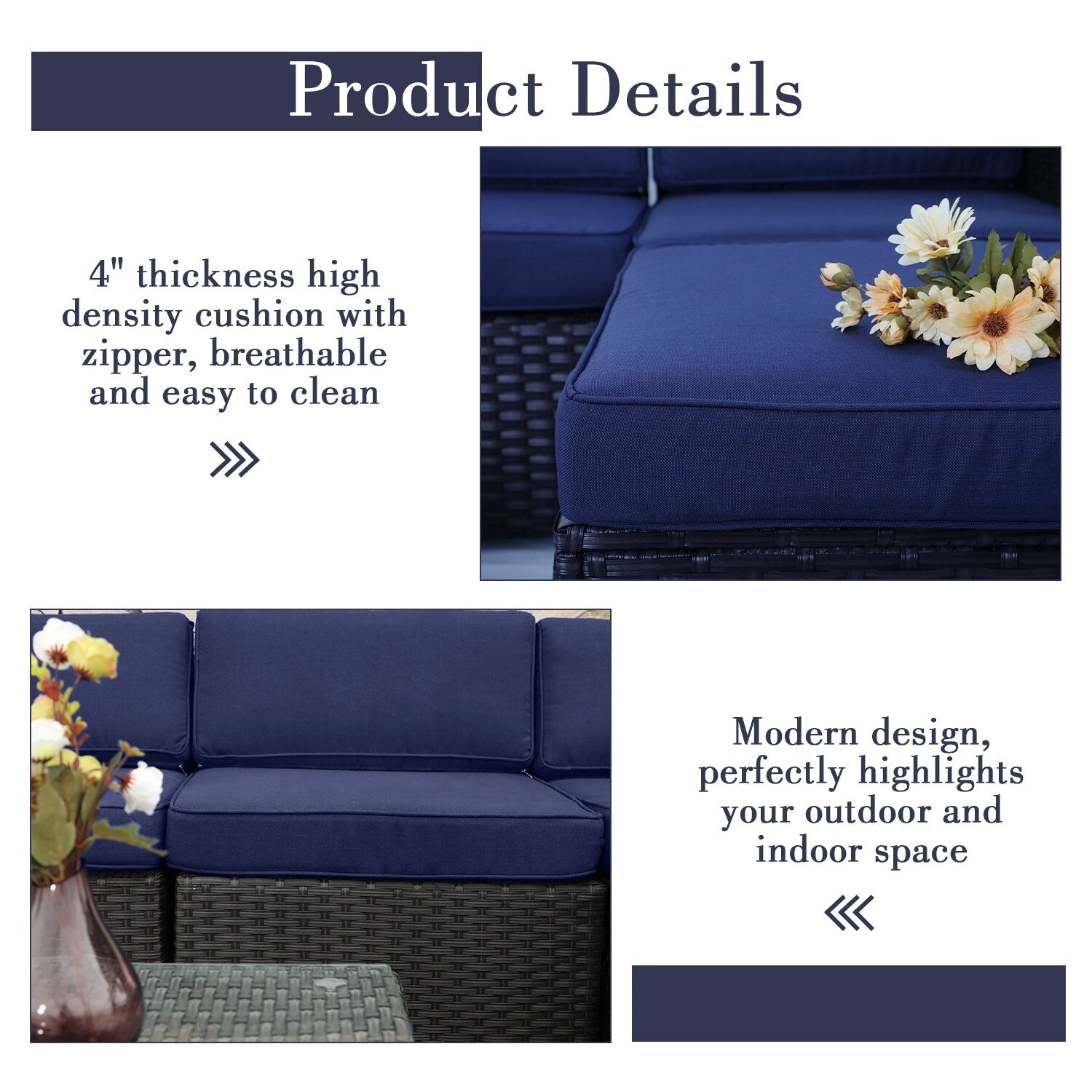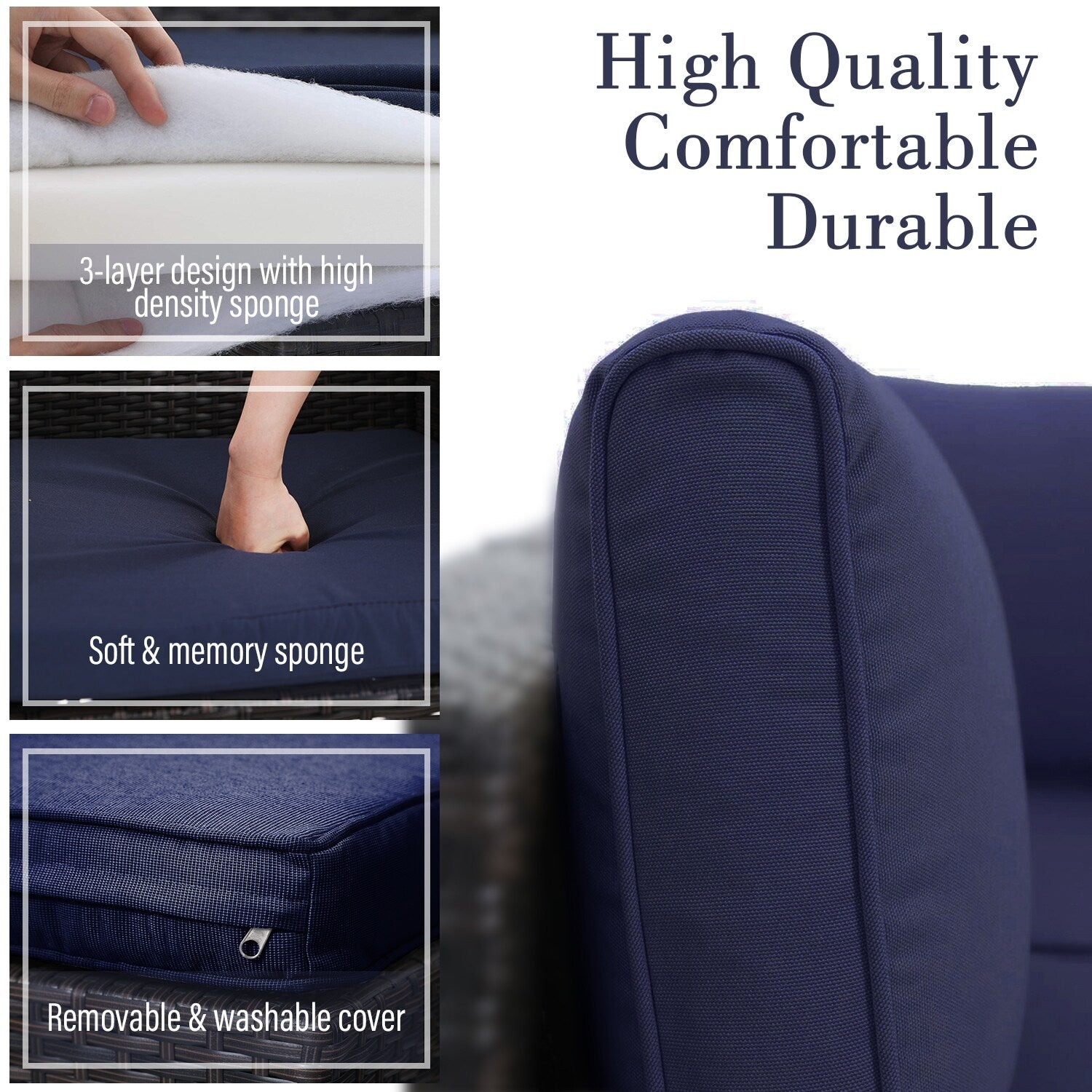 • Cuscini in schiuma ad alta densità con fodere lavabili con cerniera per una facile pulizia