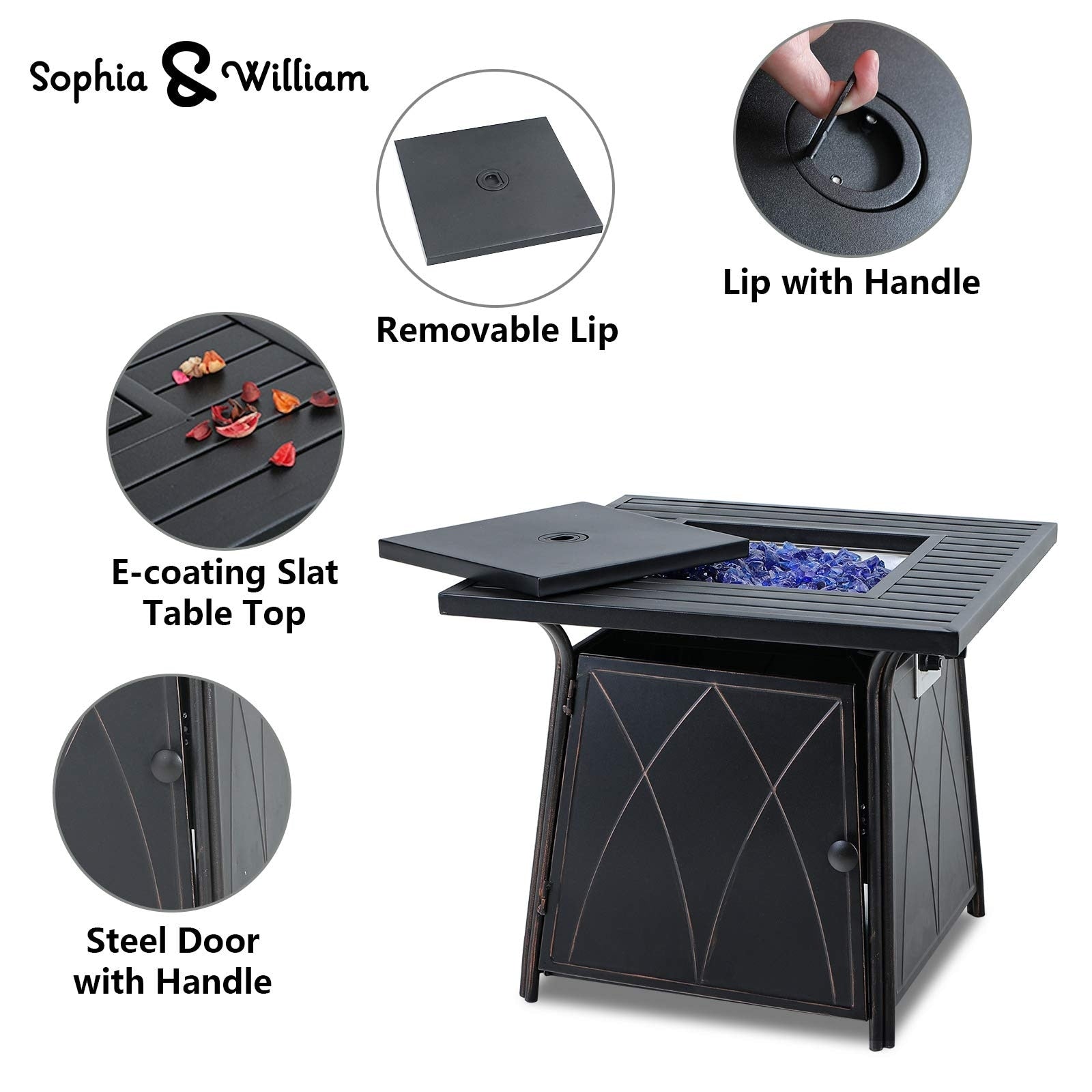 • Il tavolo da fuoco include una copertura protettiva per mantenerlo pulito quando non viene utilizzato