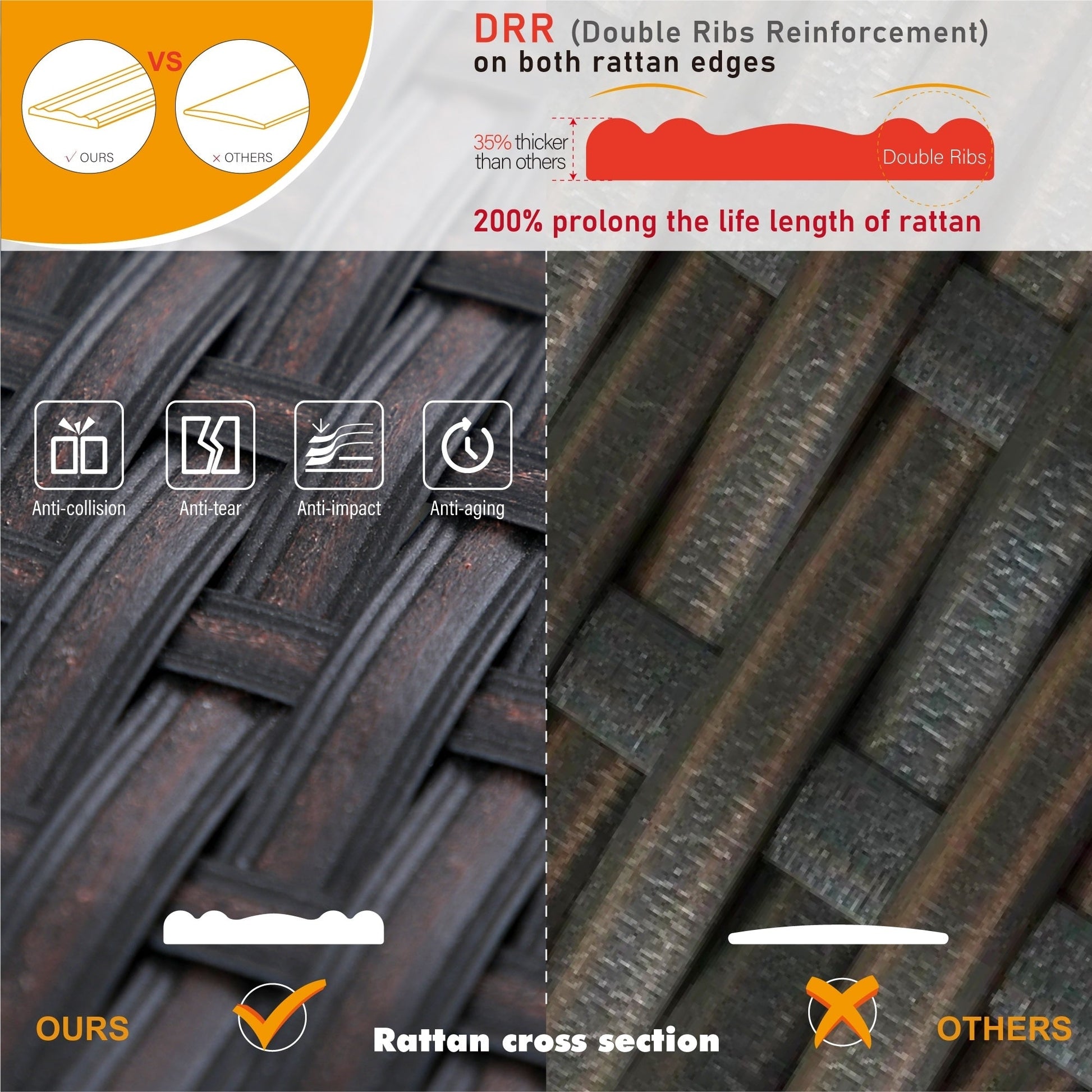 • Il metodo di tessitura del rattan è stato migliorato per una maggiore durata e resistenza agli agenti atmosferici