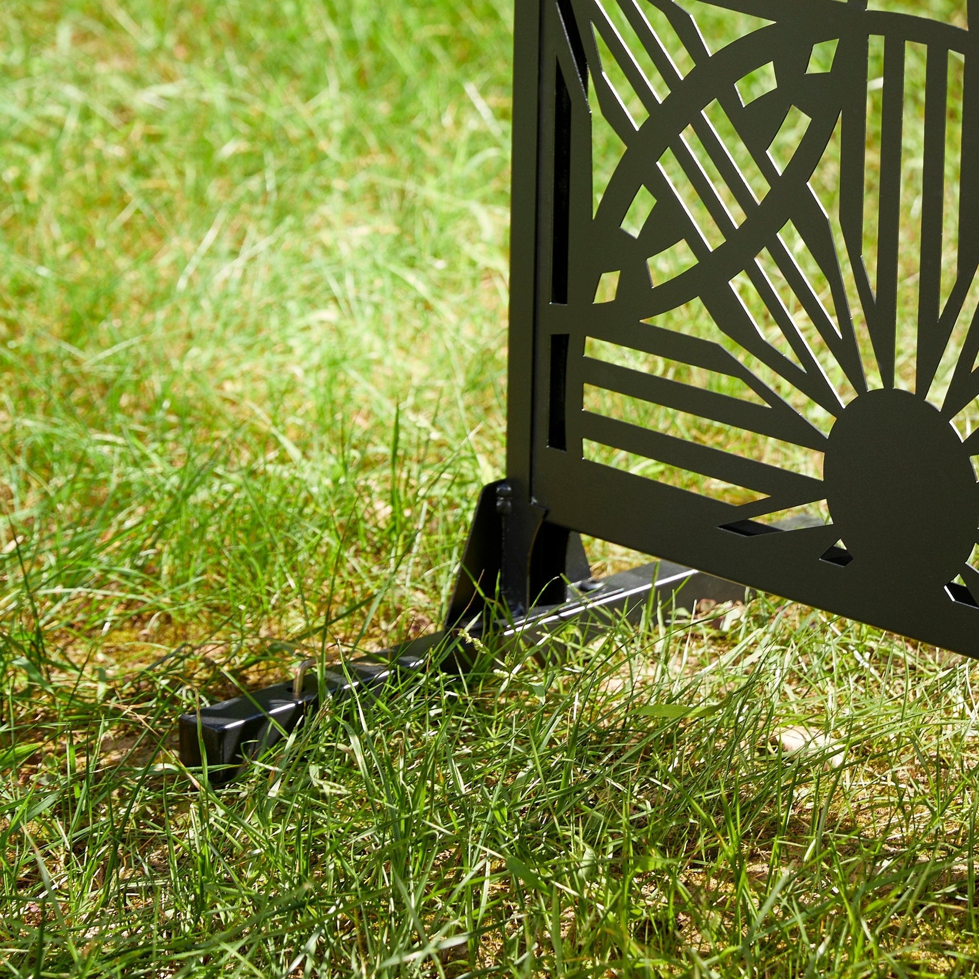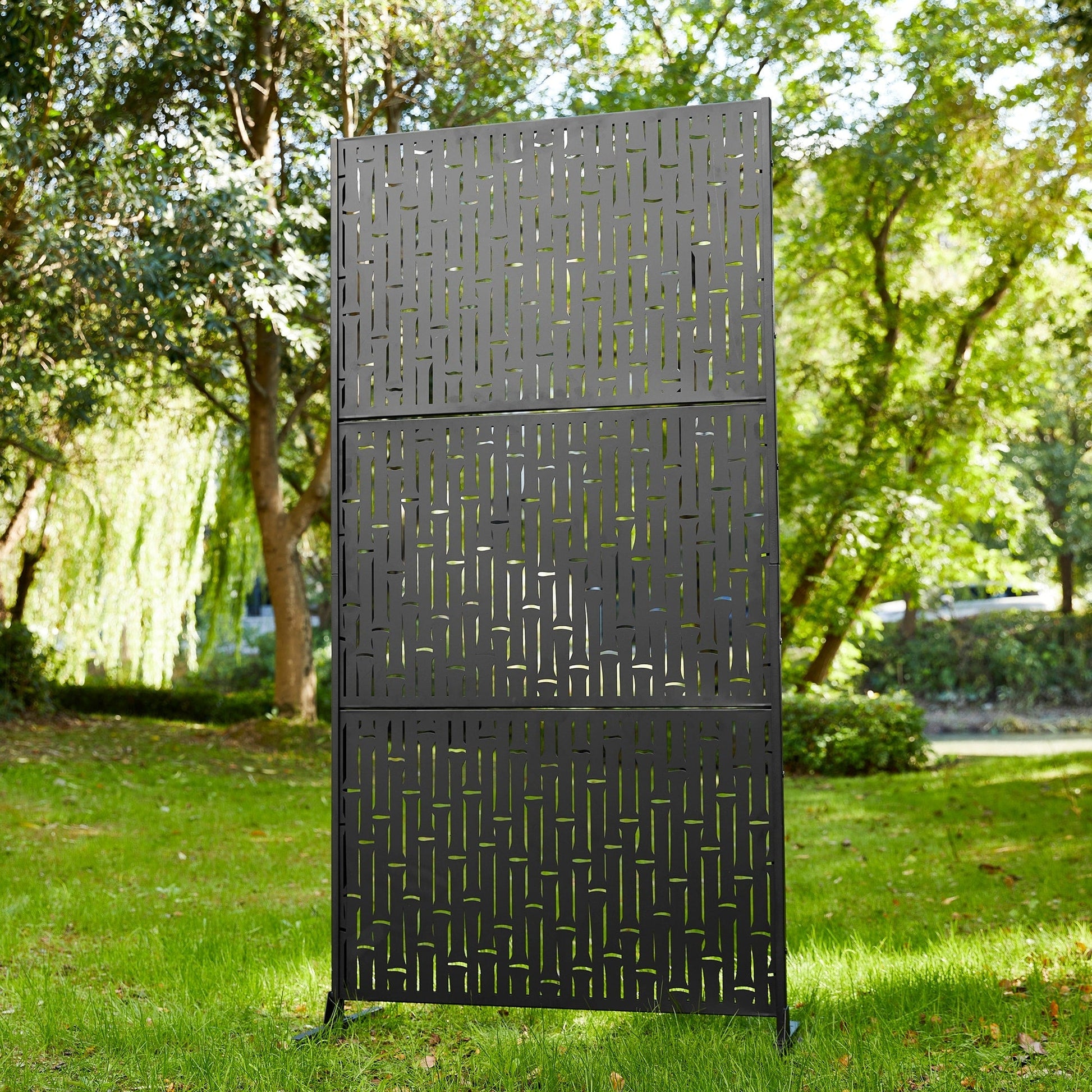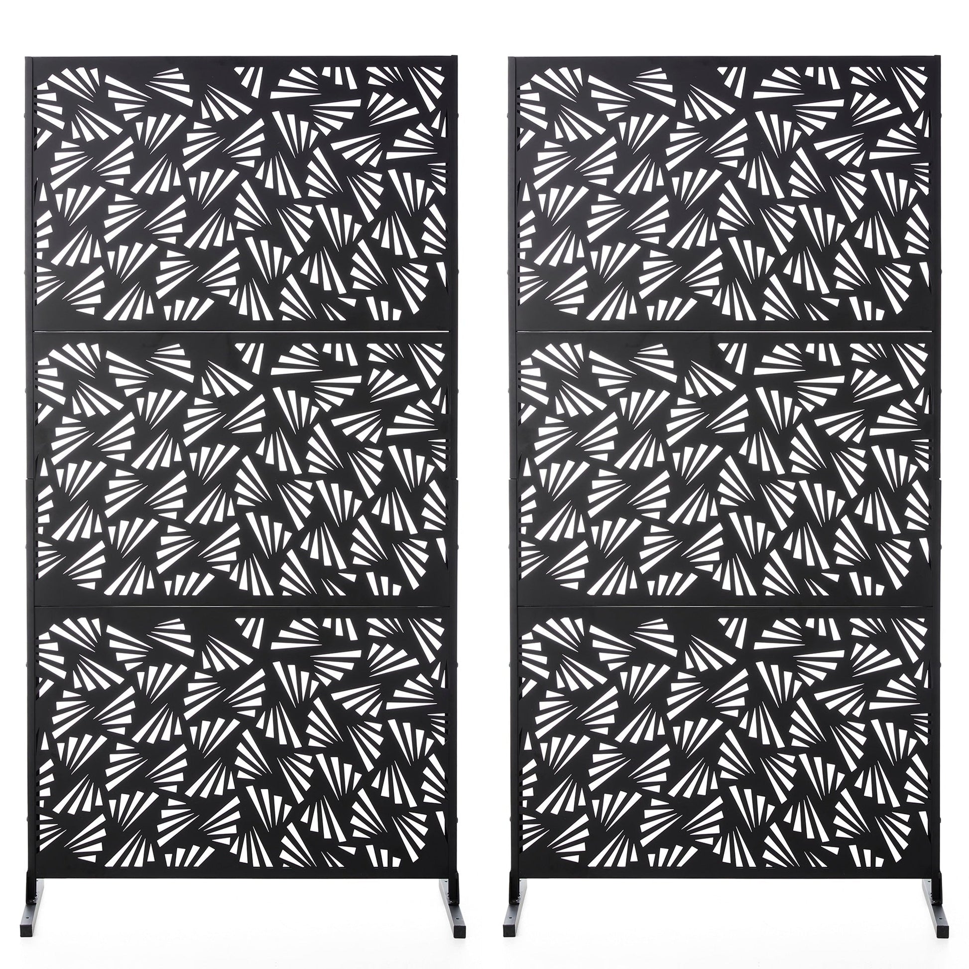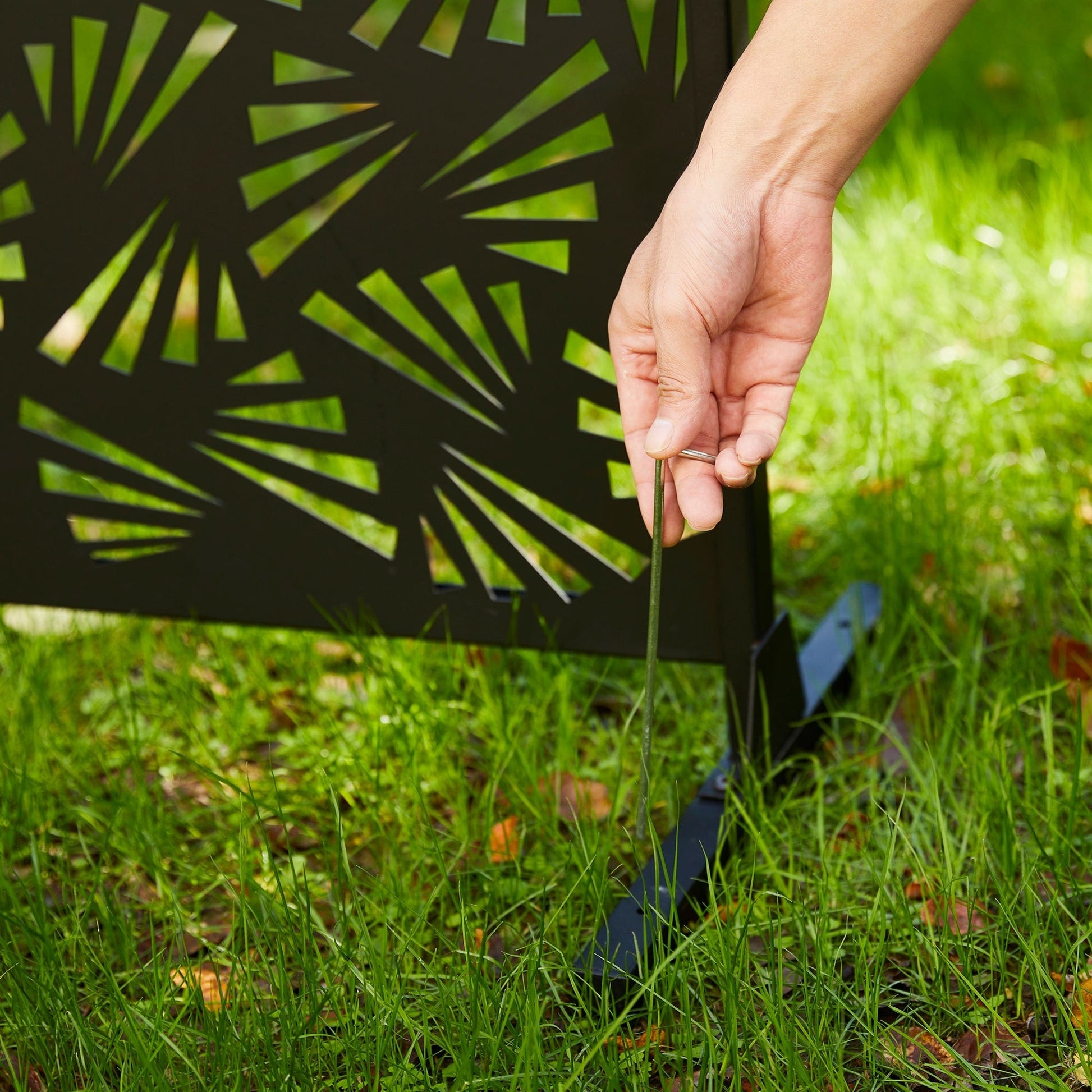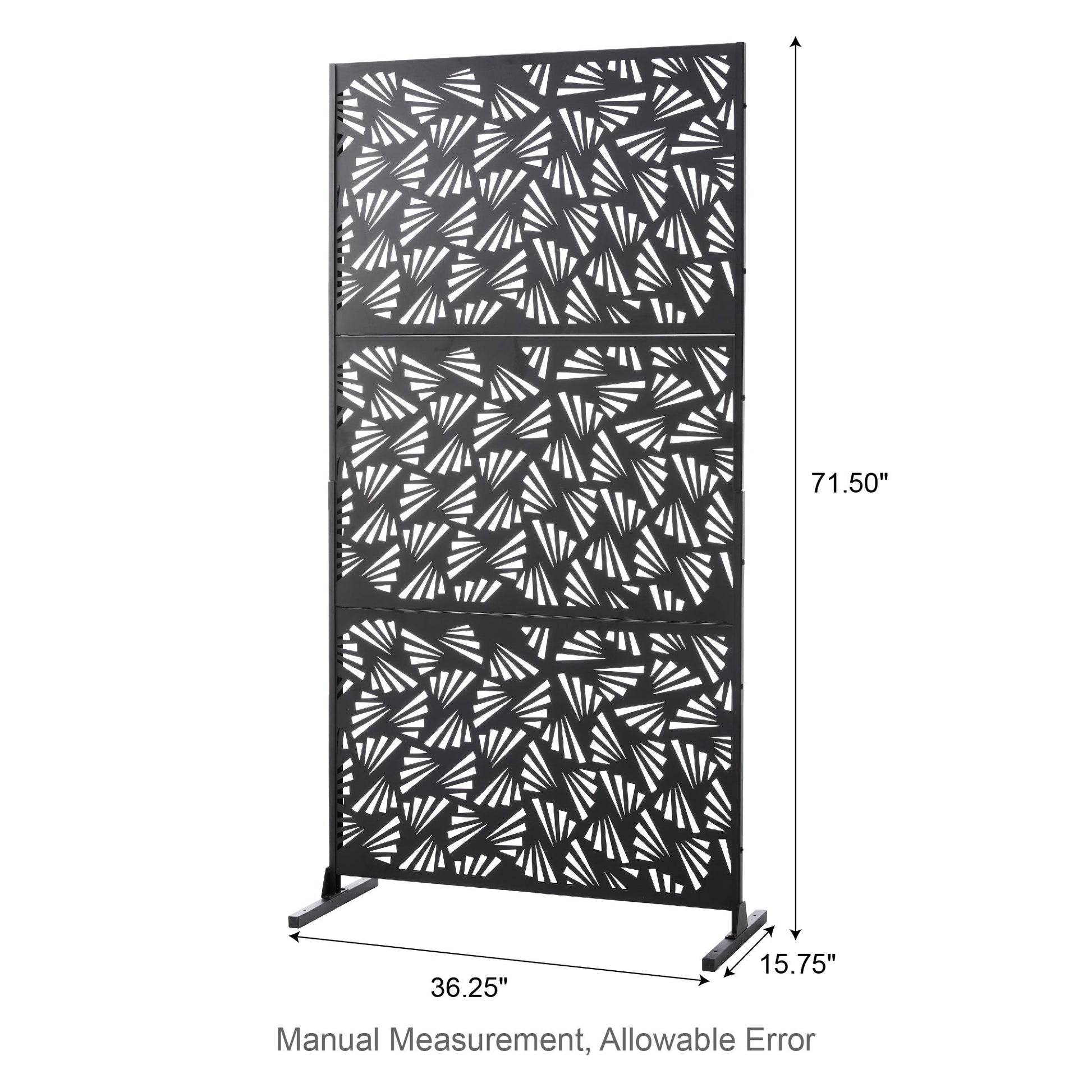 Glitzhome, recinzione divisoria per la privacy a 3 pannelli con motivo floreale zincato da 6 piedi