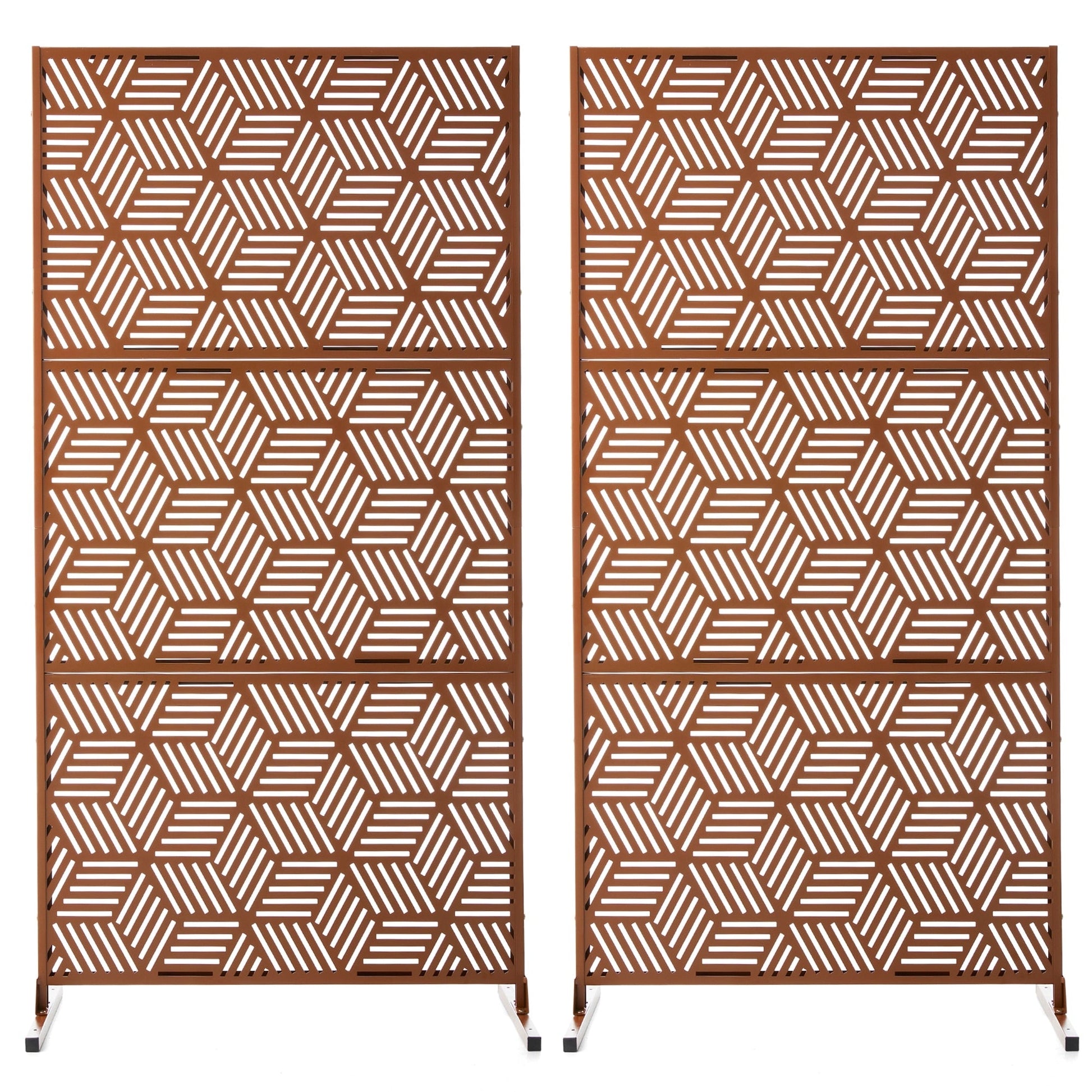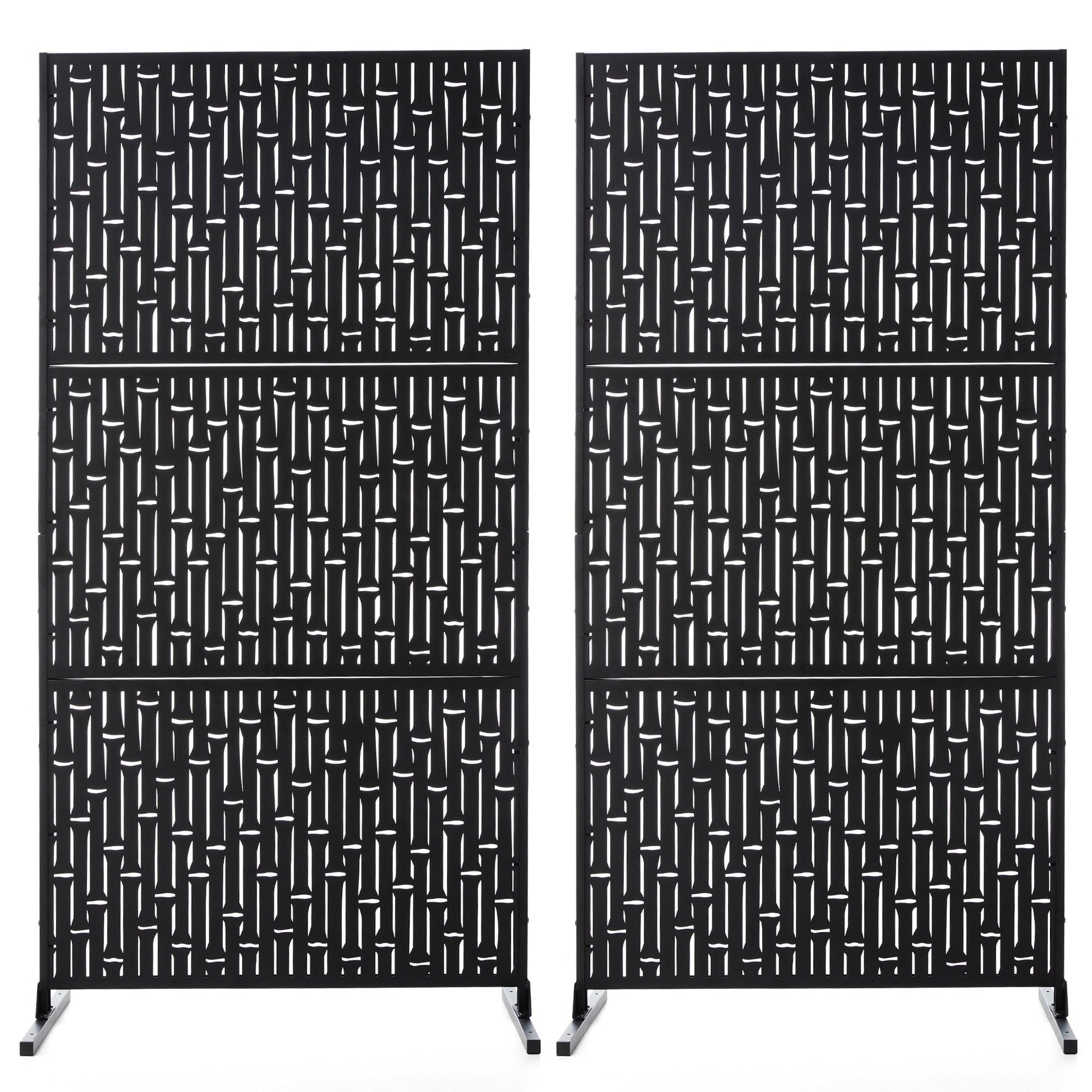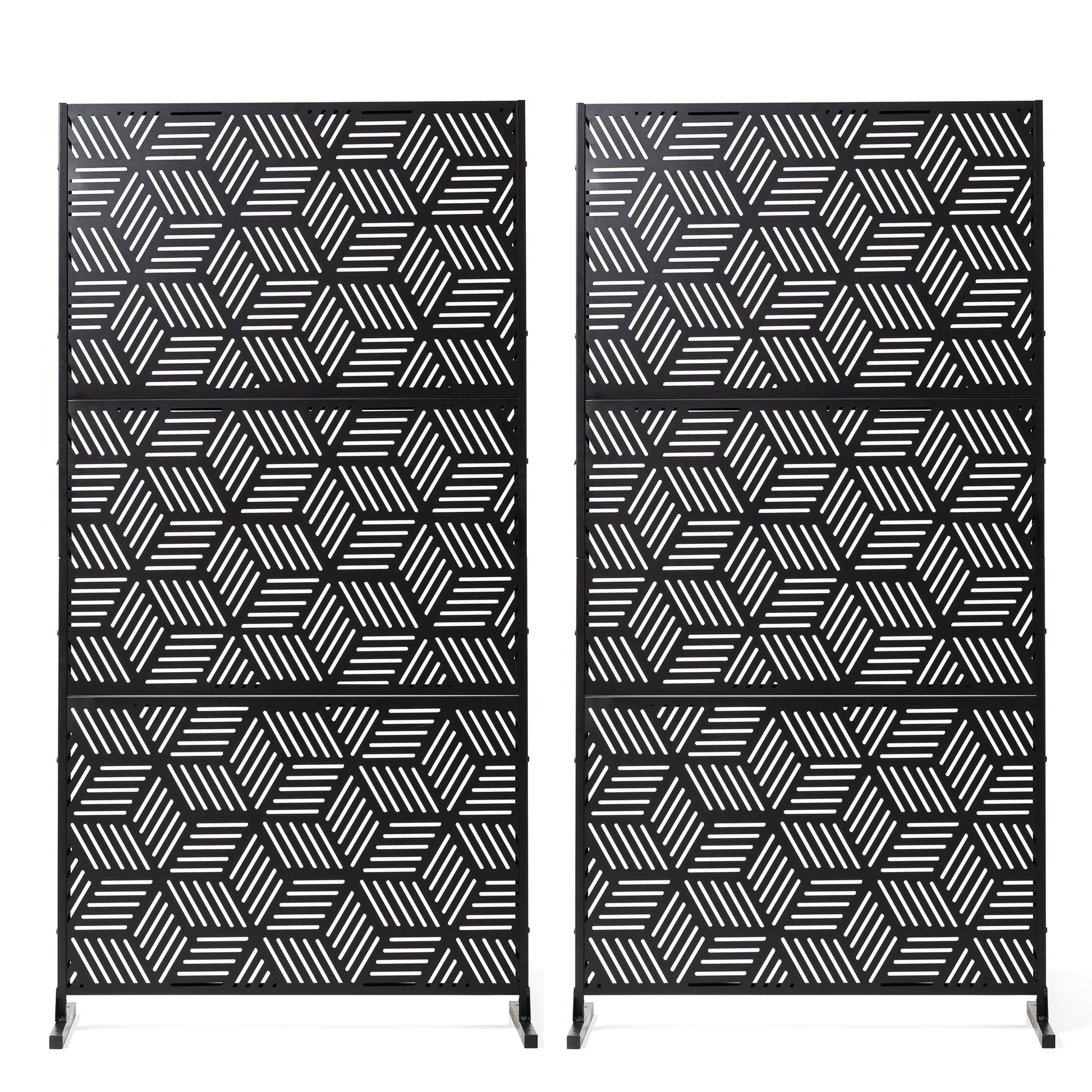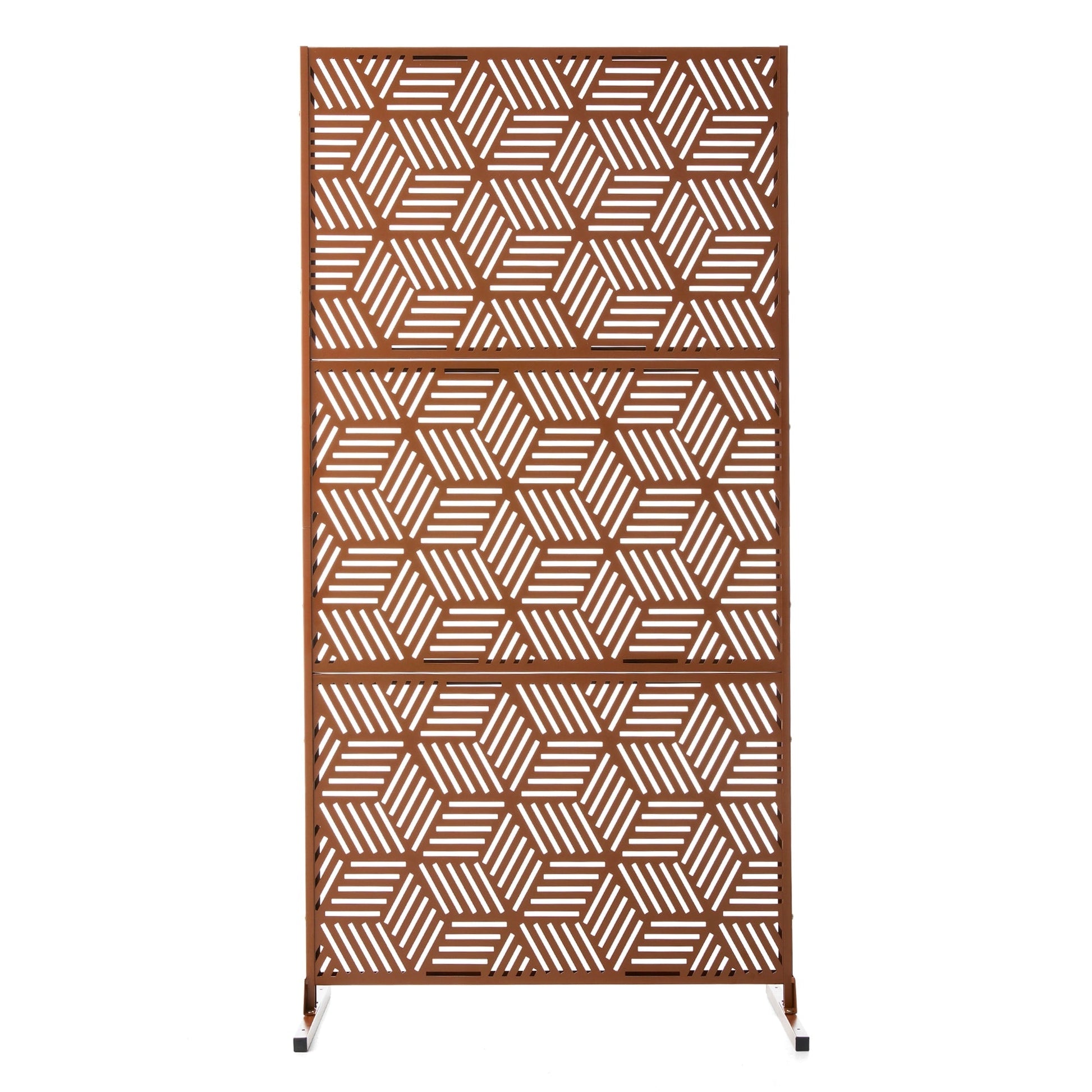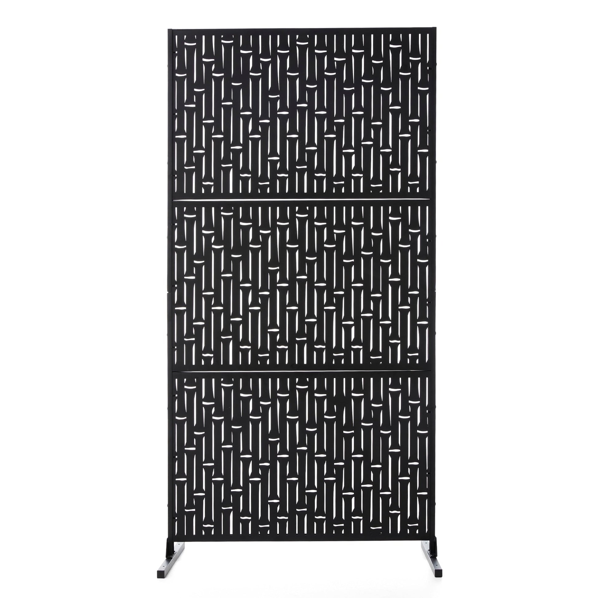 Glitzhome, recinzione divisoria per la privacy a 3 pannelli con motivo floreale zincato da 6 piedi