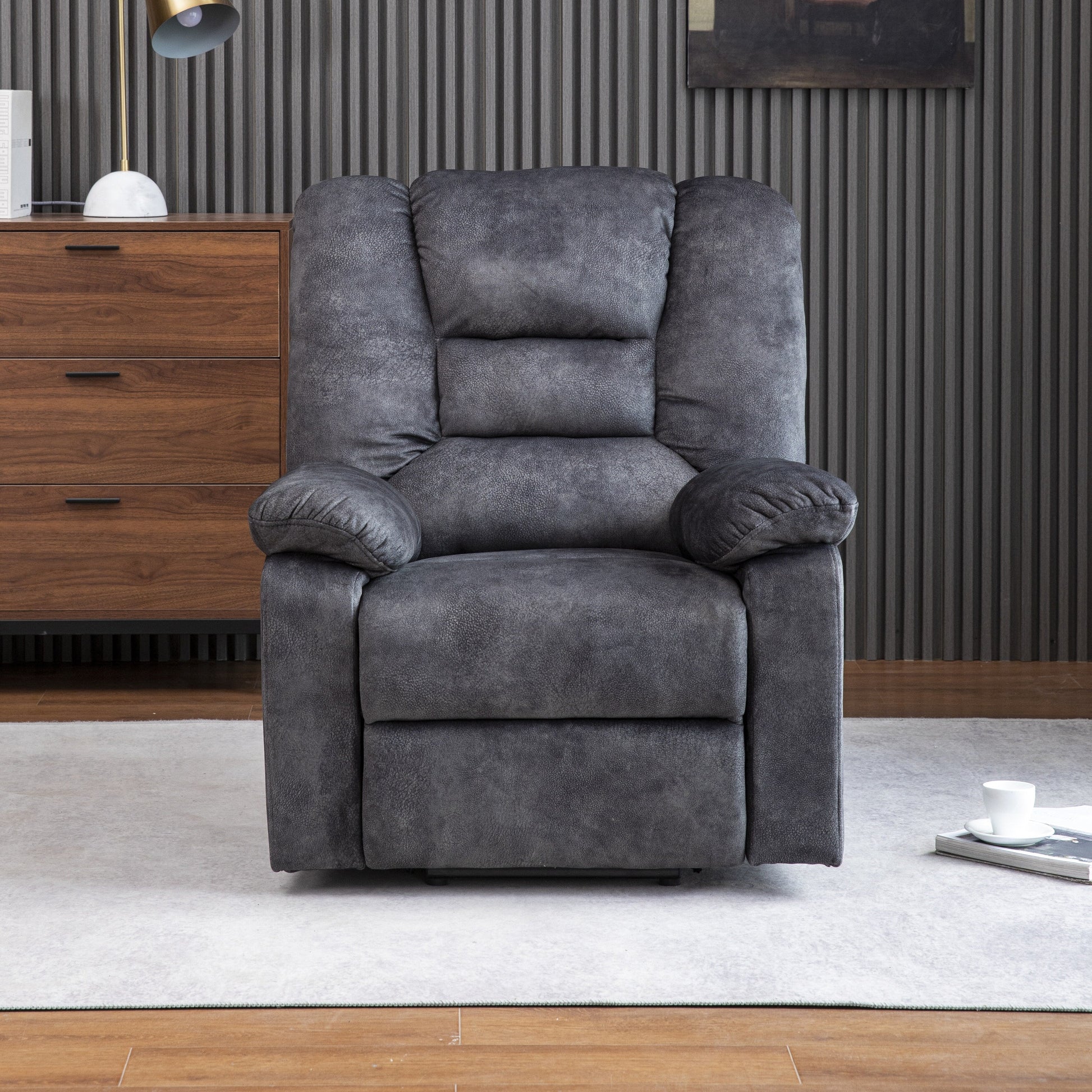 Poltrona reclinabile elettrica imbottita in velluto grigio per...